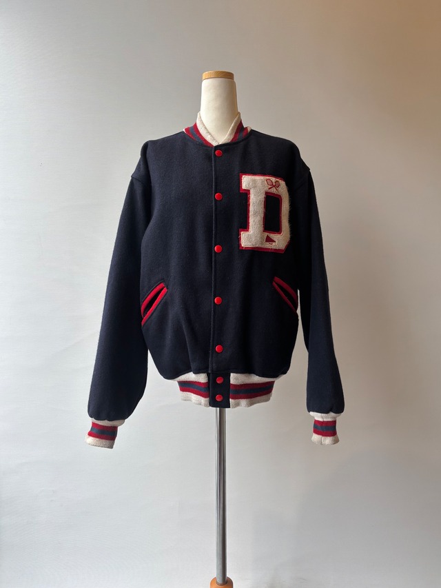 アメリカ製「Felco」社製バーシティジャケット。 ボディはリサイクルウールを使用したしっかりとした生地感で、お色味はネイビーになります。裏地はコットン混素材。 ラインリブとワッペンが映えるクラシックな一着です◎ サイズ:表記なし 素材:recycled wool80%、 reprocessed wool20% 身幅112cm 着丈63cm 肩幅49cm 袖丈61cm *裏地部分一部破損してありませんが、お直し済みです! *また、ヴィンテージの為、素材特有の使用感、細かい汚れや傷等ある場合がございますのでご了承下さいませ。 ーーーーーーーーーーーーーーーーーーー 実店舗と同時販売を行なっておりますので、店頭にてsold outになる場合がございます。 予めご了承下さいますよう宜しくお願い致します。 【返品交換について】 当店はヴィンテージの一点物を扱っておりますので返品交換は出来かねます。 ヴィンテージに慣れた方、ヴィンテージにご理解のある方向けのアイテムです。 【配送について】 ご注文の商品はゆうパックにて発送させていただきます。お届けのご希望日時がございましたらお申し付けくださいませ。 送料につきましては一律840円となります。
