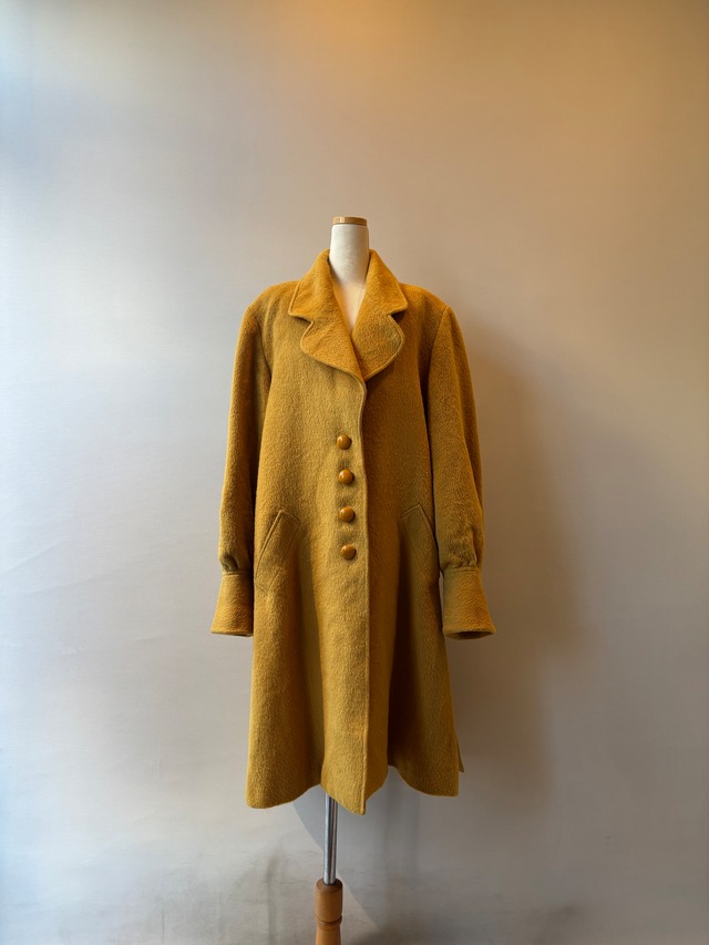 80〜90年代のMade in Italy カラーデザインコートです。当時のボリュームあるシルエットにマスタードイエローカラーが目を惹くコートです。 シルエットやボタンも可愛くデザイン性の高いアルパカ&ウールコートです。 目立つ大きい汚れは無く、 経年経過による使用感はございますが全体的に状態良く、着用が困難なダメージはございません。 サイズ:表記なし 素材:70%alpaca、30%wool 身幅128cm 着丈103cm 肩幅45cm 袖丈67cm *model160cm *ヴィンテージの為、素材特有の使用感、細かい汚れや傷等ある場合がございますのでご了承下さいませ。 ーーーーーーーーーーーーーーーーーーー 実店舗と同時販売を行なっておりますので、店頭にてsold outになる場合がございます。 予めご了承下さいますよう宜しくお願い致します。 【返品交換について】 当店はヴィンテージの一点物を扱っておりますので返品交換は出来かねます。 ヴィンテージに慣れた方、ヴィンテージにご理解のある方向けのアイテムです。 【配送について】 ご注文の商品はゆうパックにて発送させていただきます。お届けのご希望日時がございましたらお申し付けくださいませ。 送料につきましては一律840円となります。