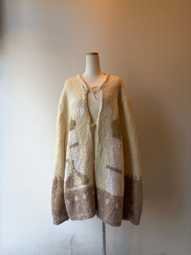 60-70s ribbon tie glitter mohair knit cardigan