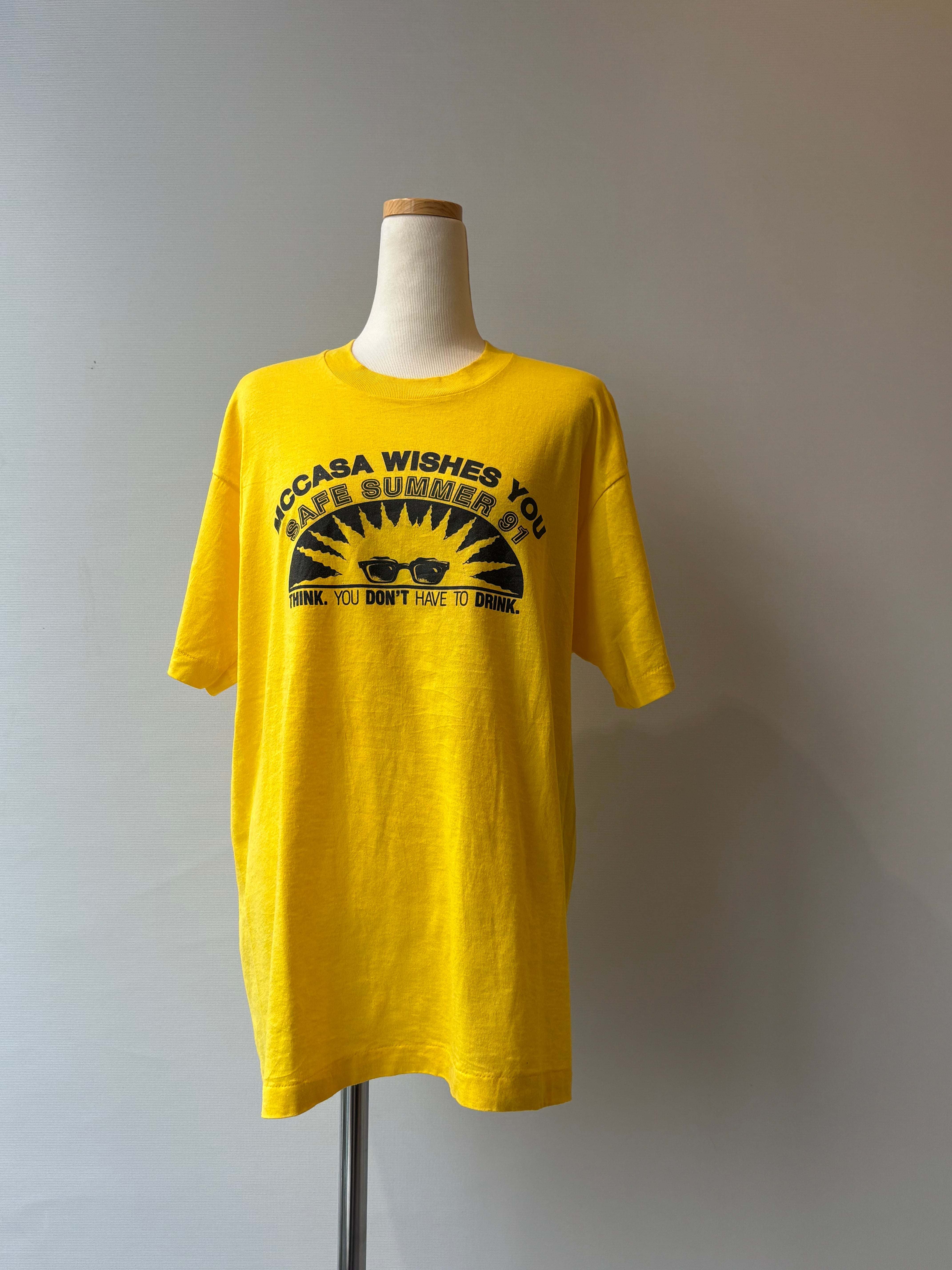 太陽がサングラスをしている面白さがあるユニークなプリントTシャツ。
