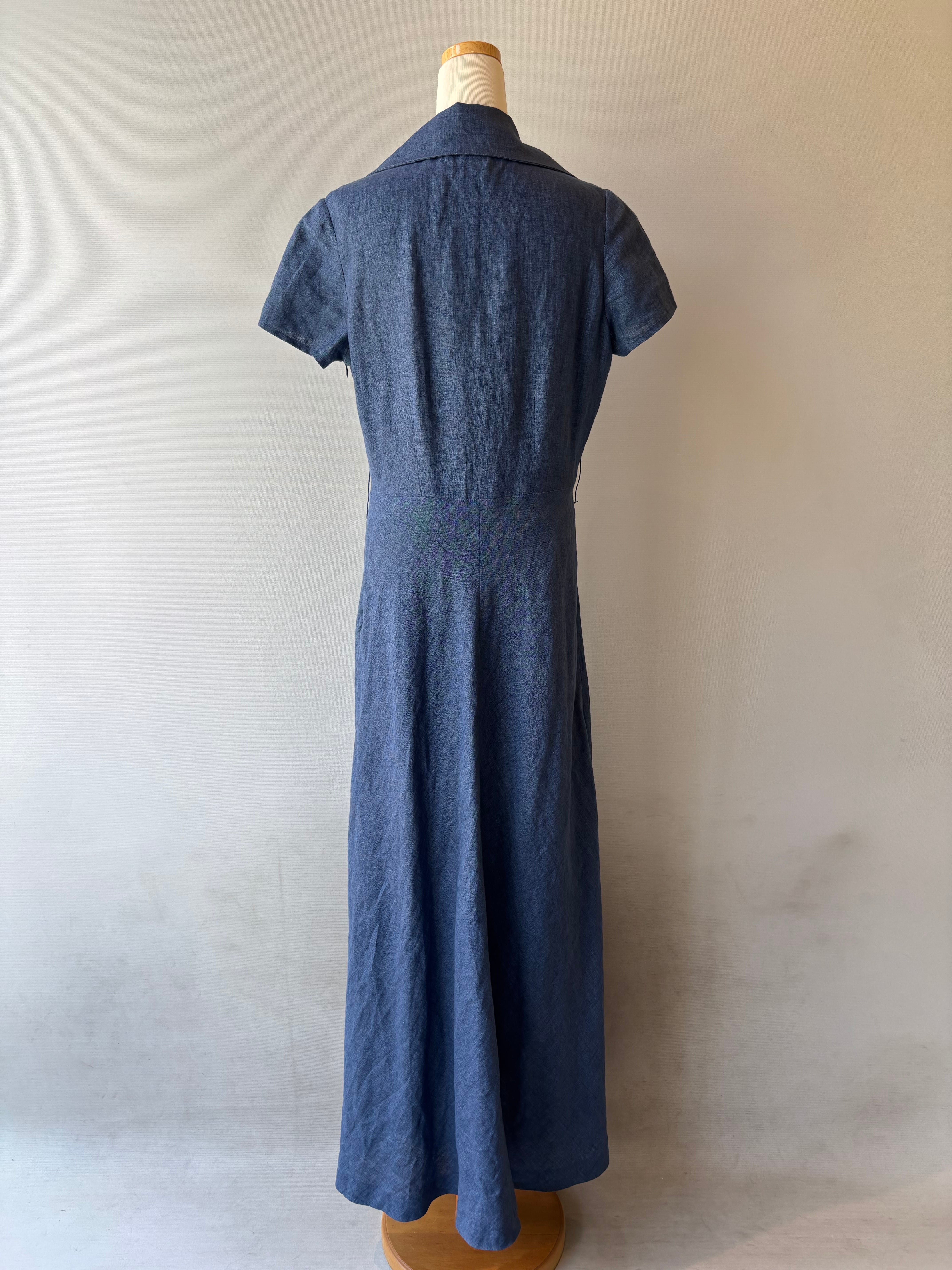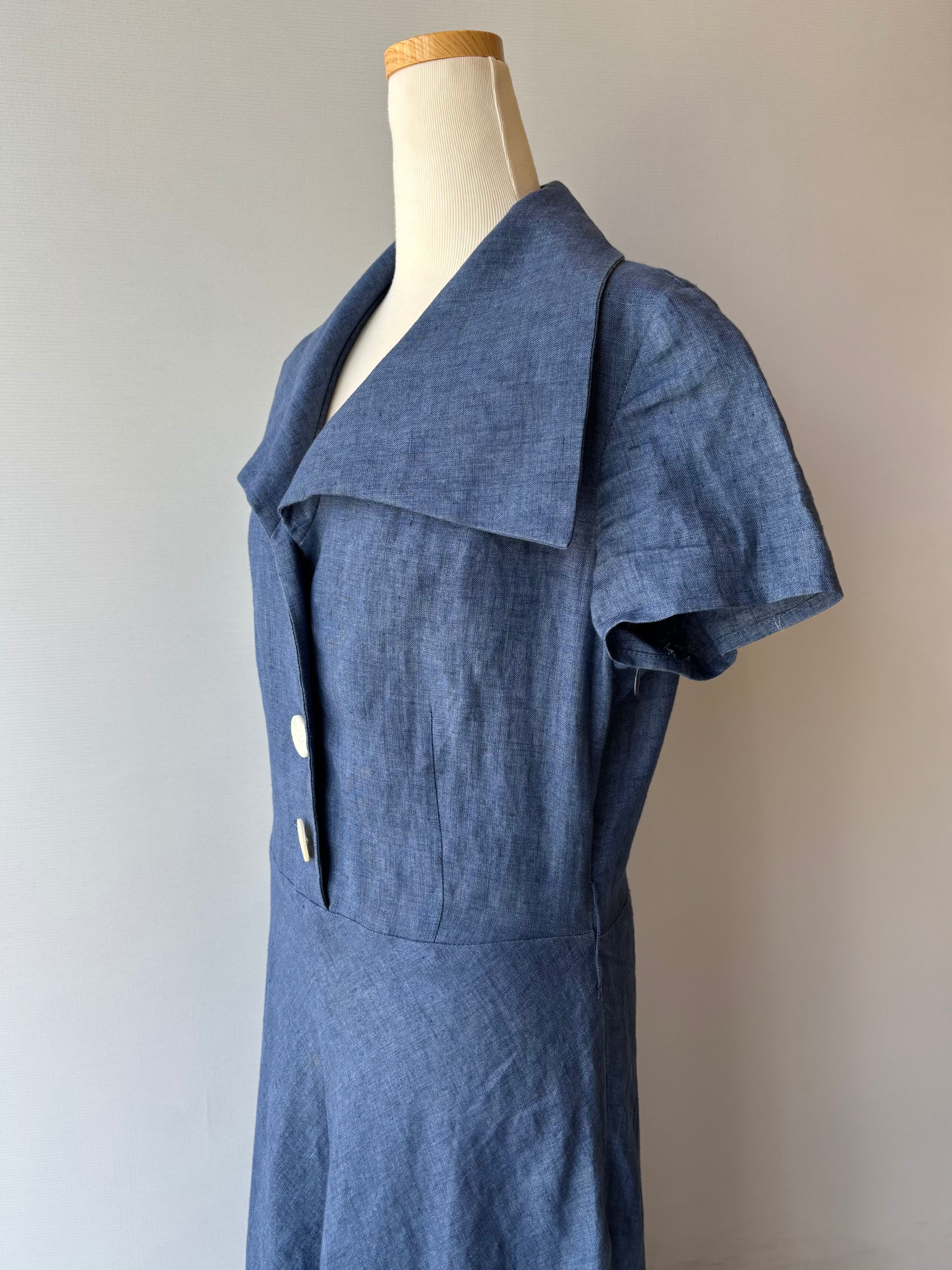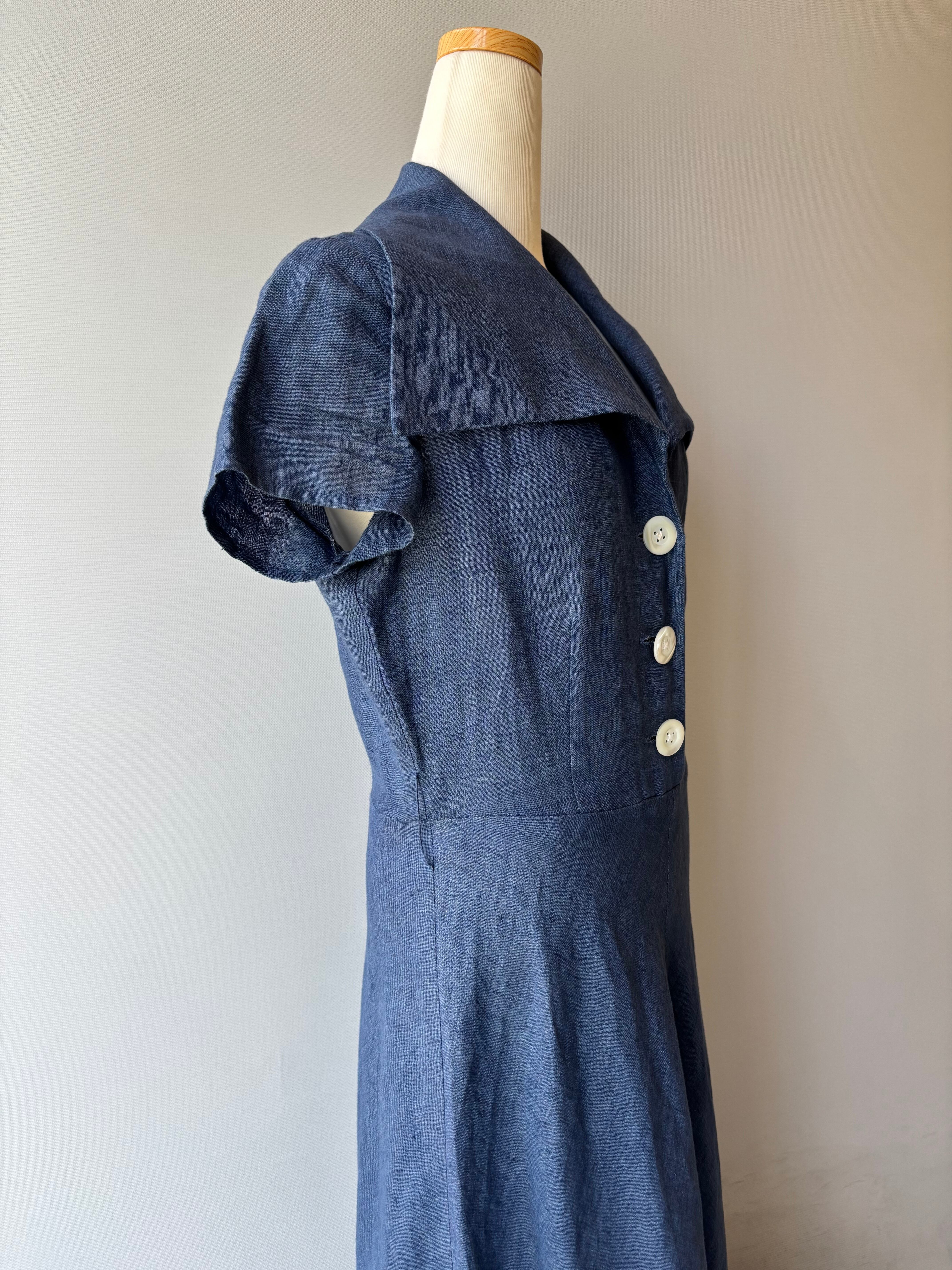 やわらかな大きめの襟に、体のラインにほどよく沿った美しいシルエットで、一枚でサマになるデザインです。
