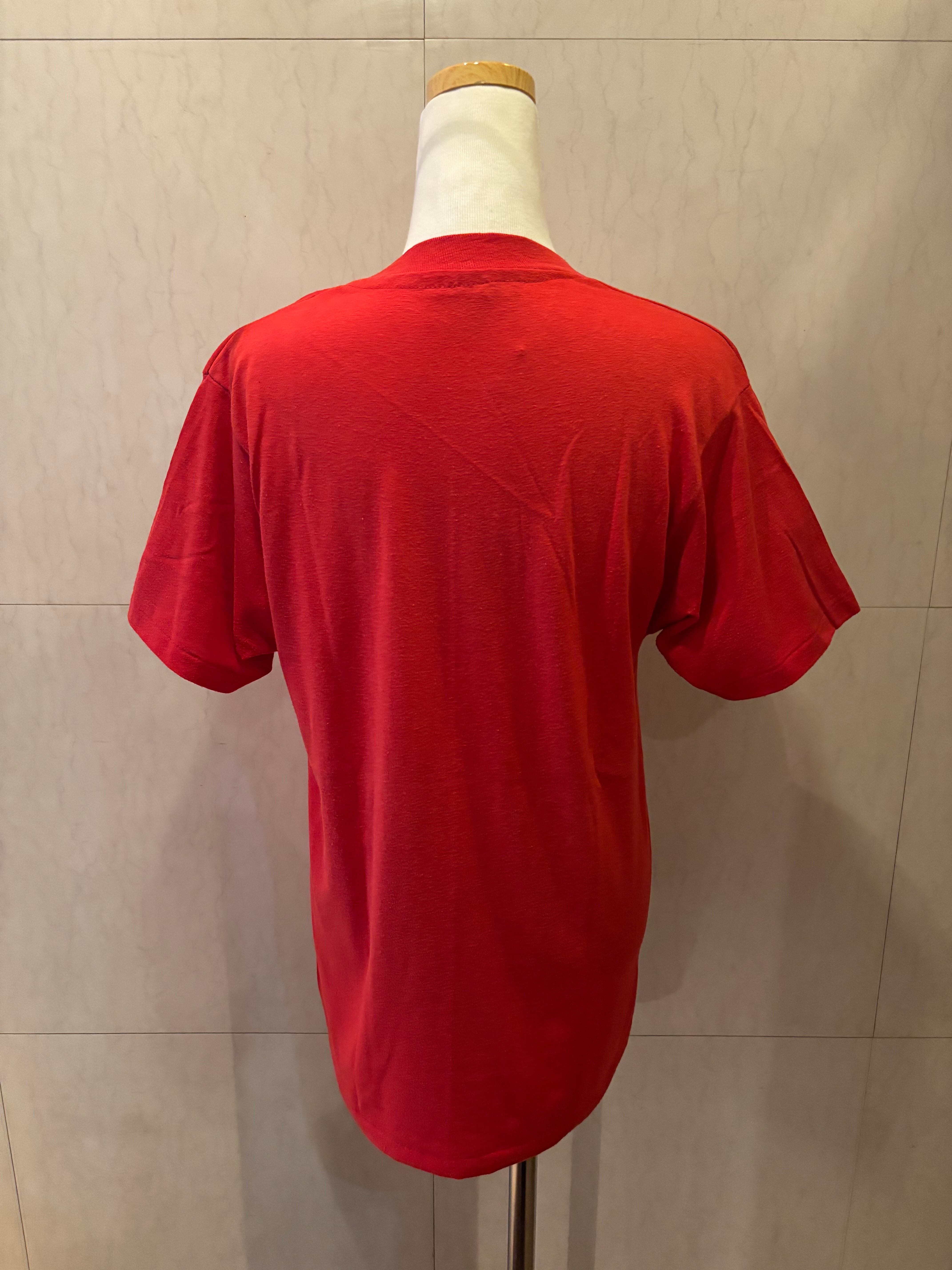 パキッと目を惹く一眼レフのような鮮やかな赤色が魅力のTシャツ。