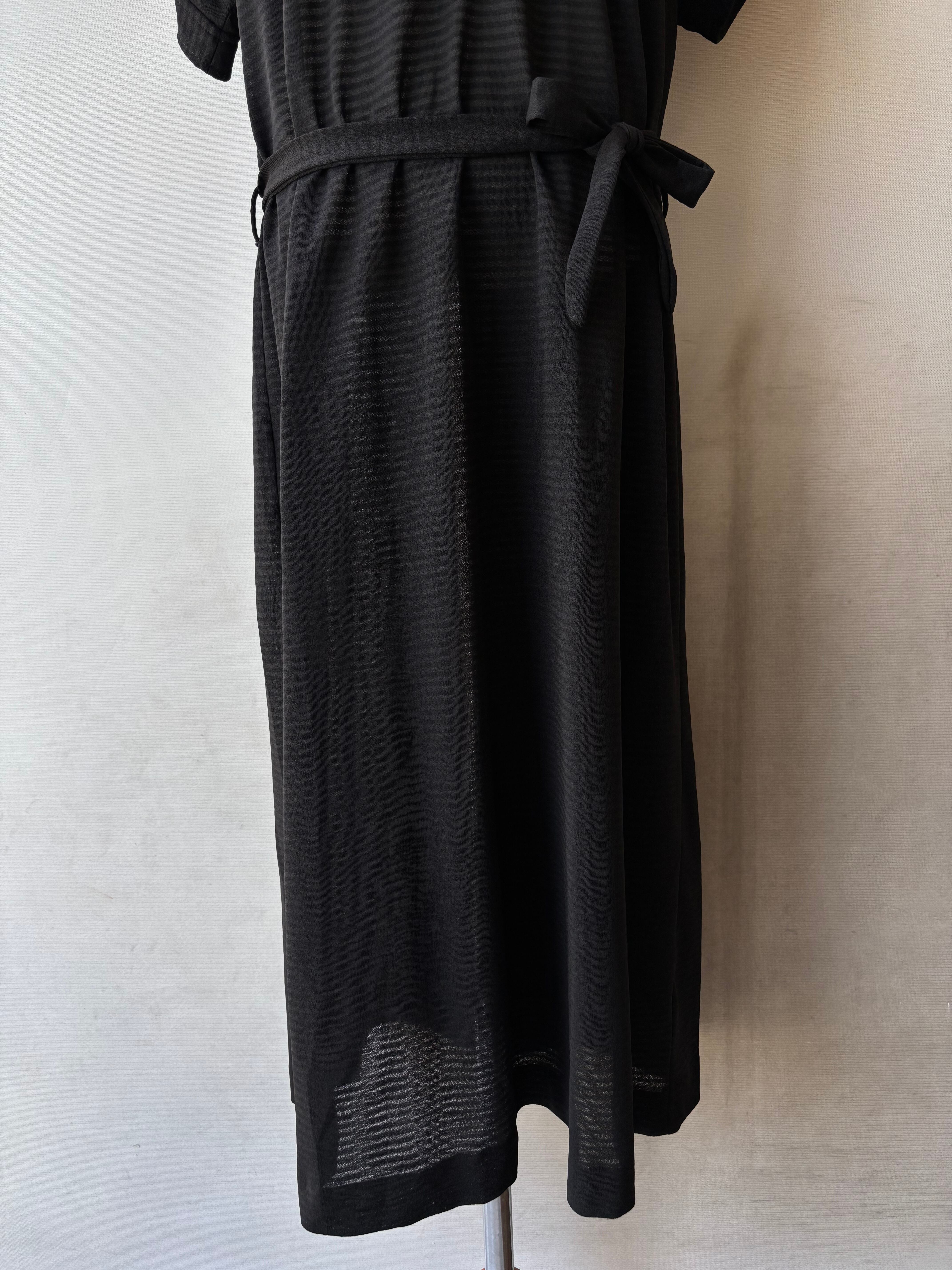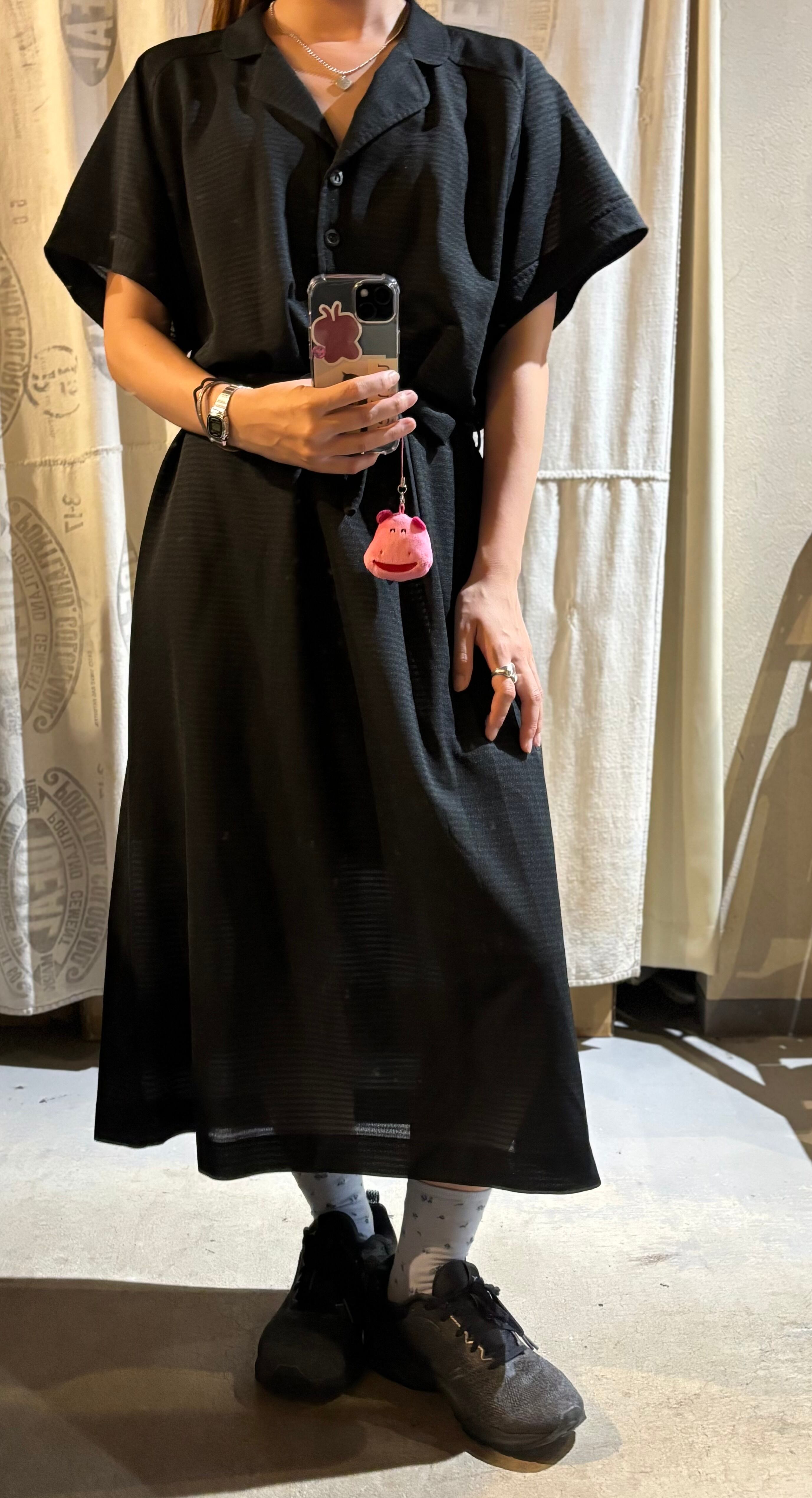ポリエステル100%の軽やかな素材感のブラックワンピース。