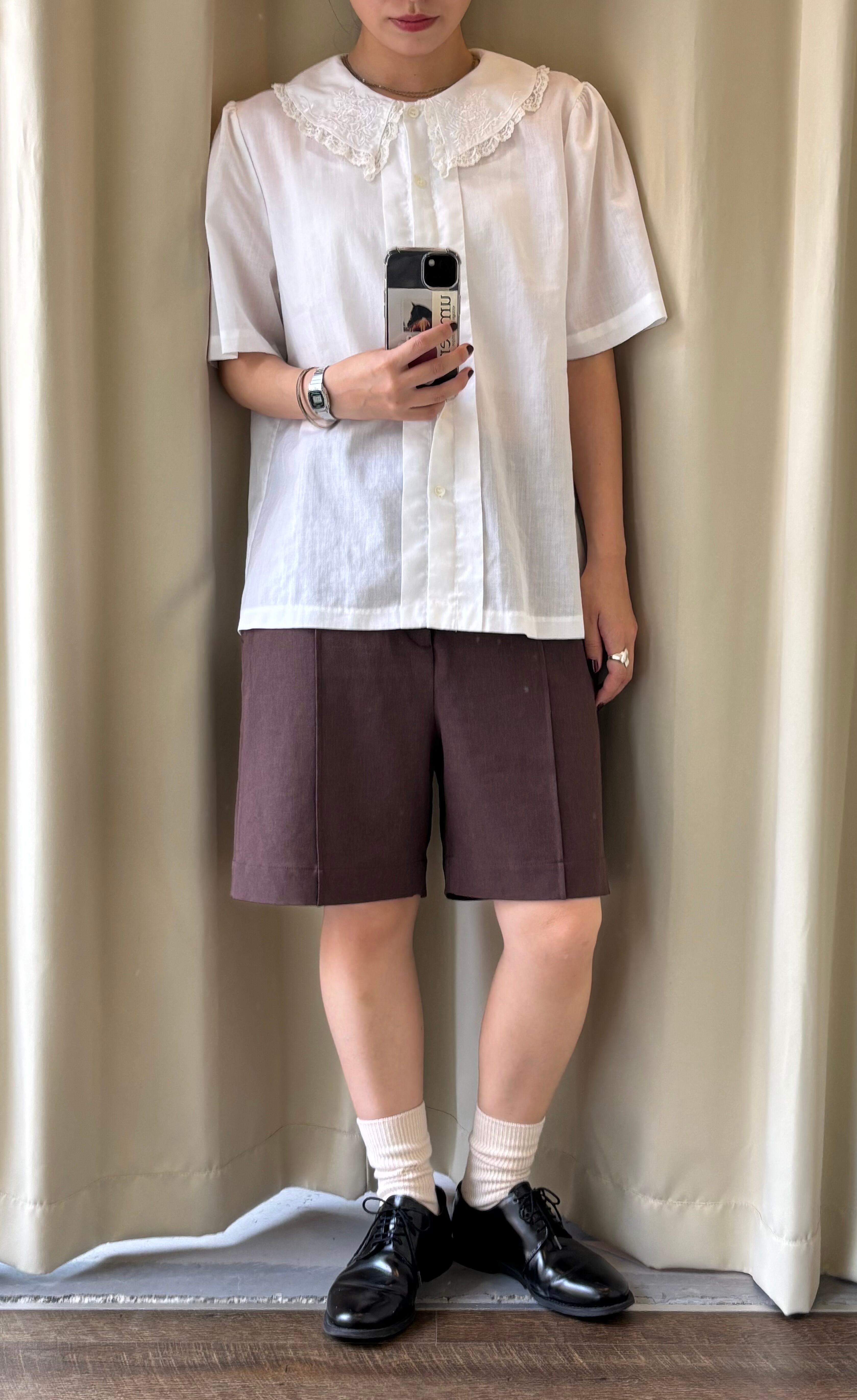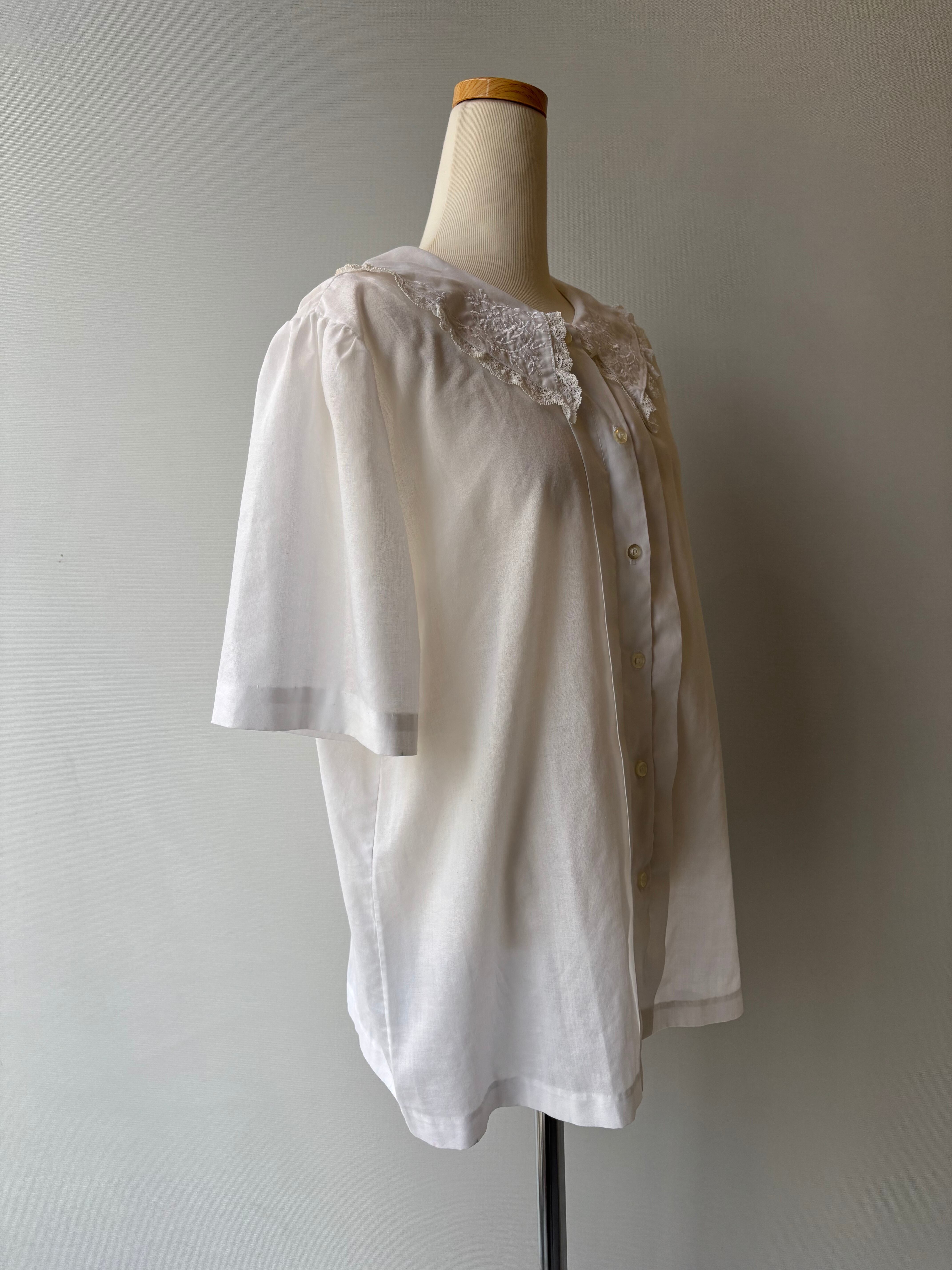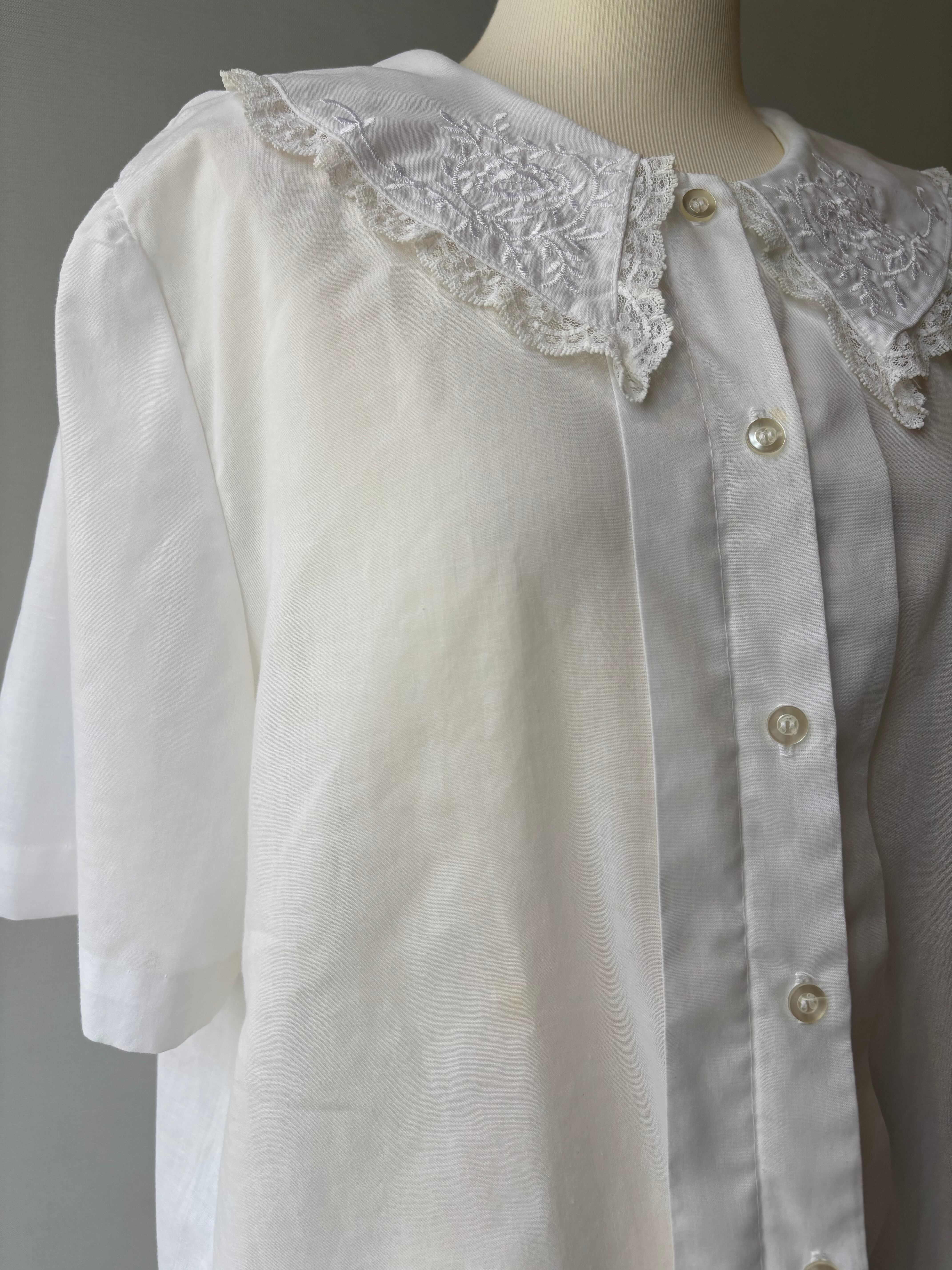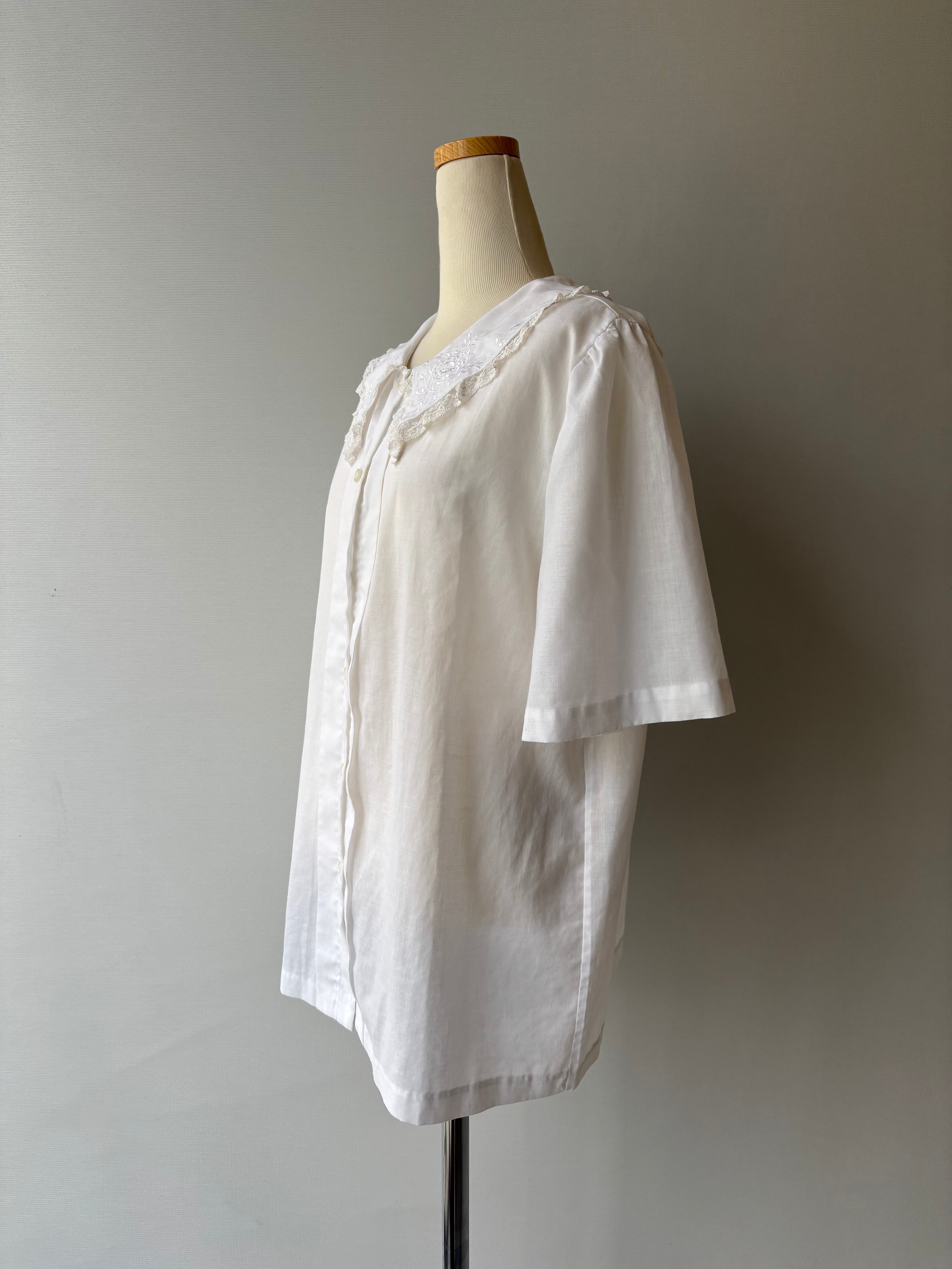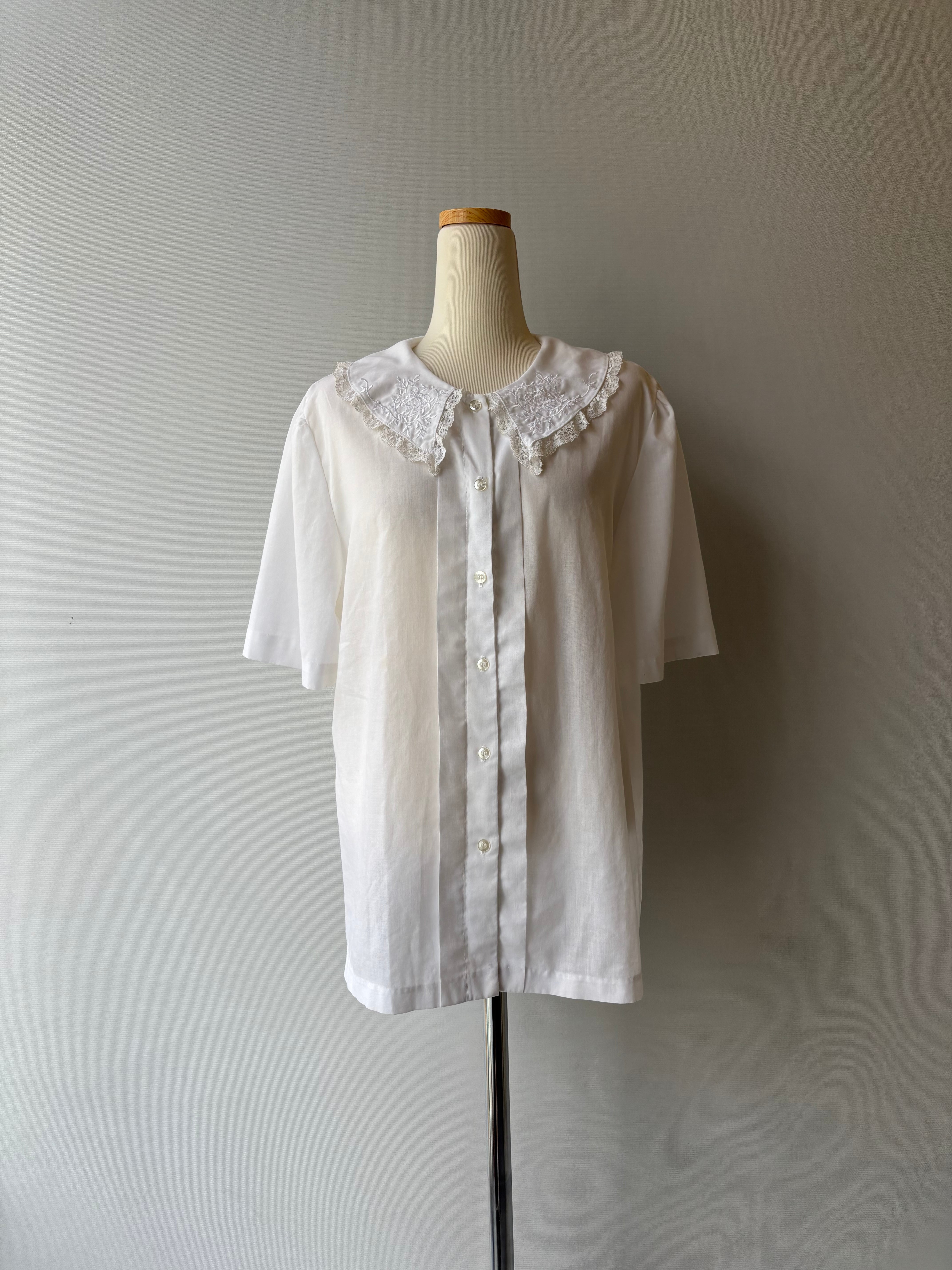 90s vintage embroidery&lace collar blouse