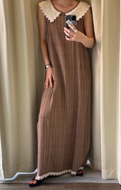 大きなレースカラーが可愛いマキシワンピ。
