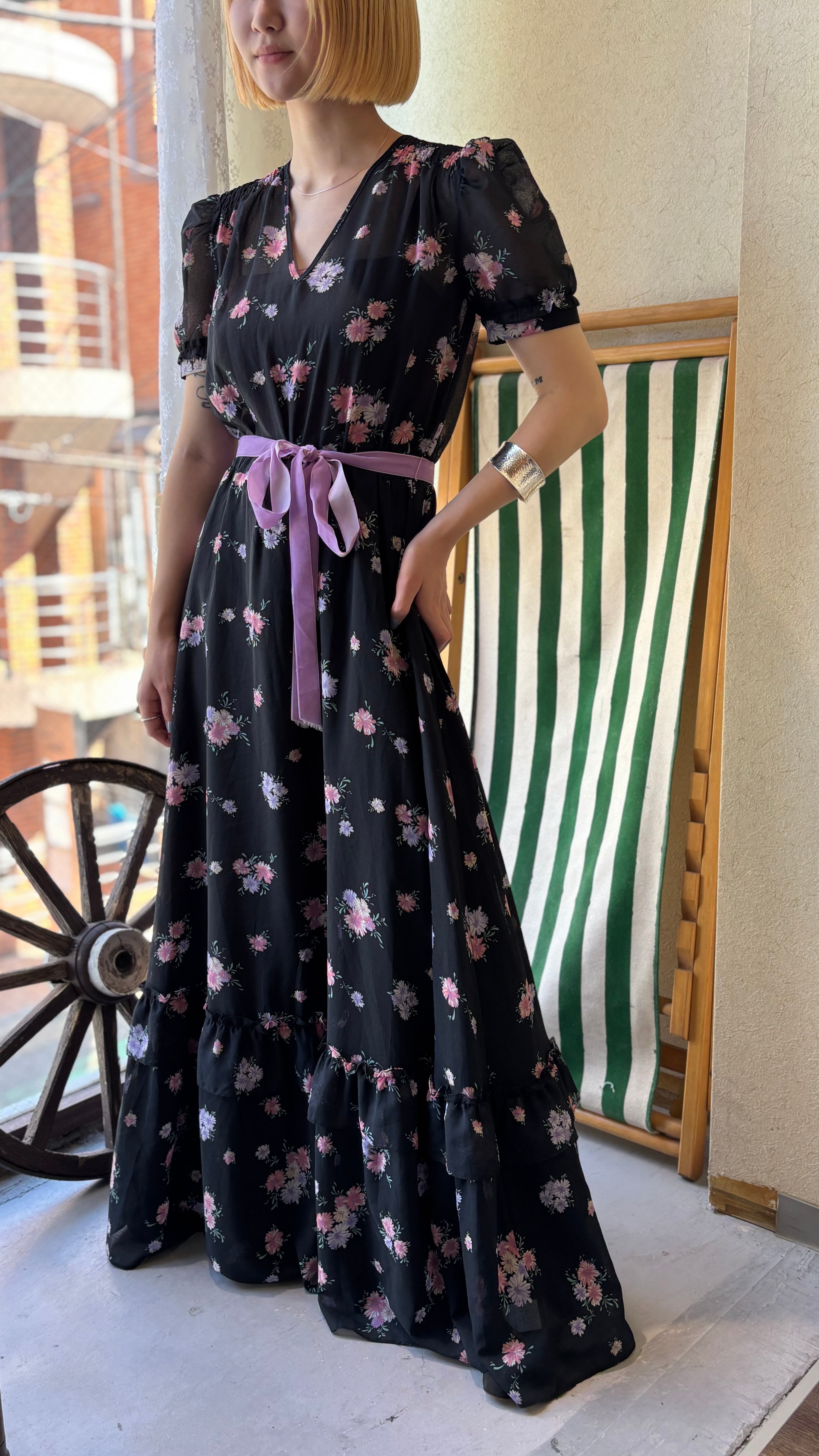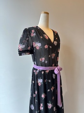 細やかなディテールが魅力の、ガーリーなフラワープリントドレス。