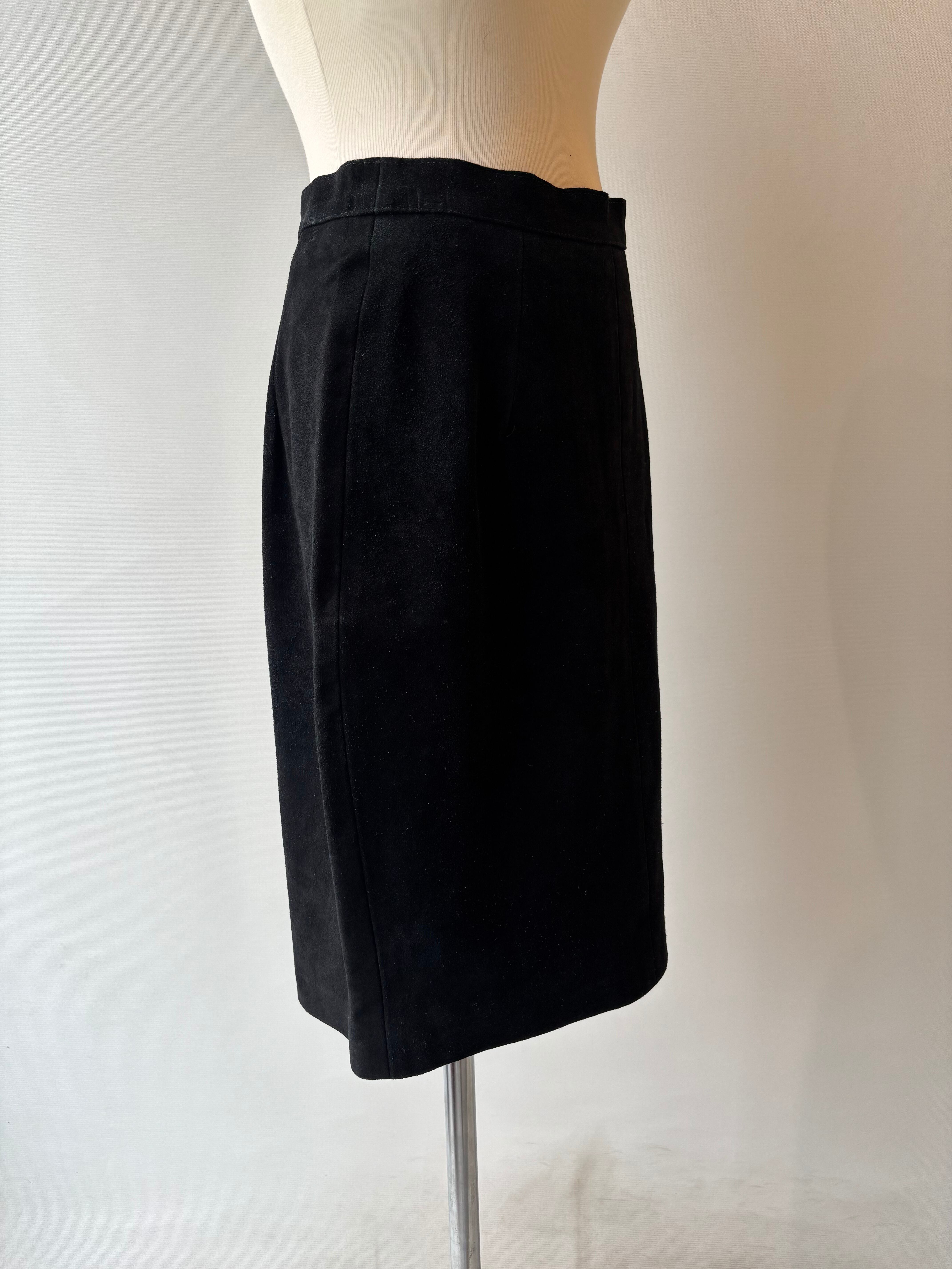 スウェード生地の本革を使用した、ミディー丈ペンシルスカート。