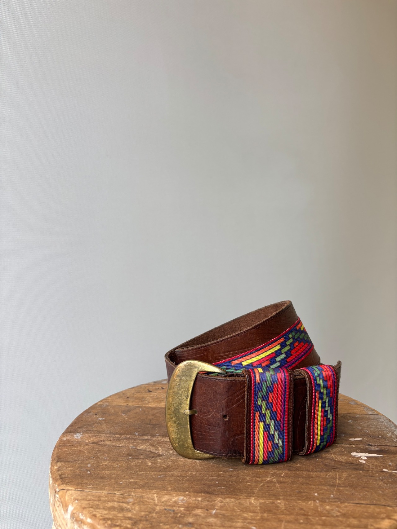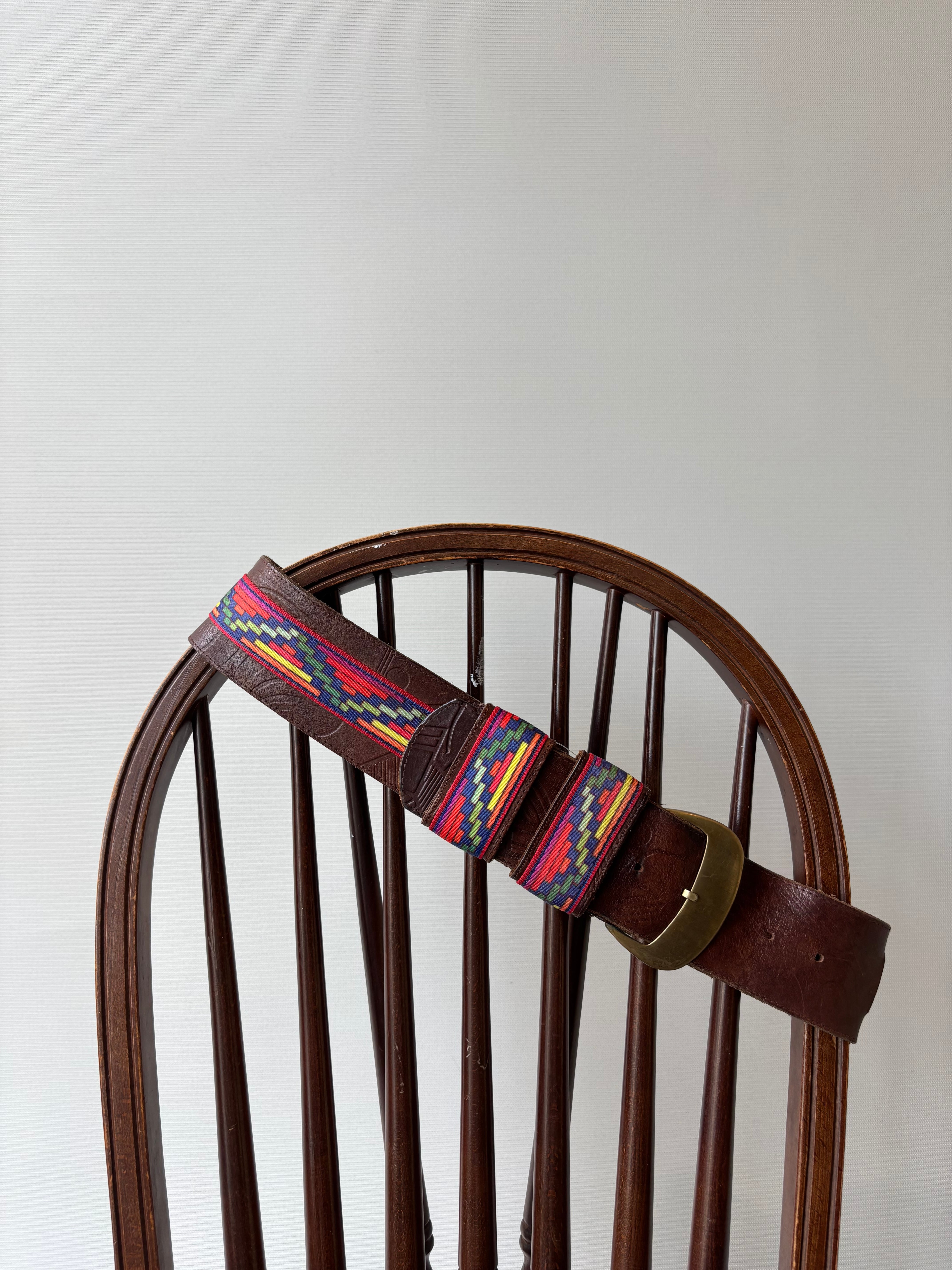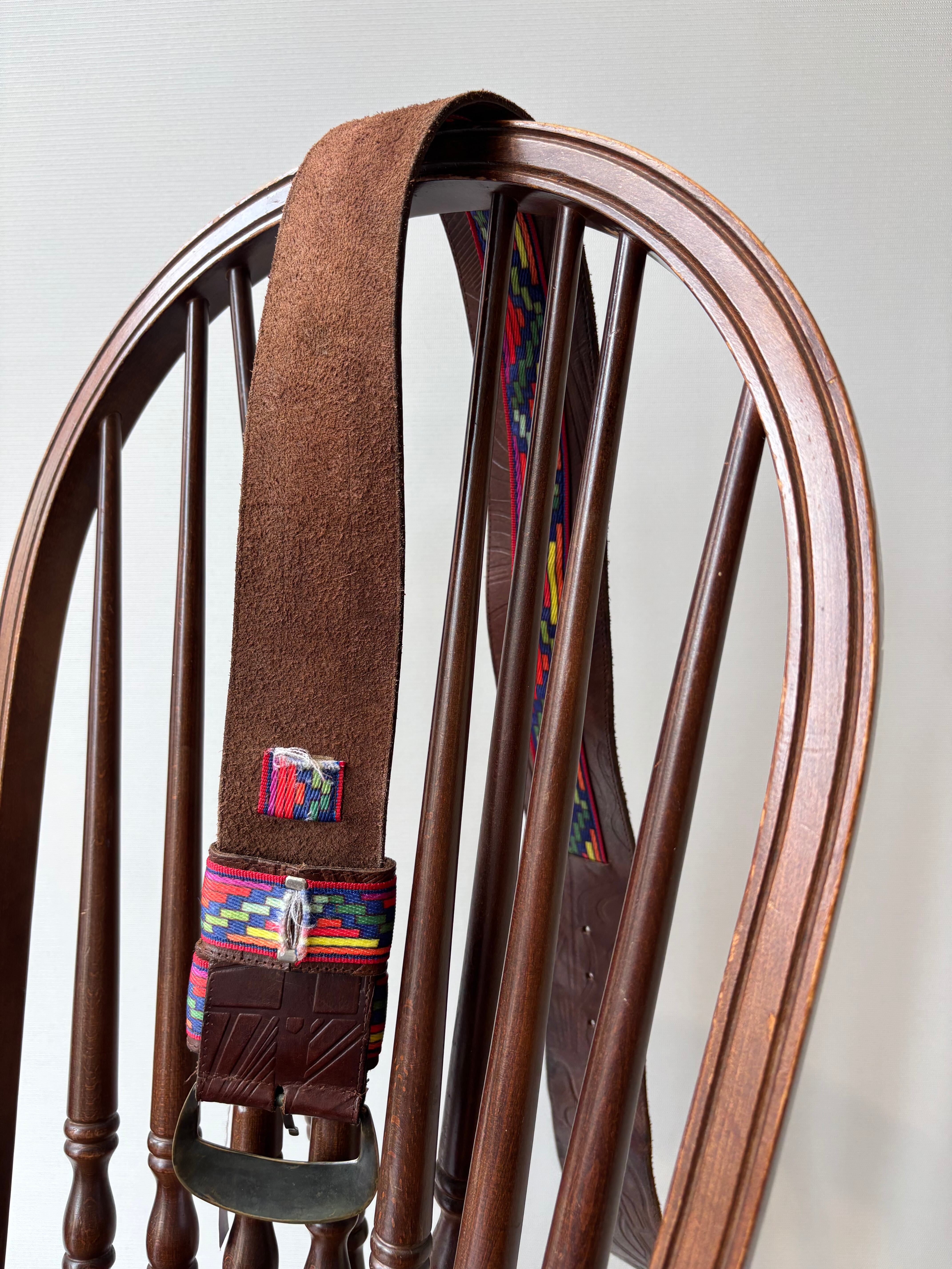 太めの茶色ベースに、カラフルな織り柄がアクセントのアイテム。