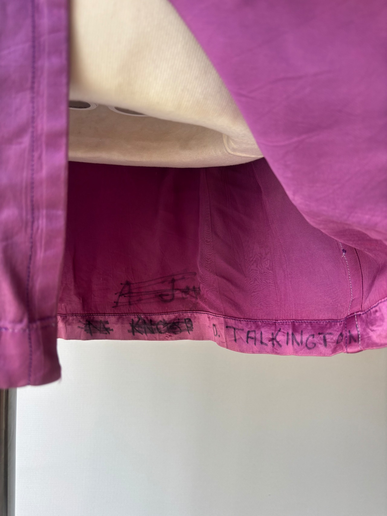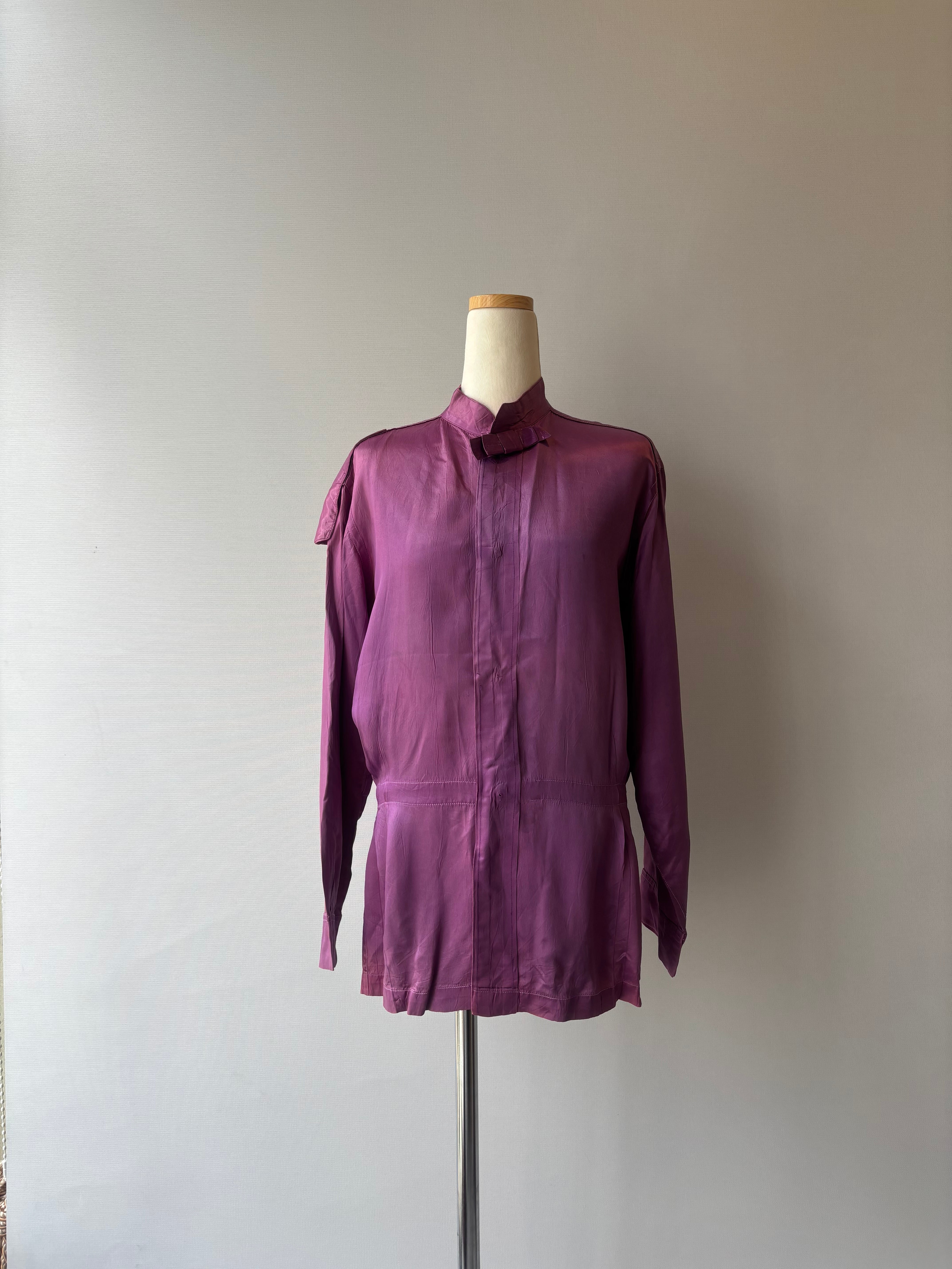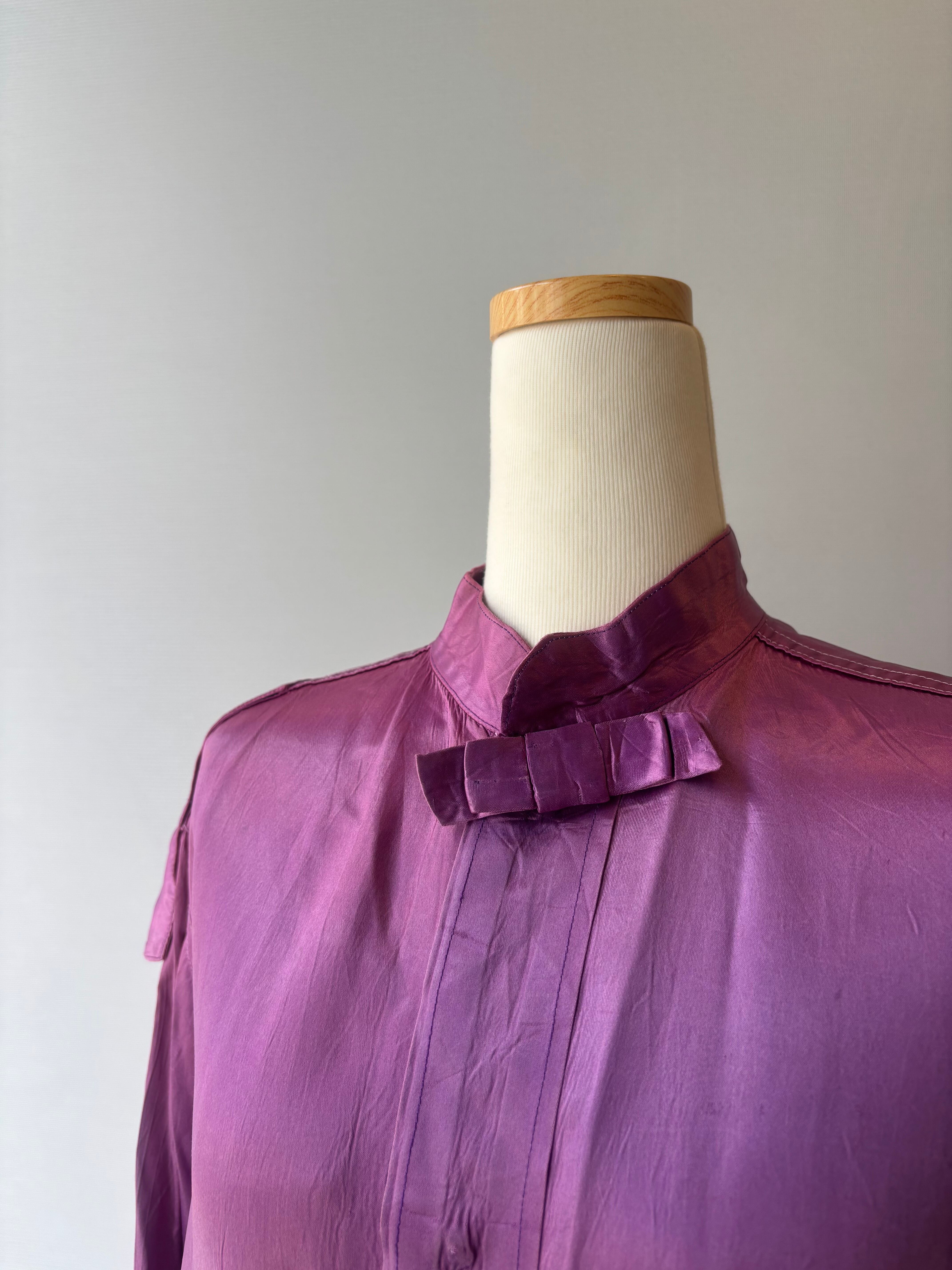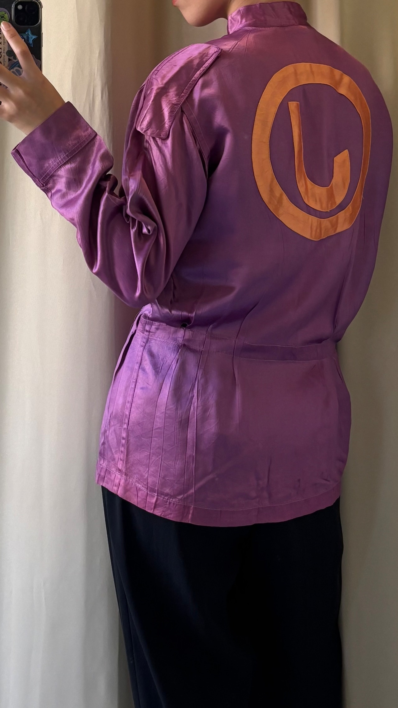 深みあるパープルに、背中の「J」プリントがアクセントになっているサテンジャケット。