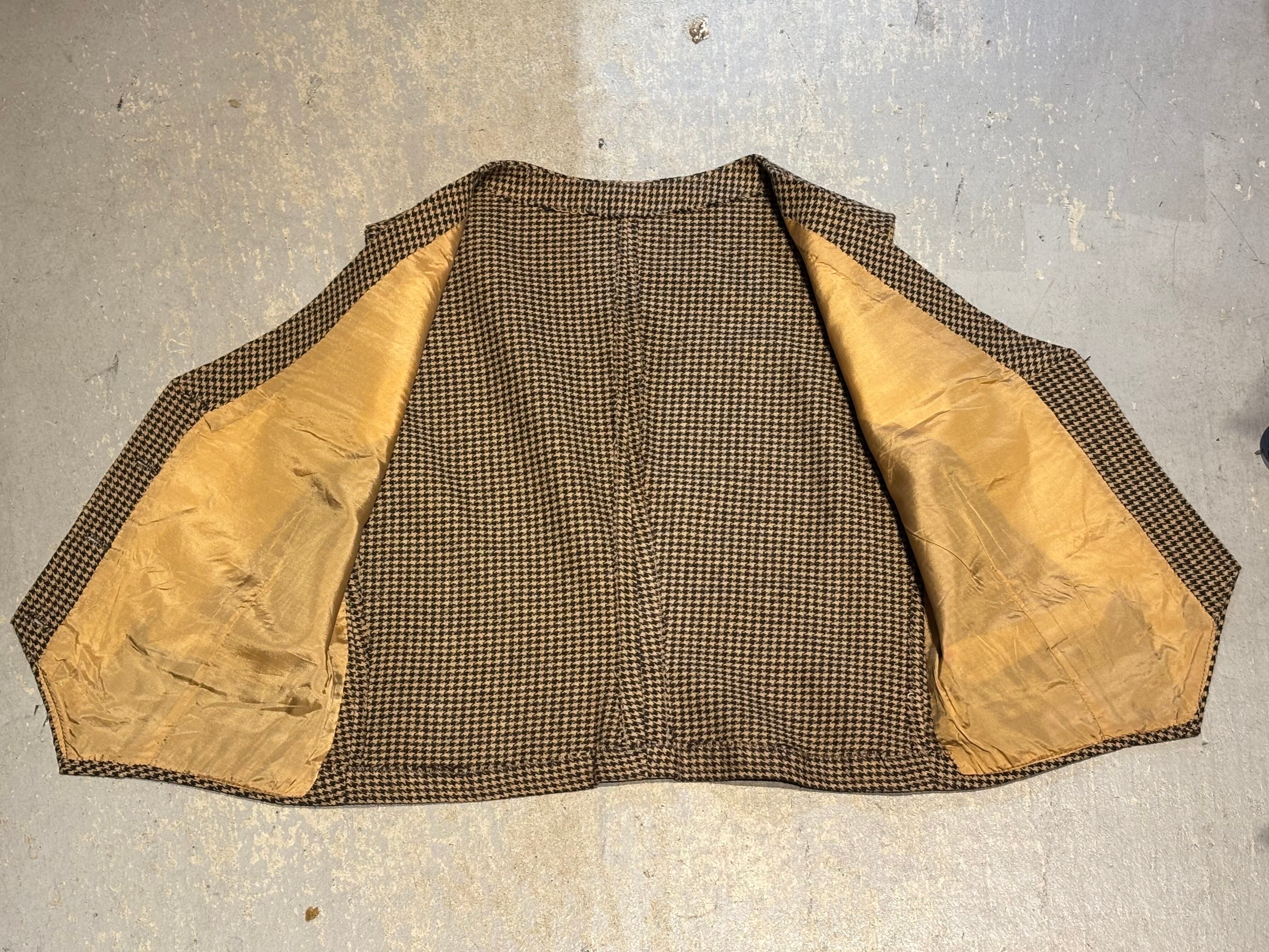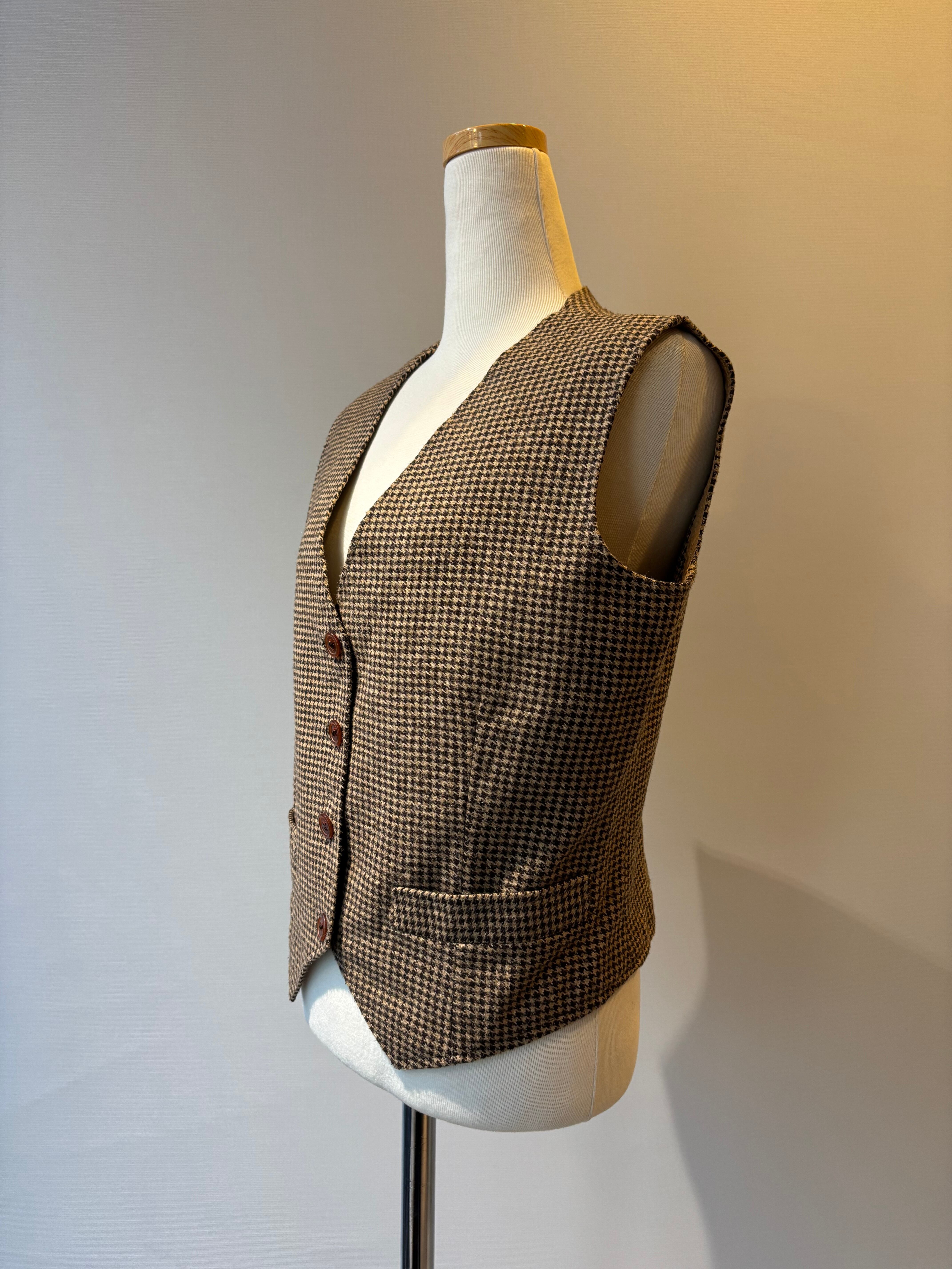 ブラウンのハウンドトゥース柄が、ほんのり赤みを感じさせる上品な一枚。