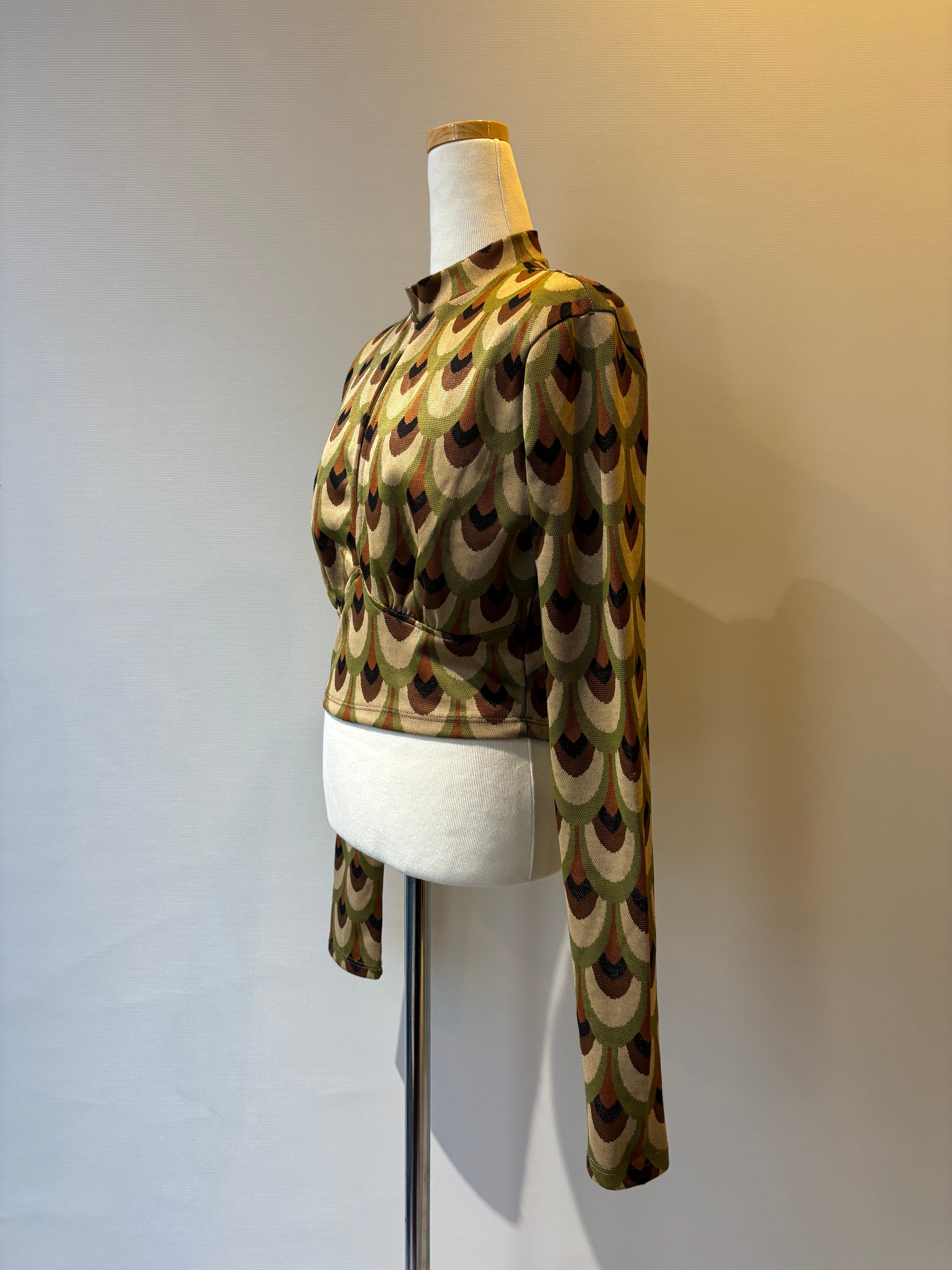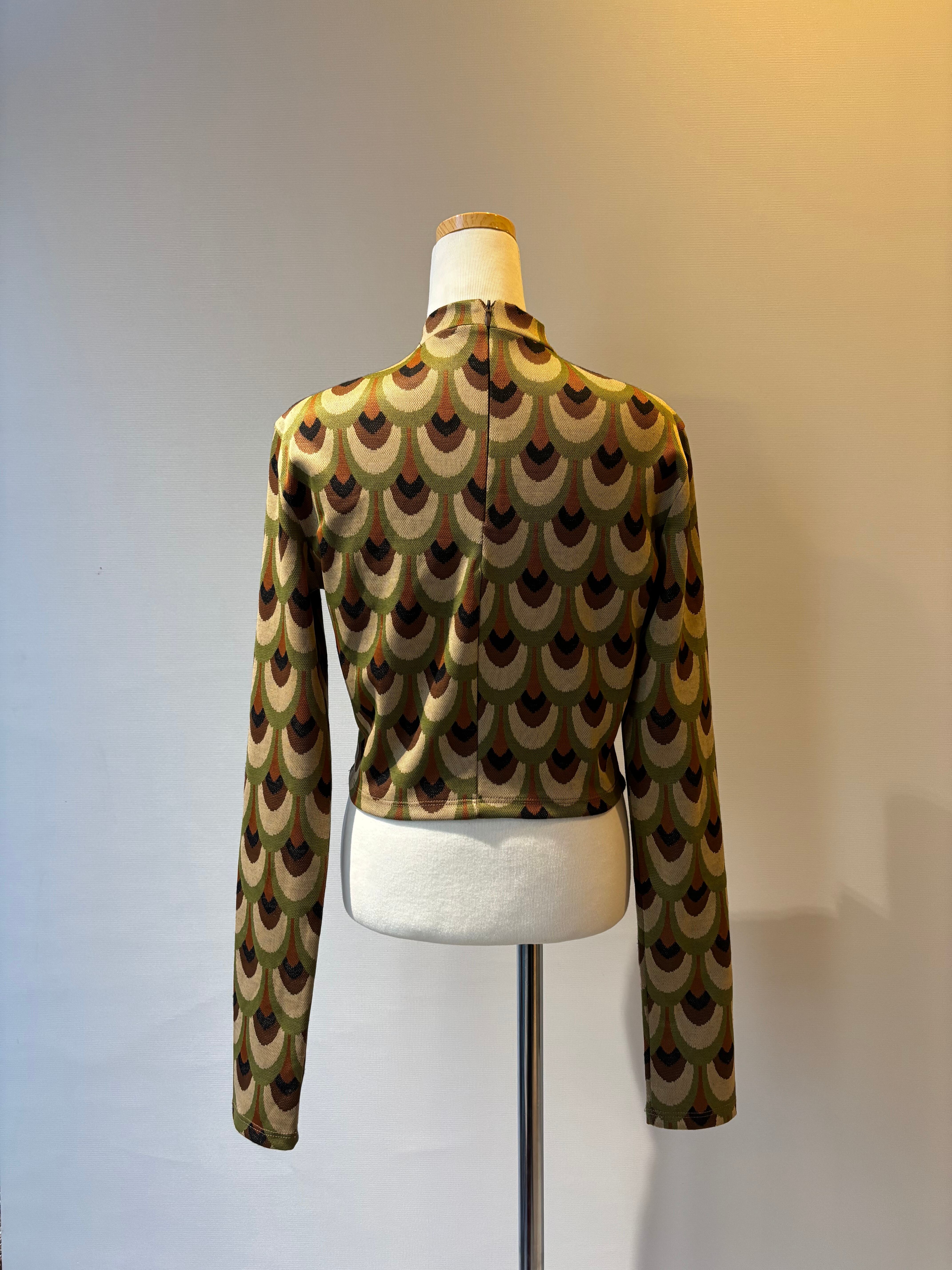 ハイネックにバスト中心のカットアウトが入った個性的なデザインで、スタイリングのバランスも取りやすい一枚。周りと差をつけたい方におすすめです!