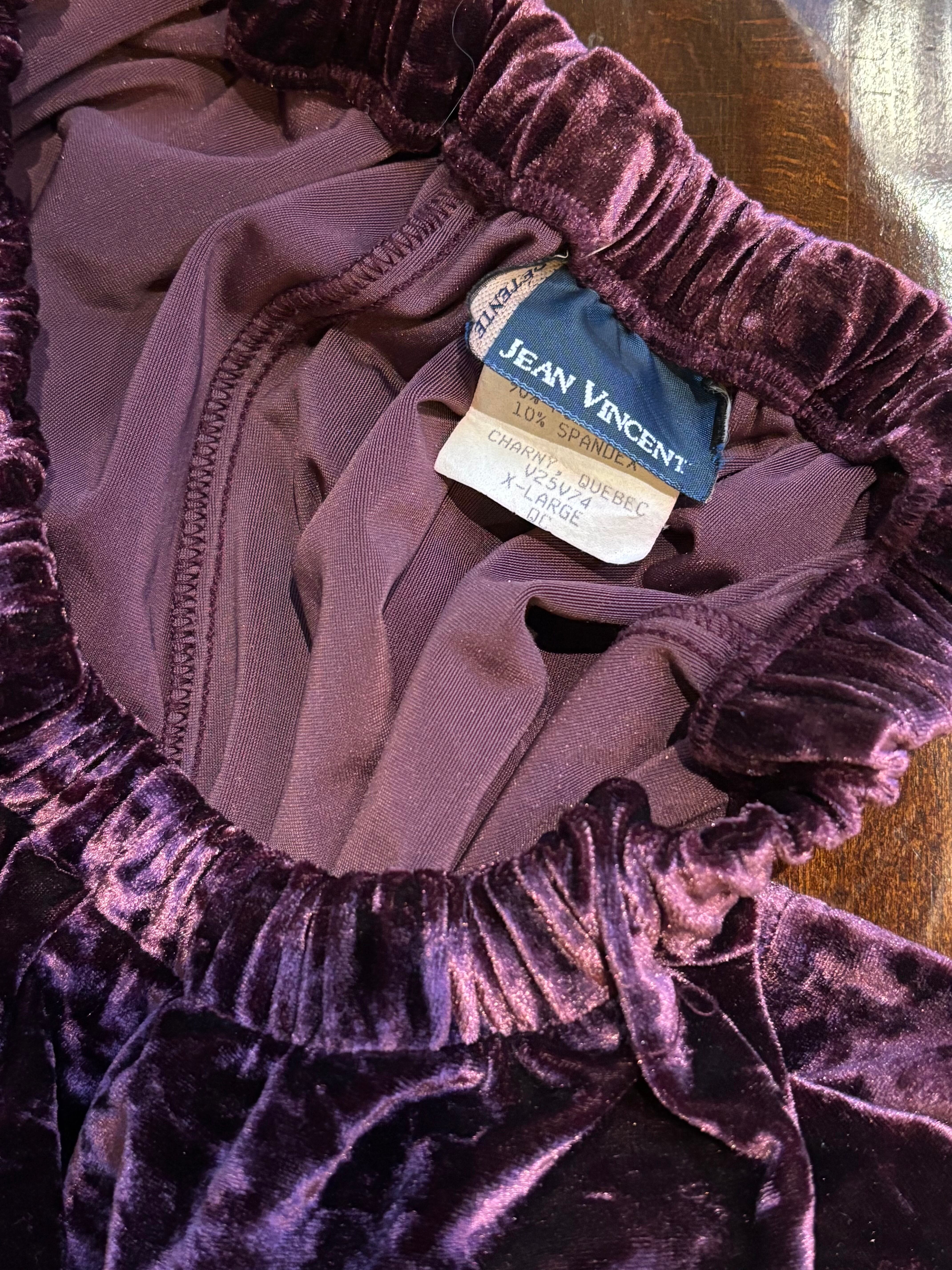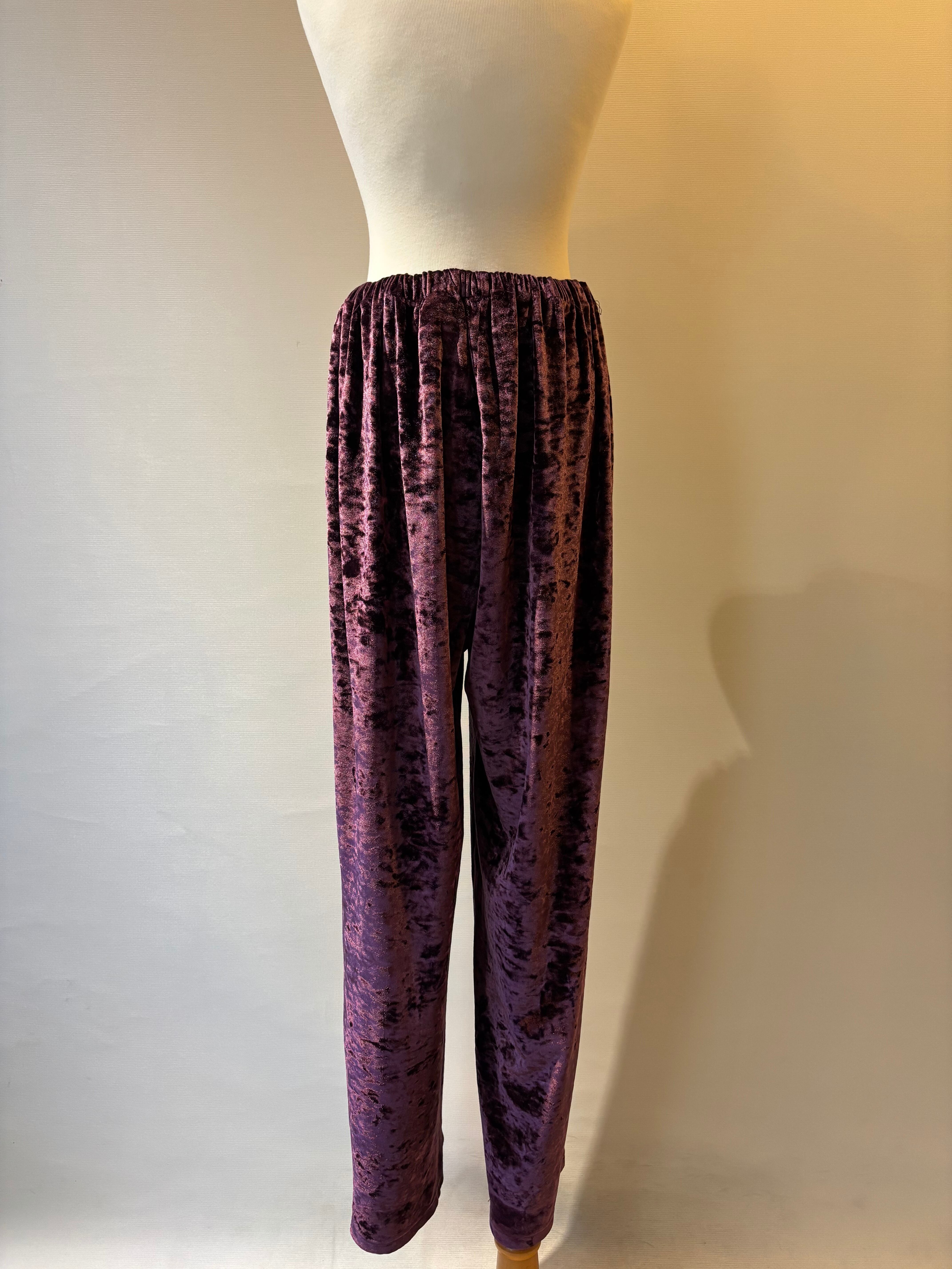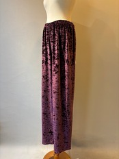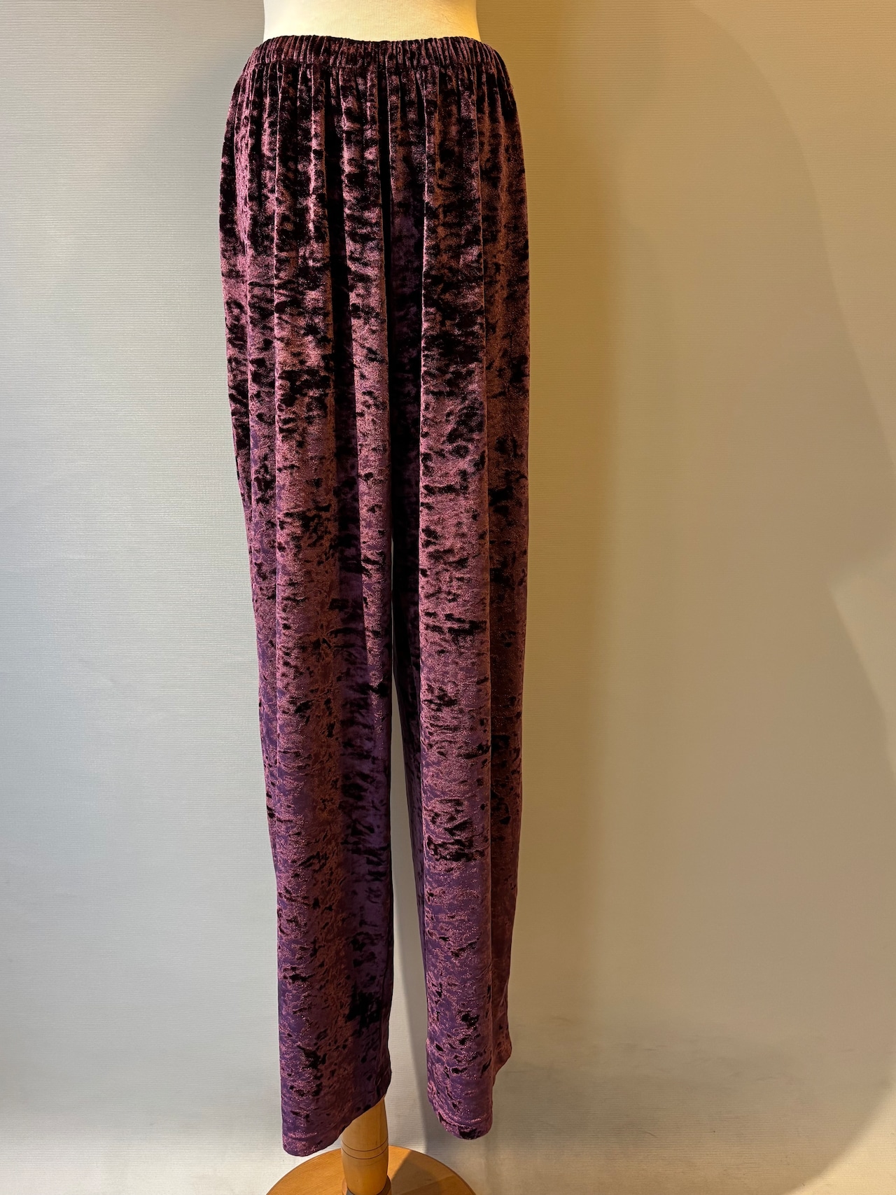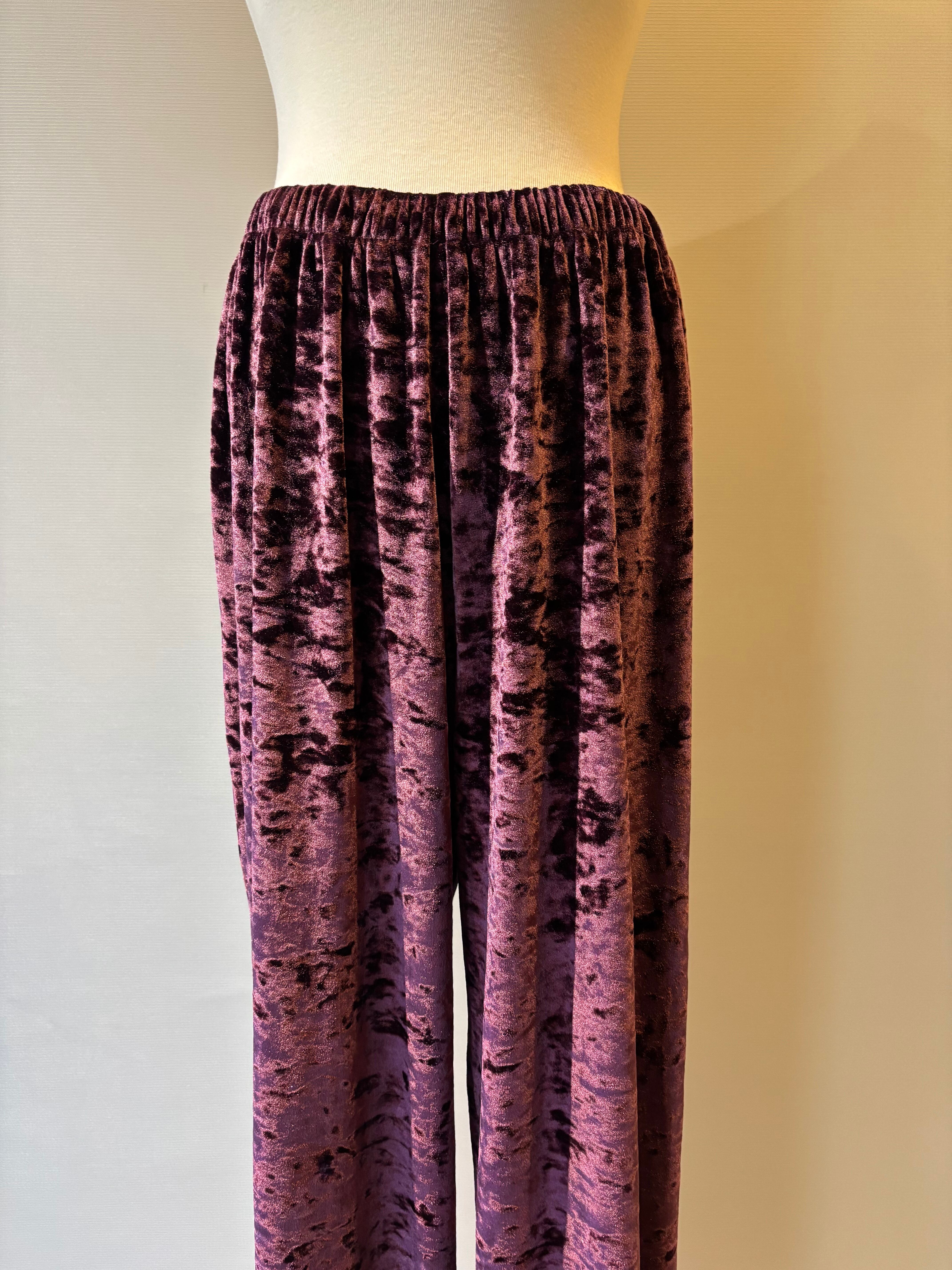 深みのあるワインレッドの色味とベロアの上品な質感が魅力のパンツ。