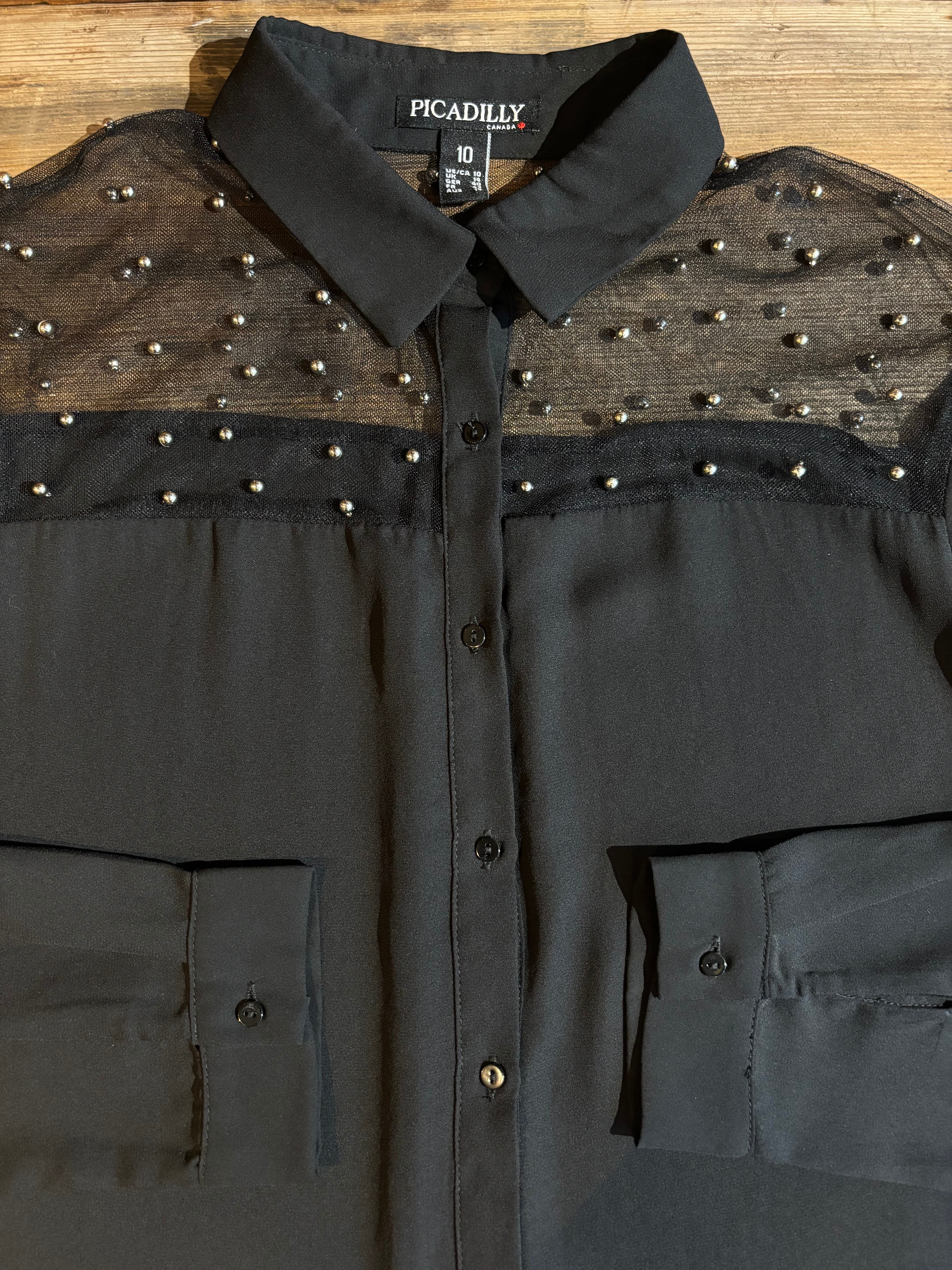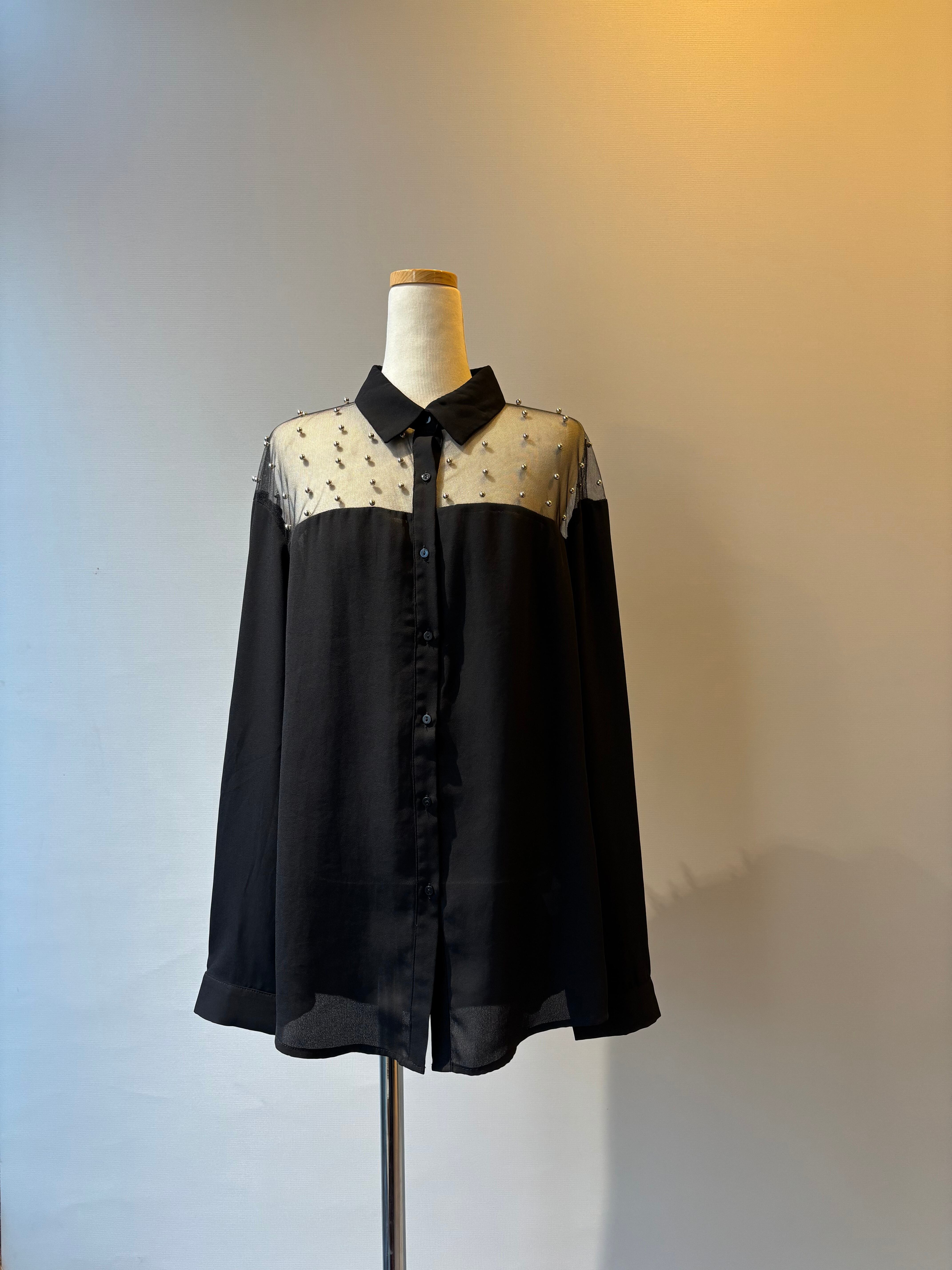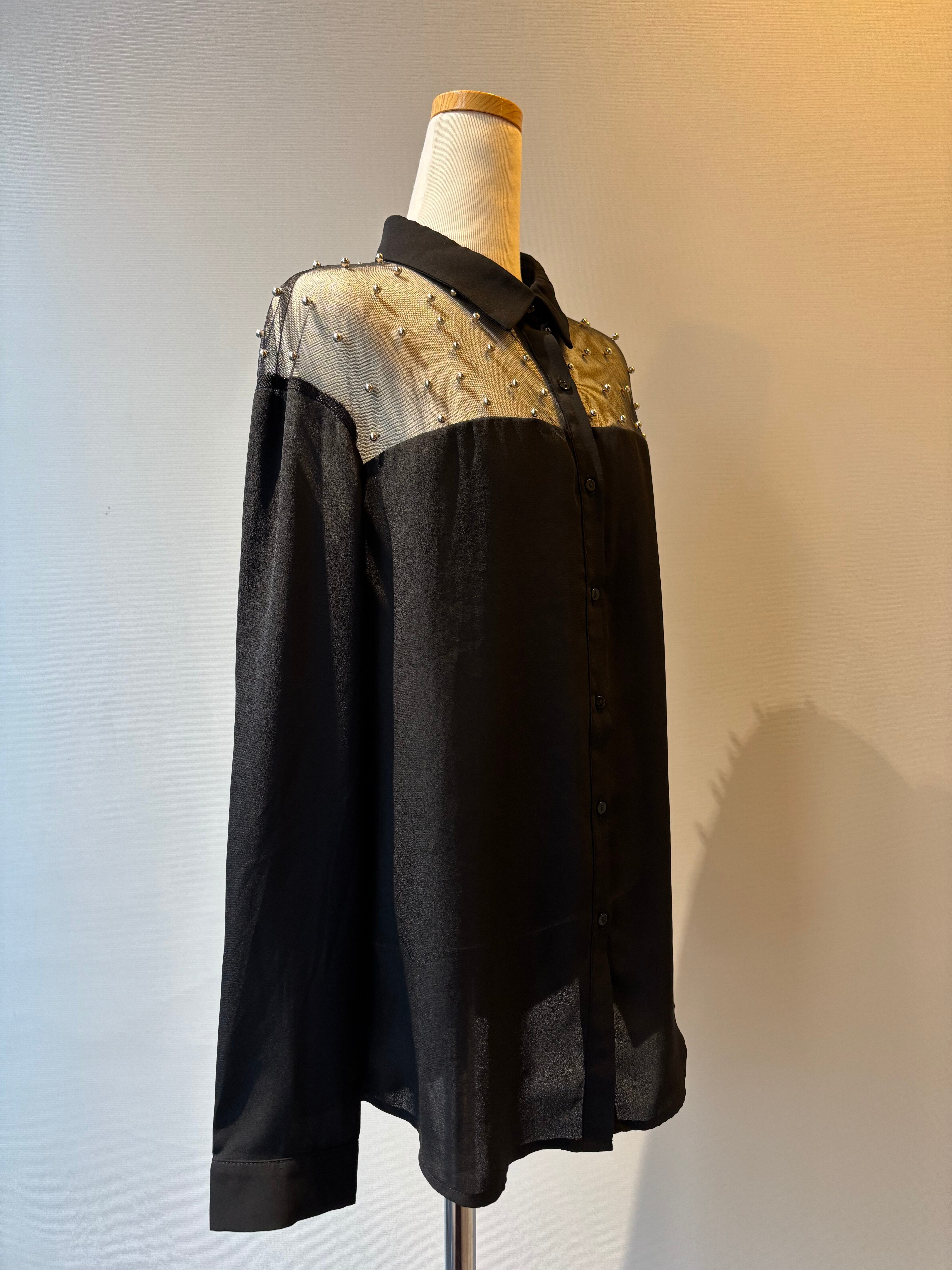 silver ball detail sheer shirt