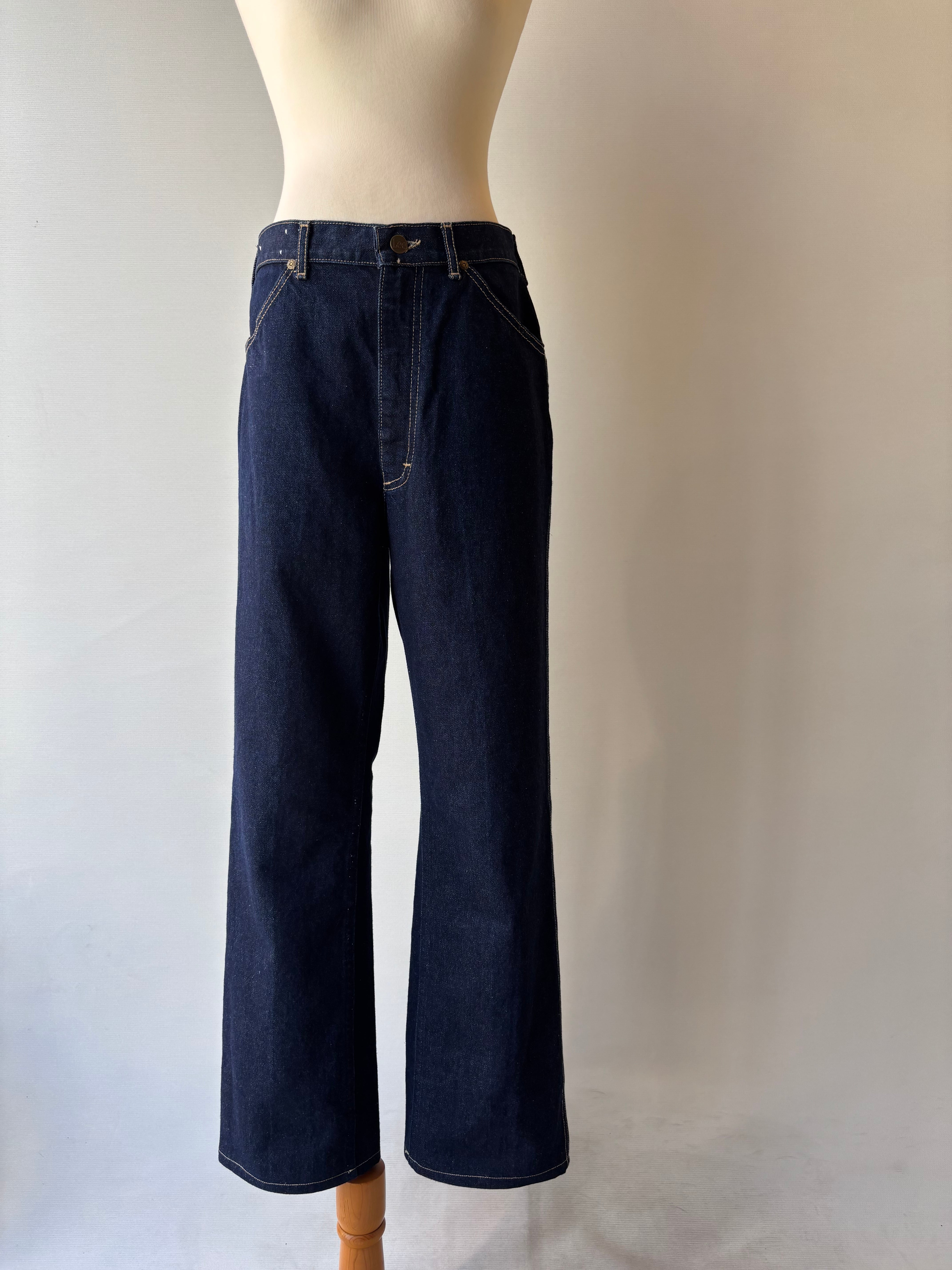 深みのある濃色デニムは、カジュアルすぎず上品に着こなせる一本。ハイウエスト仕様で腰回りをすっきり見せつつ、程よい太さのストレートシルエットで美しく演出する万能デニムパンツです!