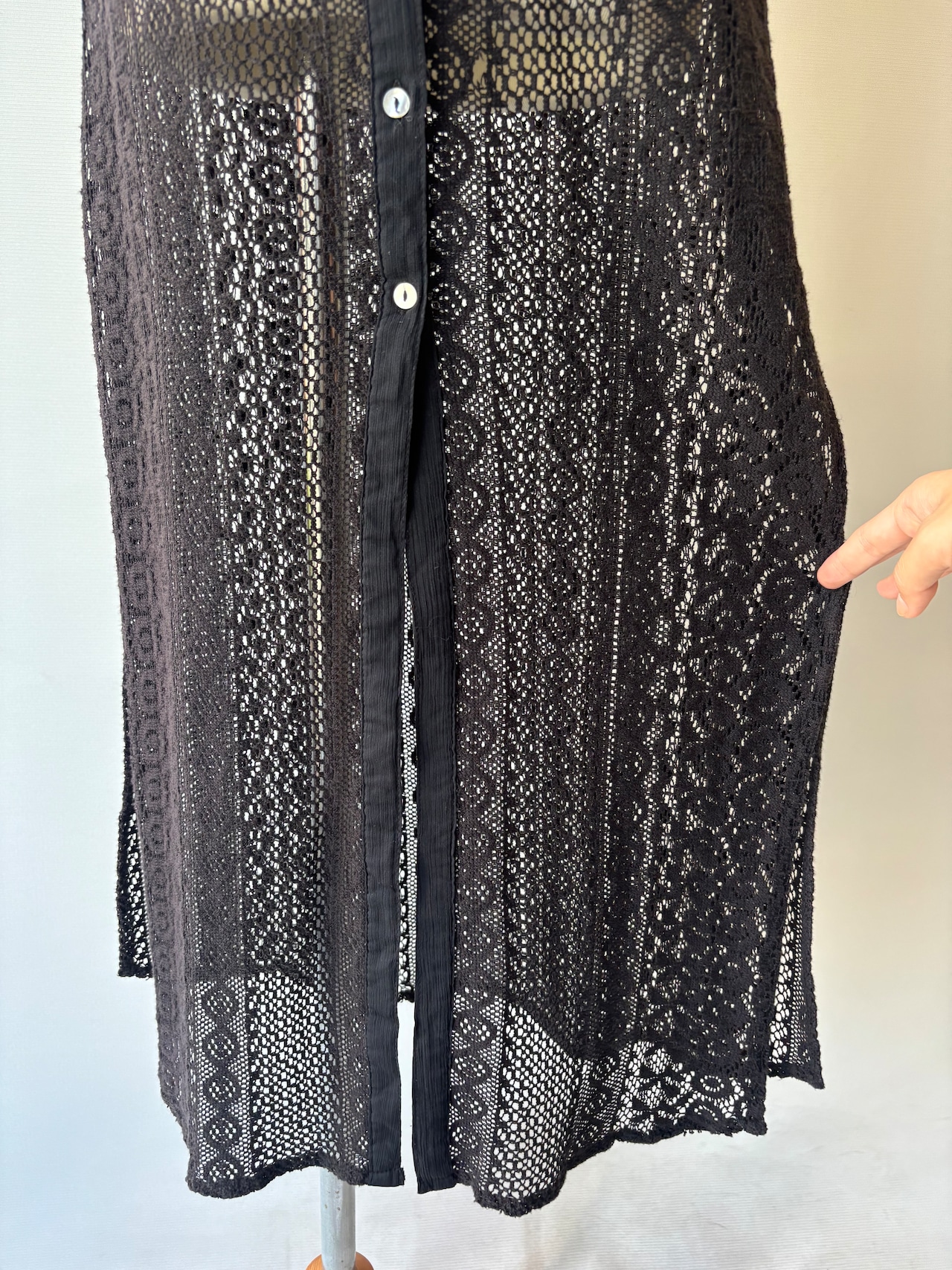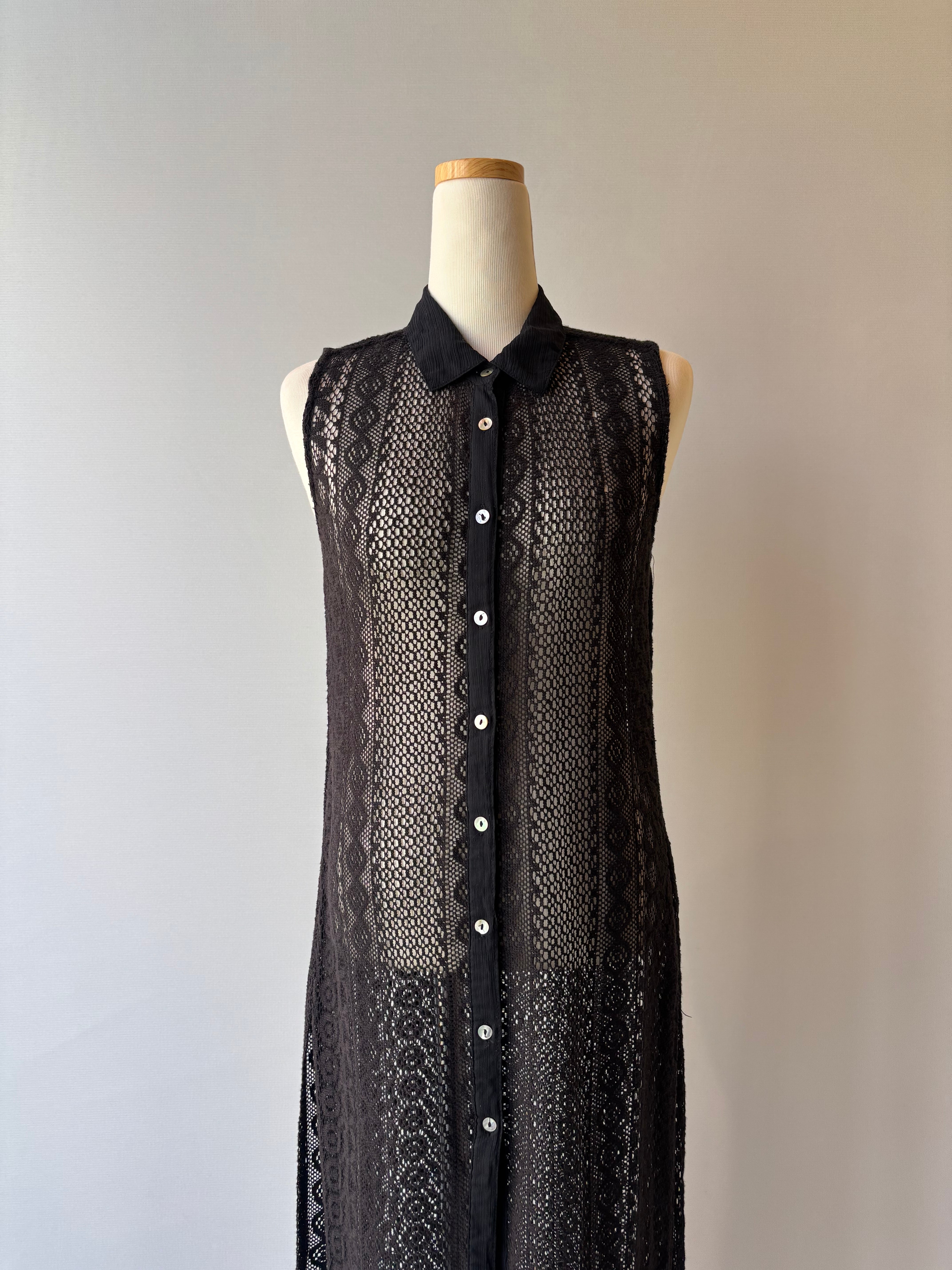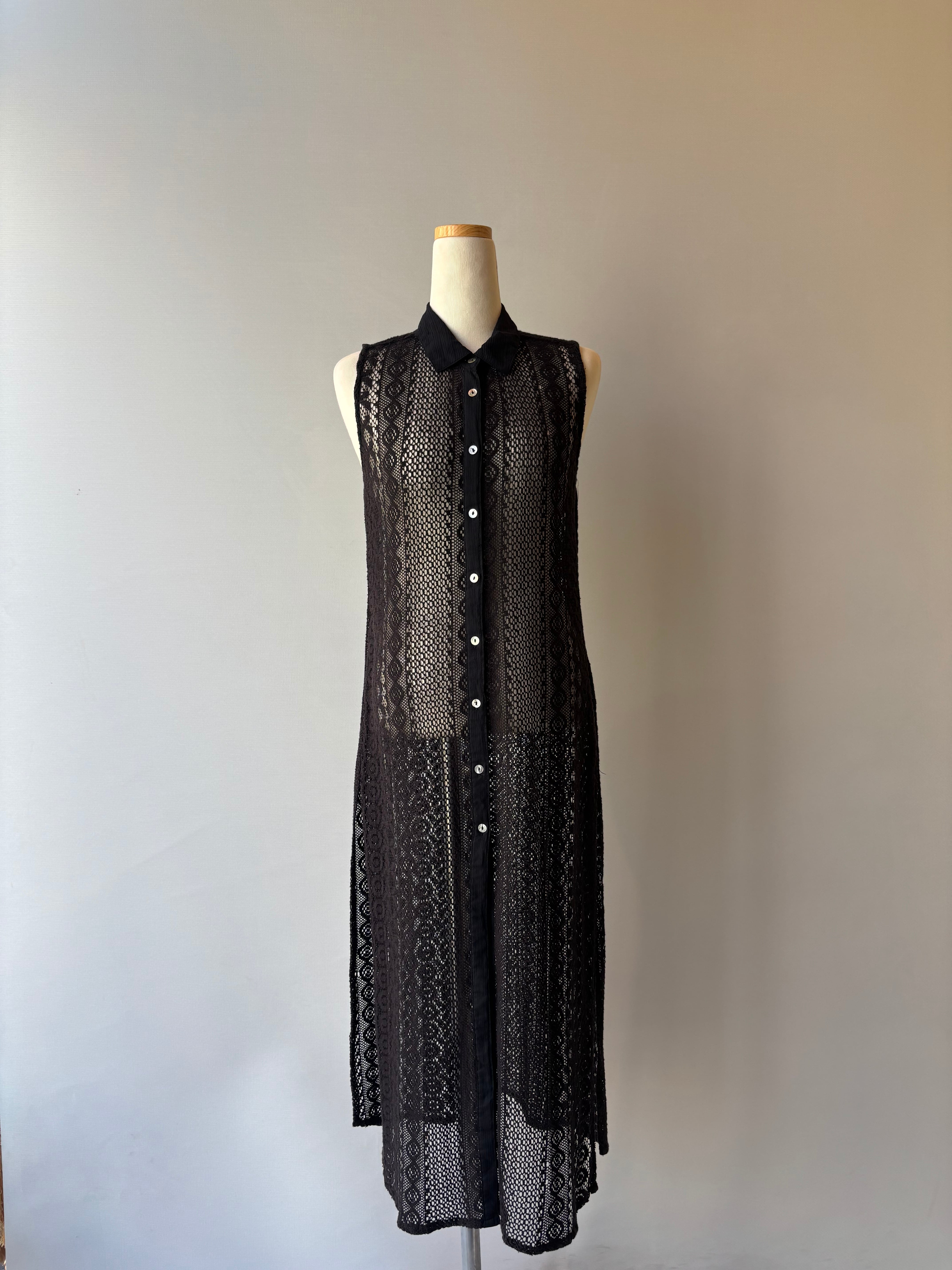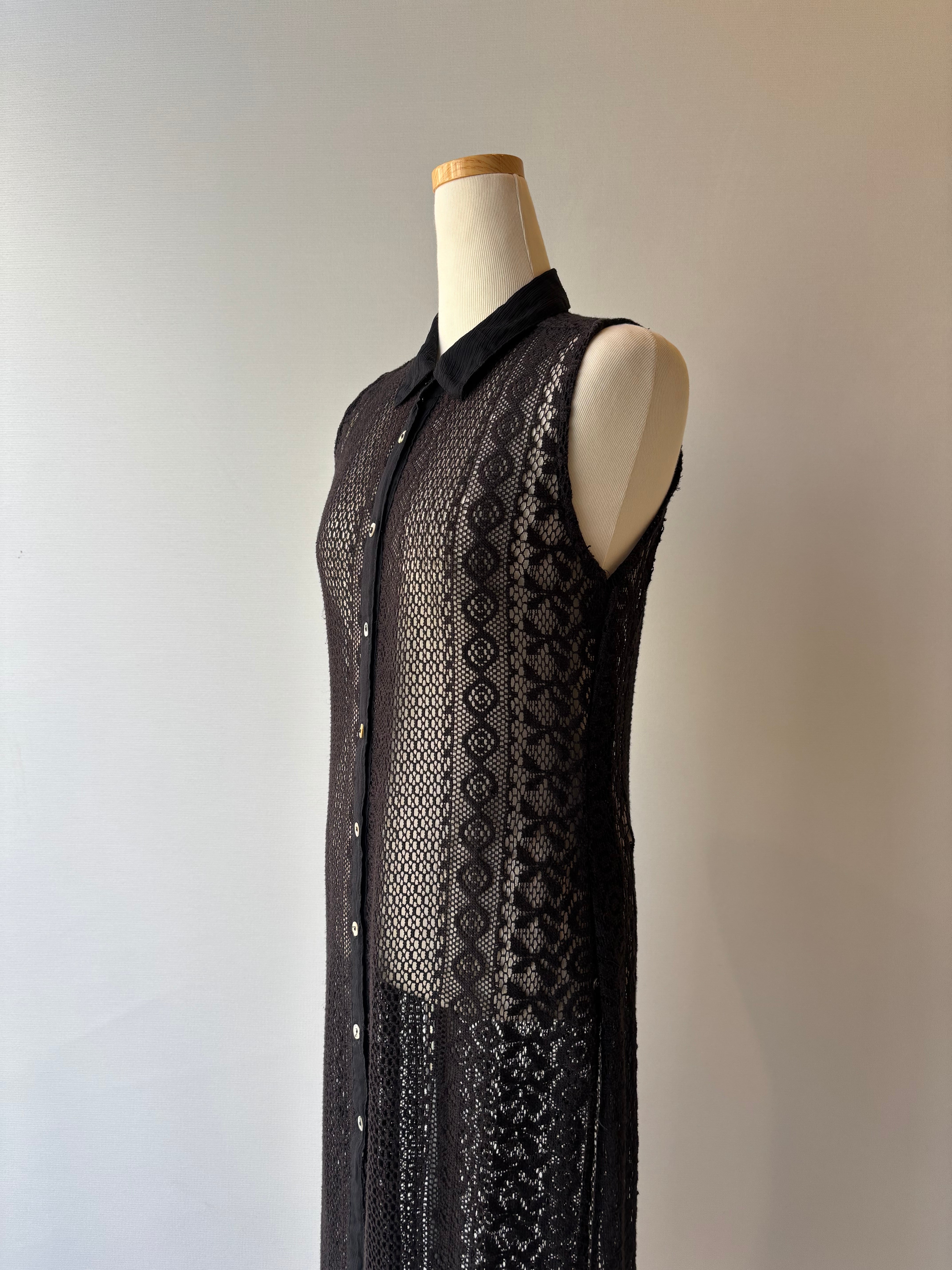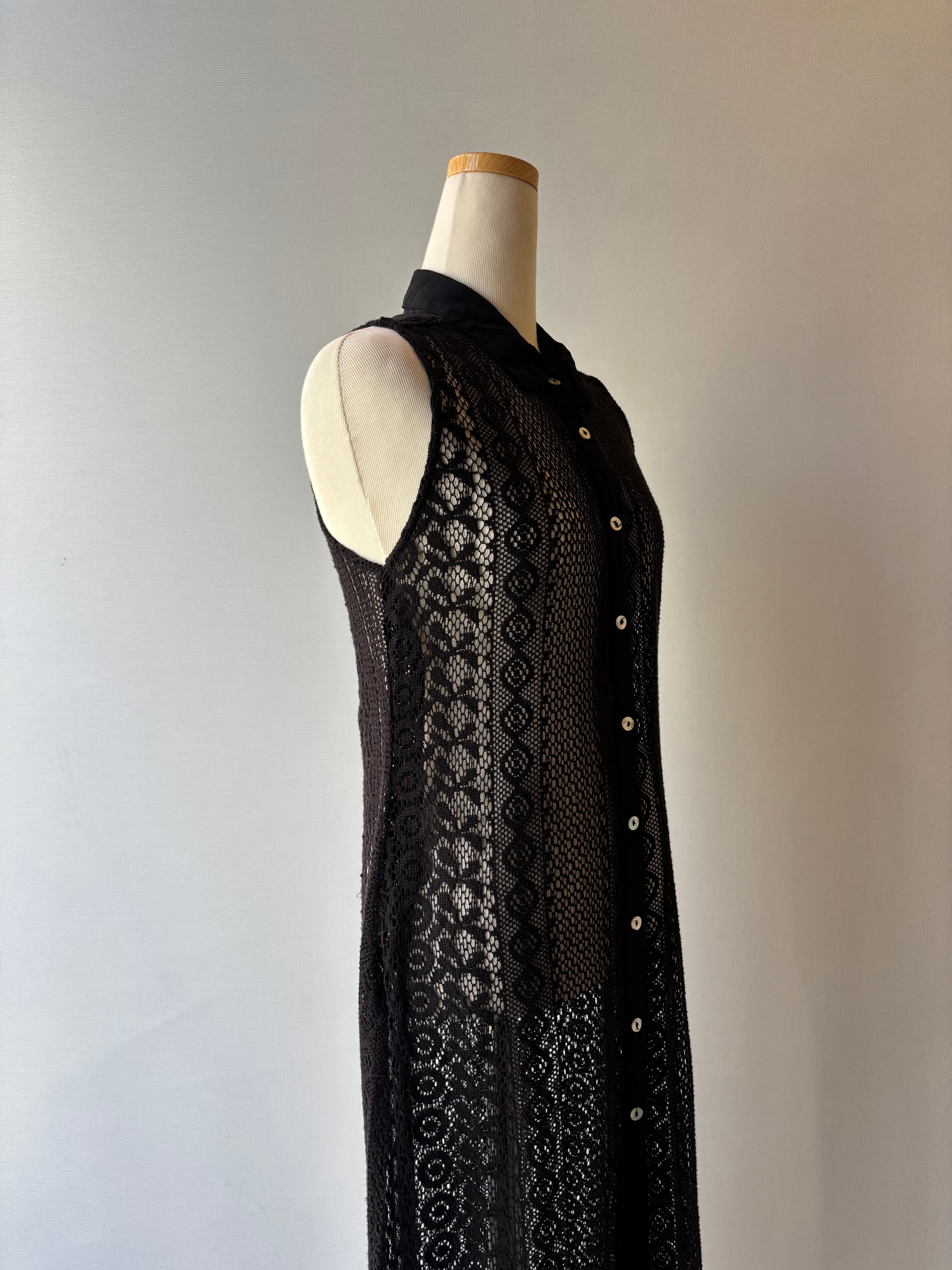 黒のレースで仕立てられたレイヤードワンピース。