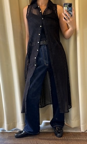 sheer lace sleeveless layered one-piece