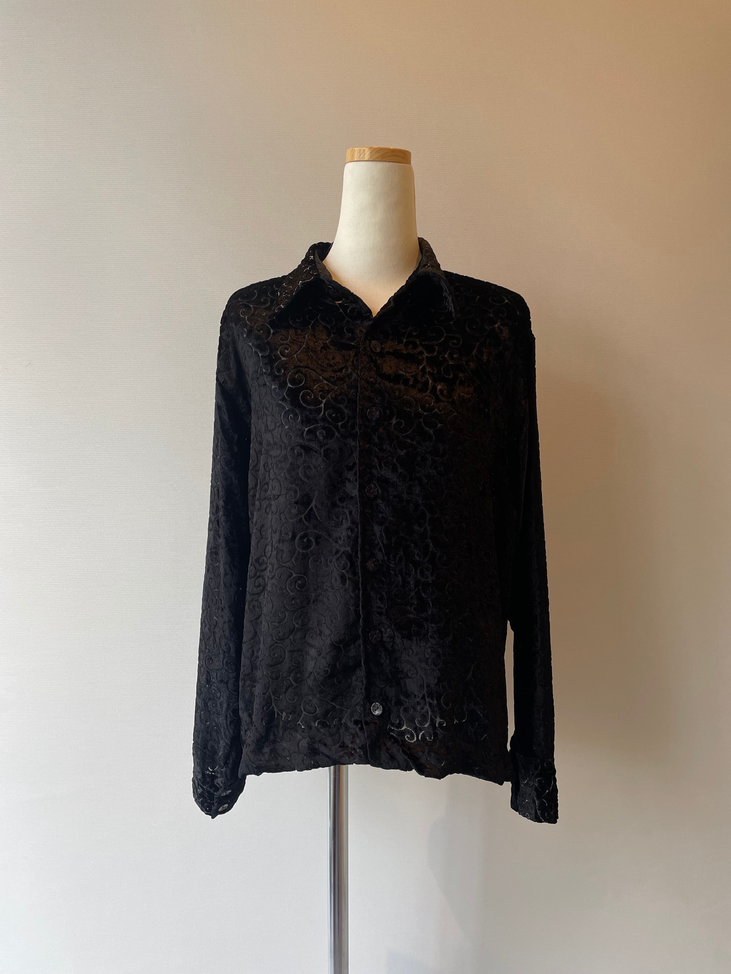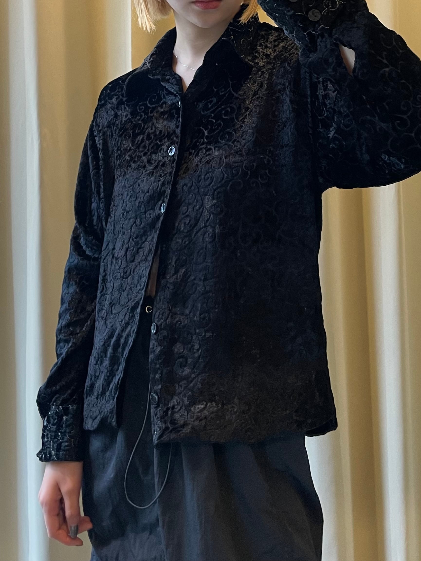模様に沿ってシースルーが施され、ブラックながらも抜け感のある雰囲気。