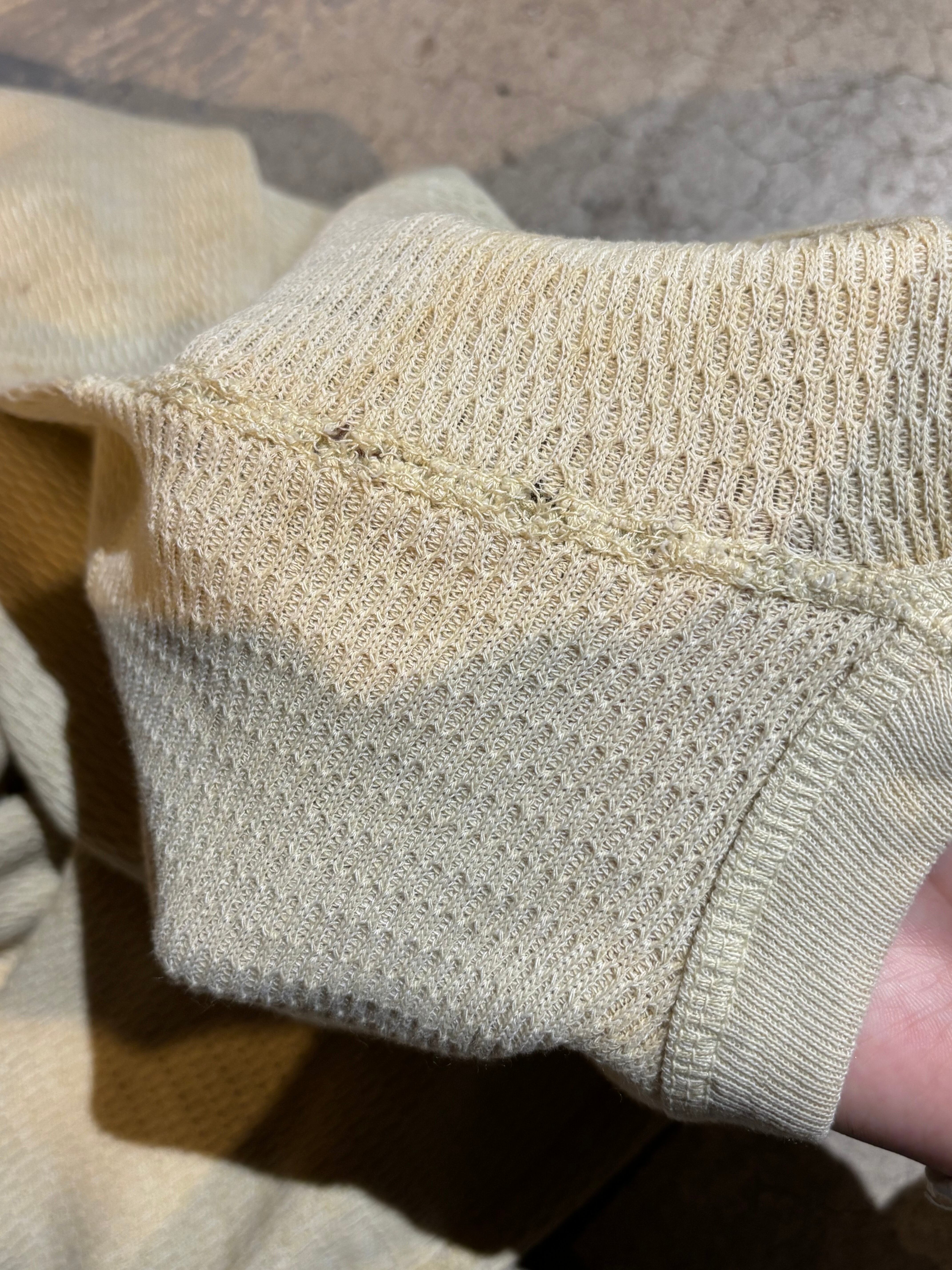 *ヴィンテージの為、素材特有の使用感、細かい汚れや傷等ある場合がございますのでご了承下さいませ。(※両脇、袖口数カ所穴あり)