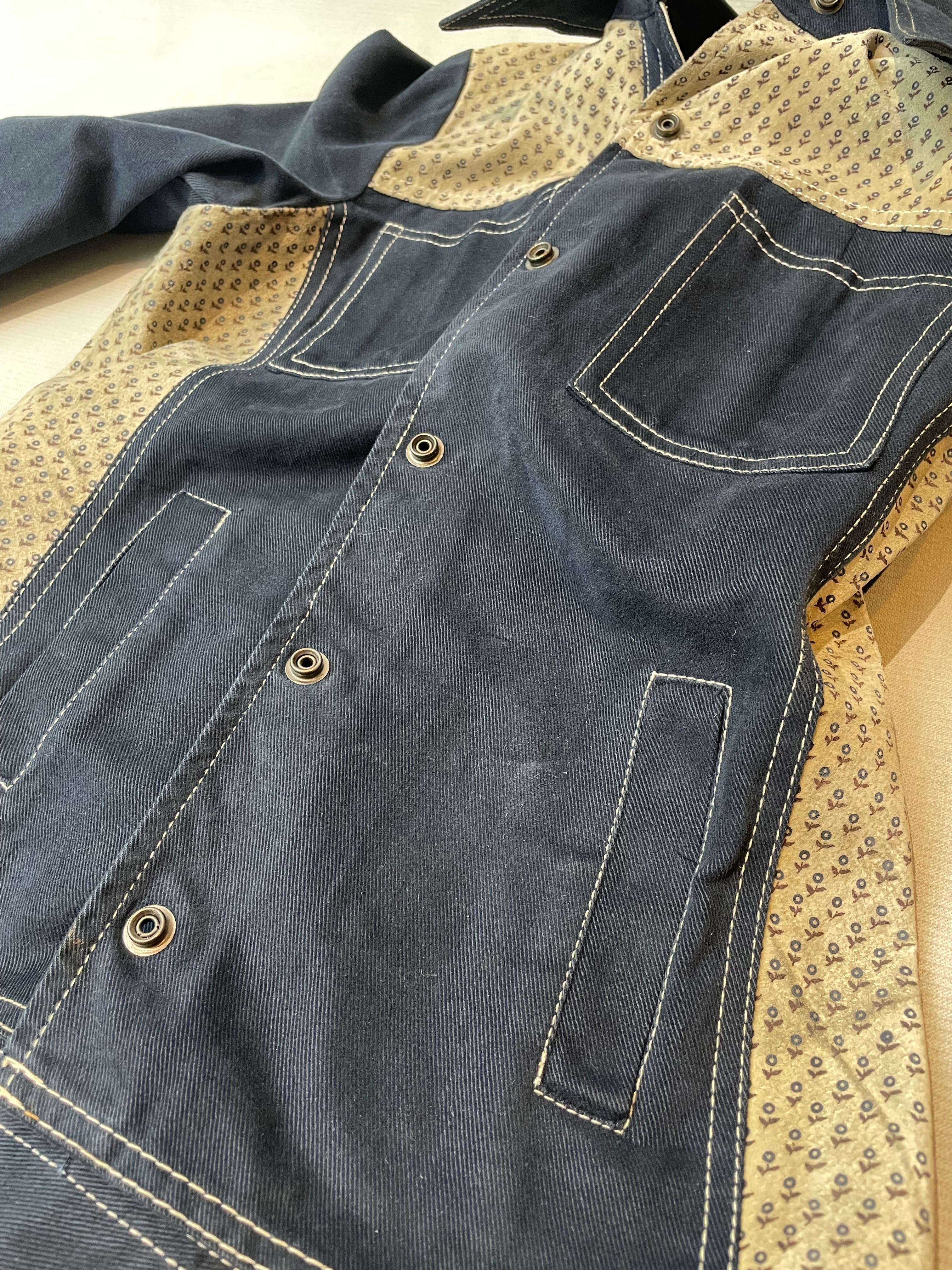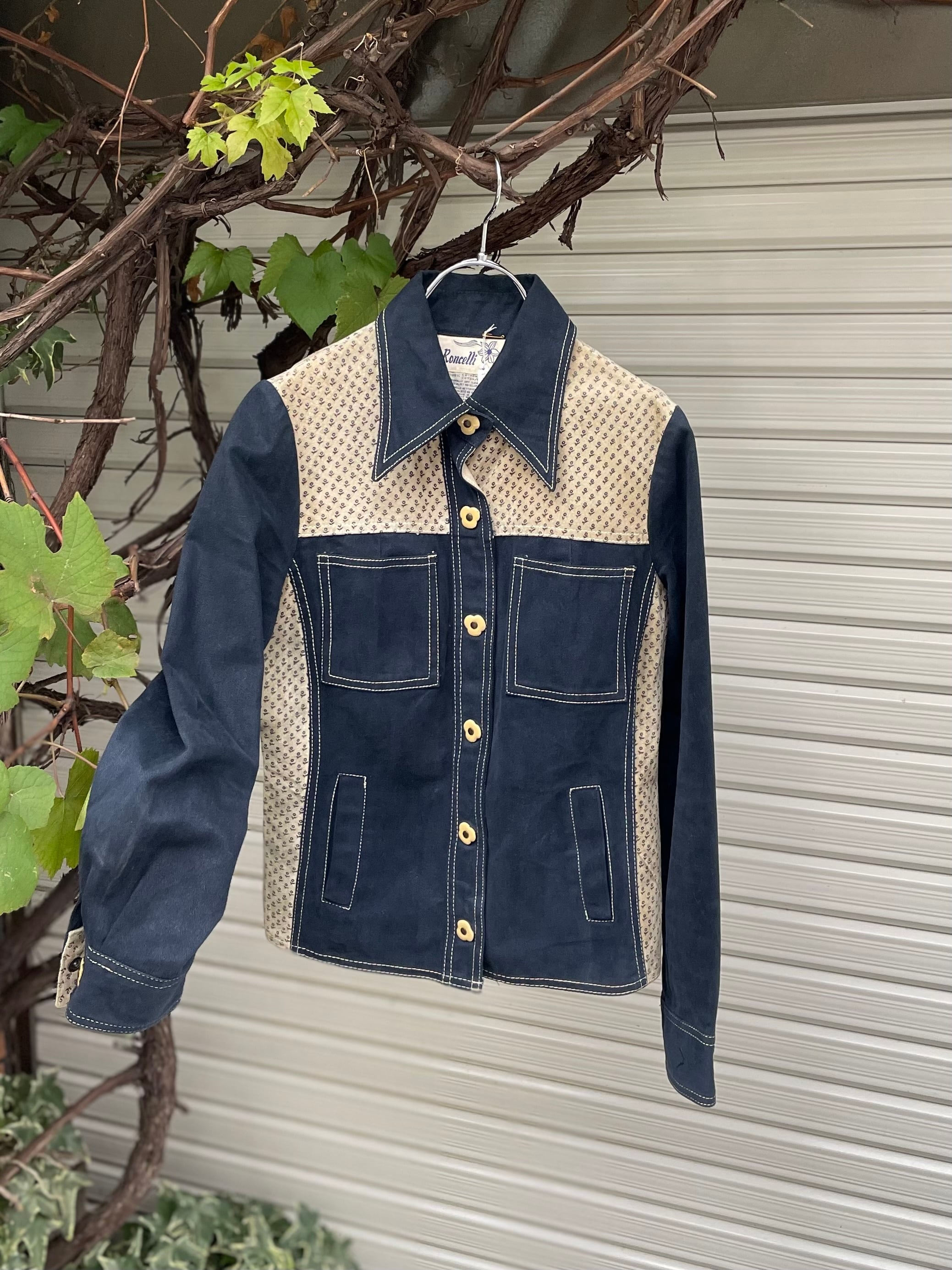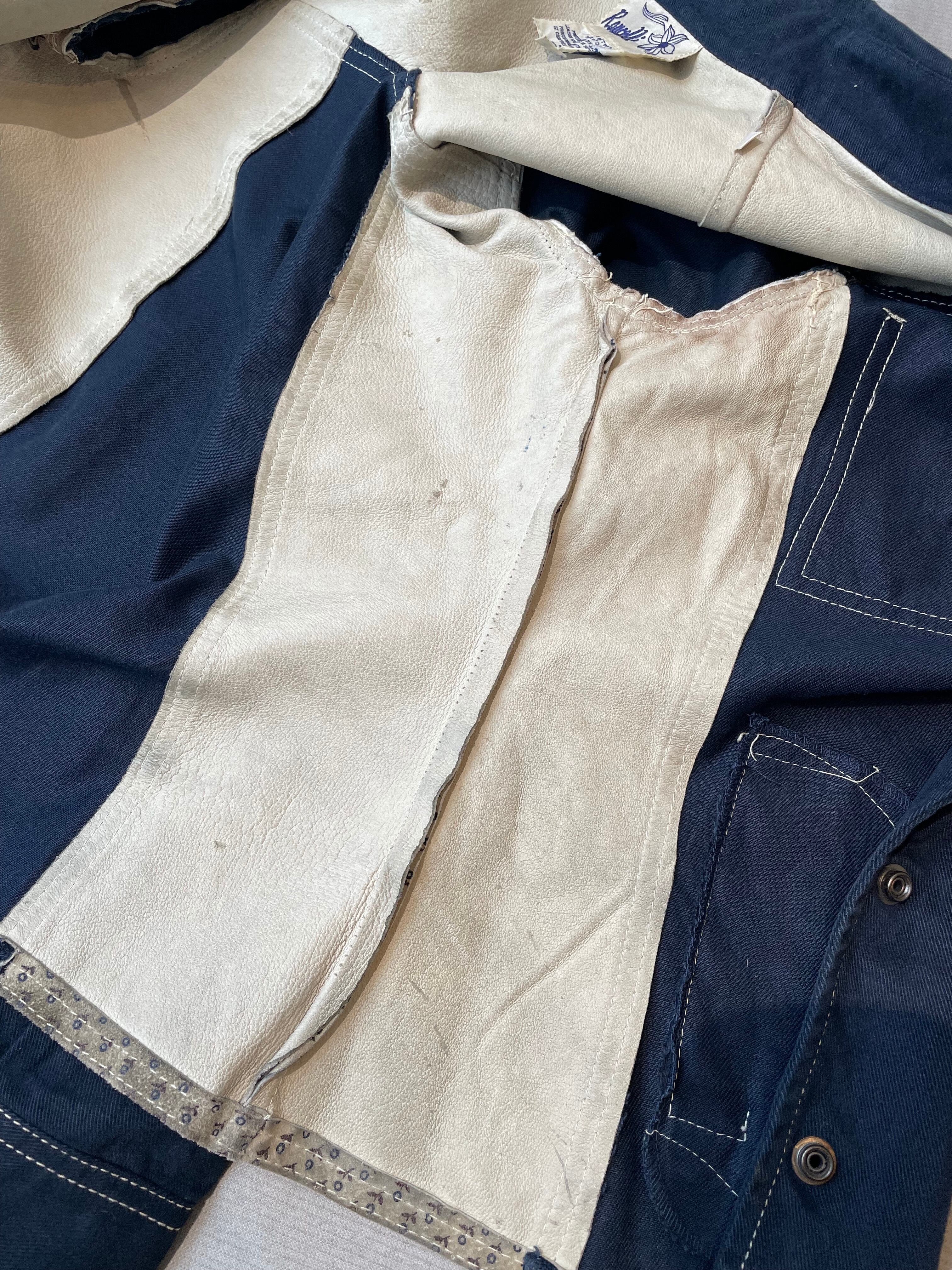 70s vintage cotton & leather shirt