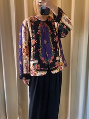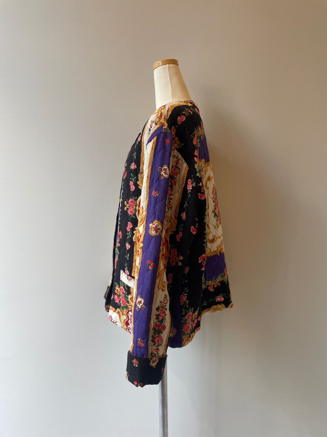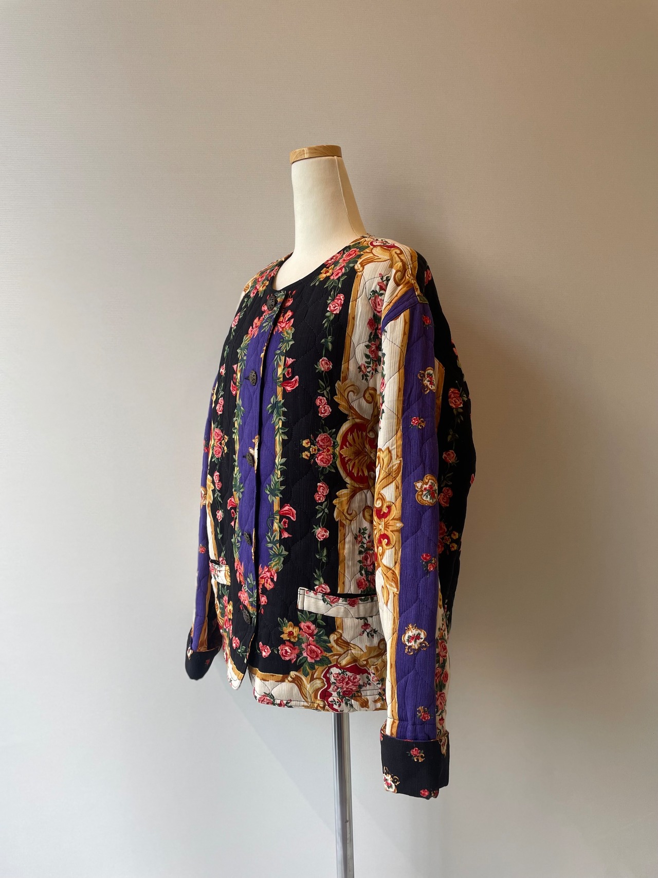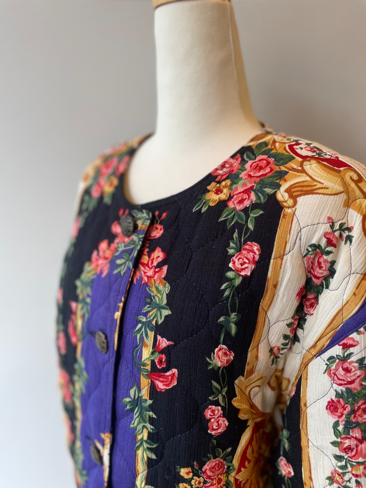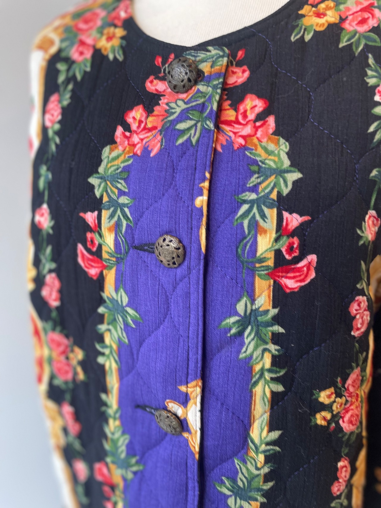80s Carole Little flower quilting collarless jacket