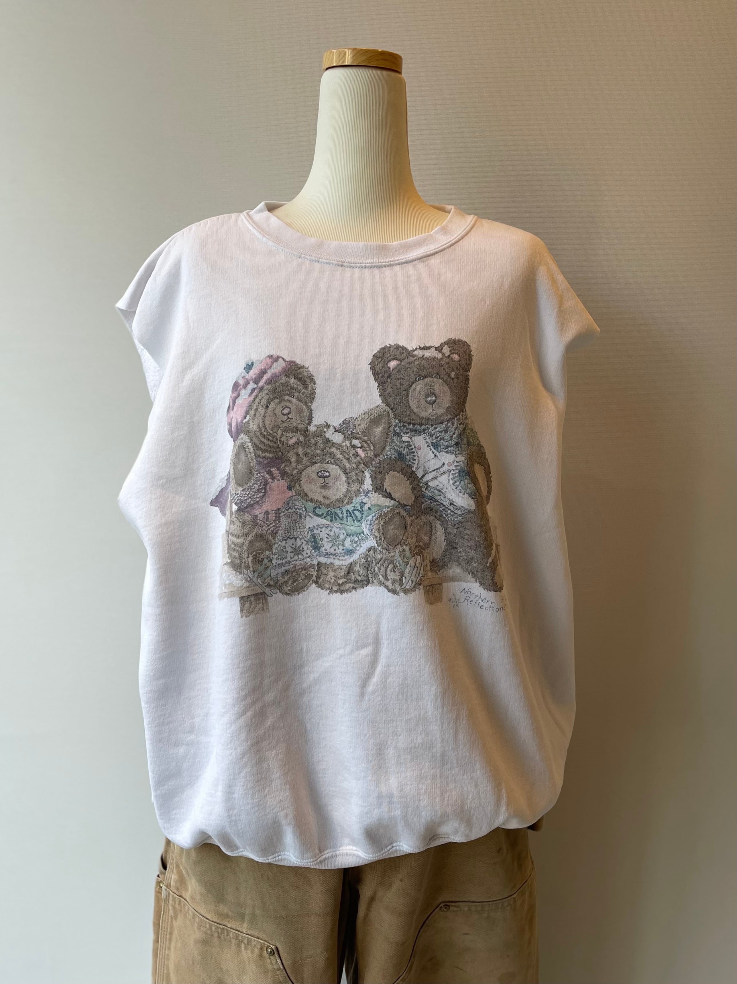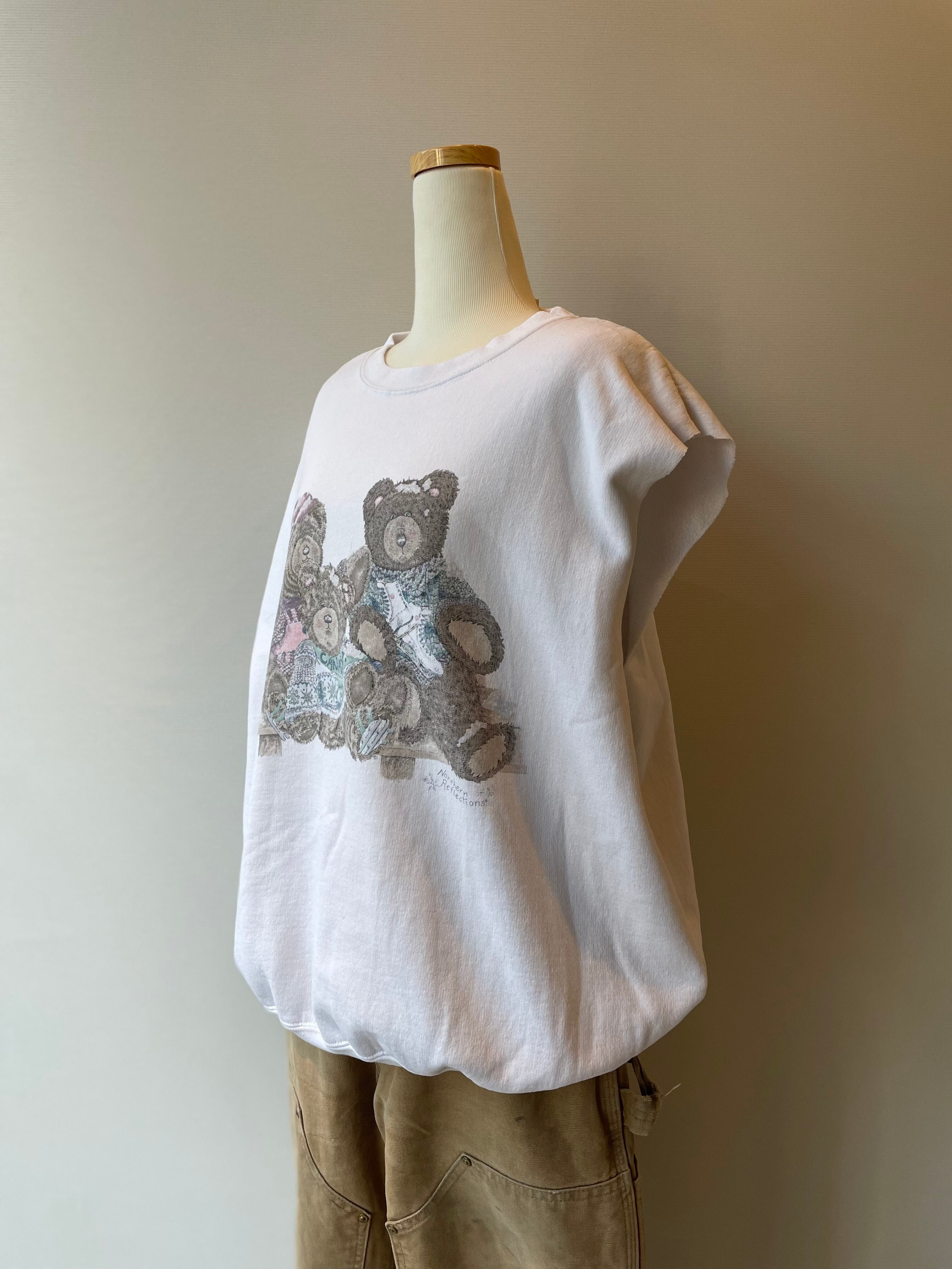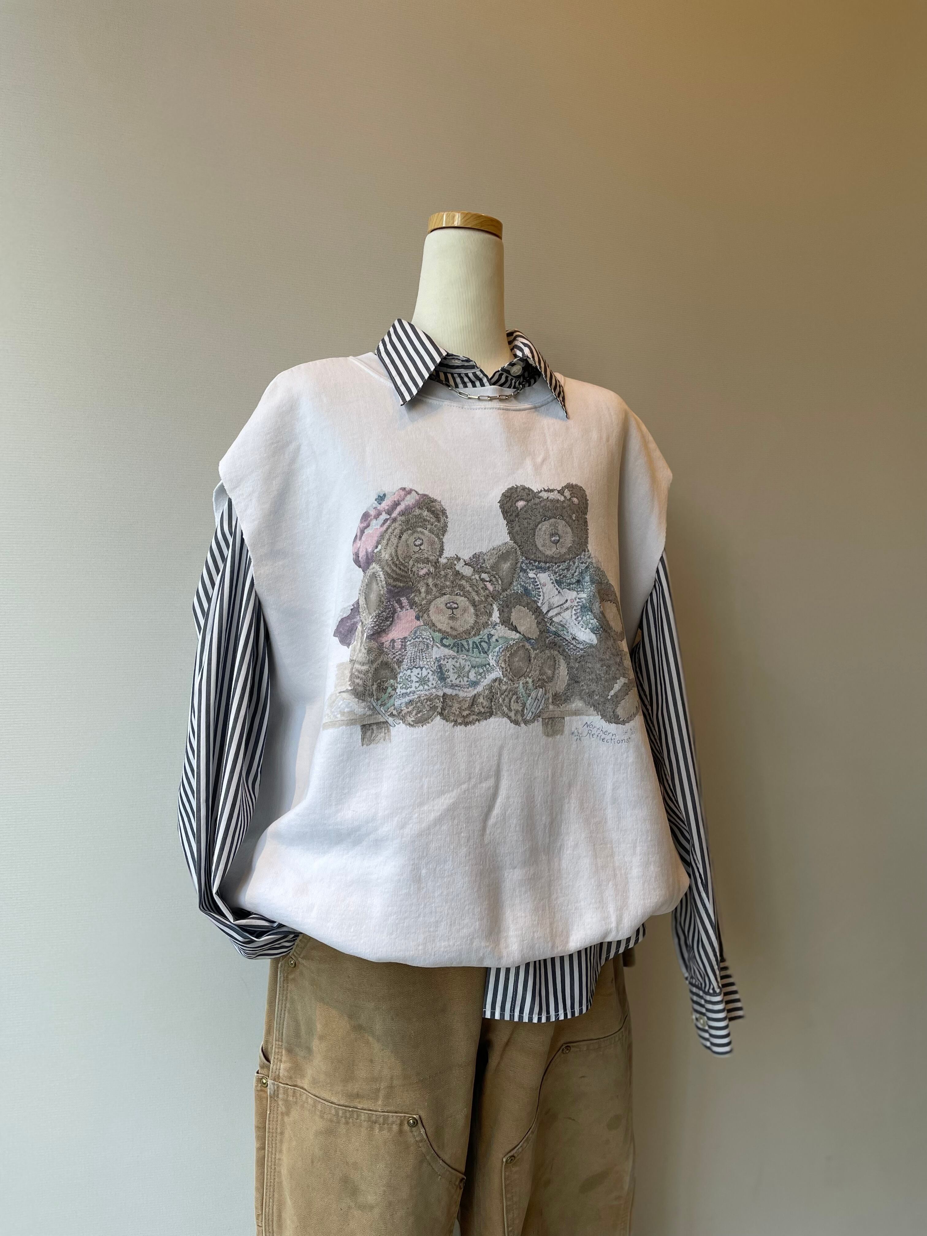 袖はカットオフされておりノースリーブとしても、レイヤードでも幅広くお楽しみ頂けるかと。