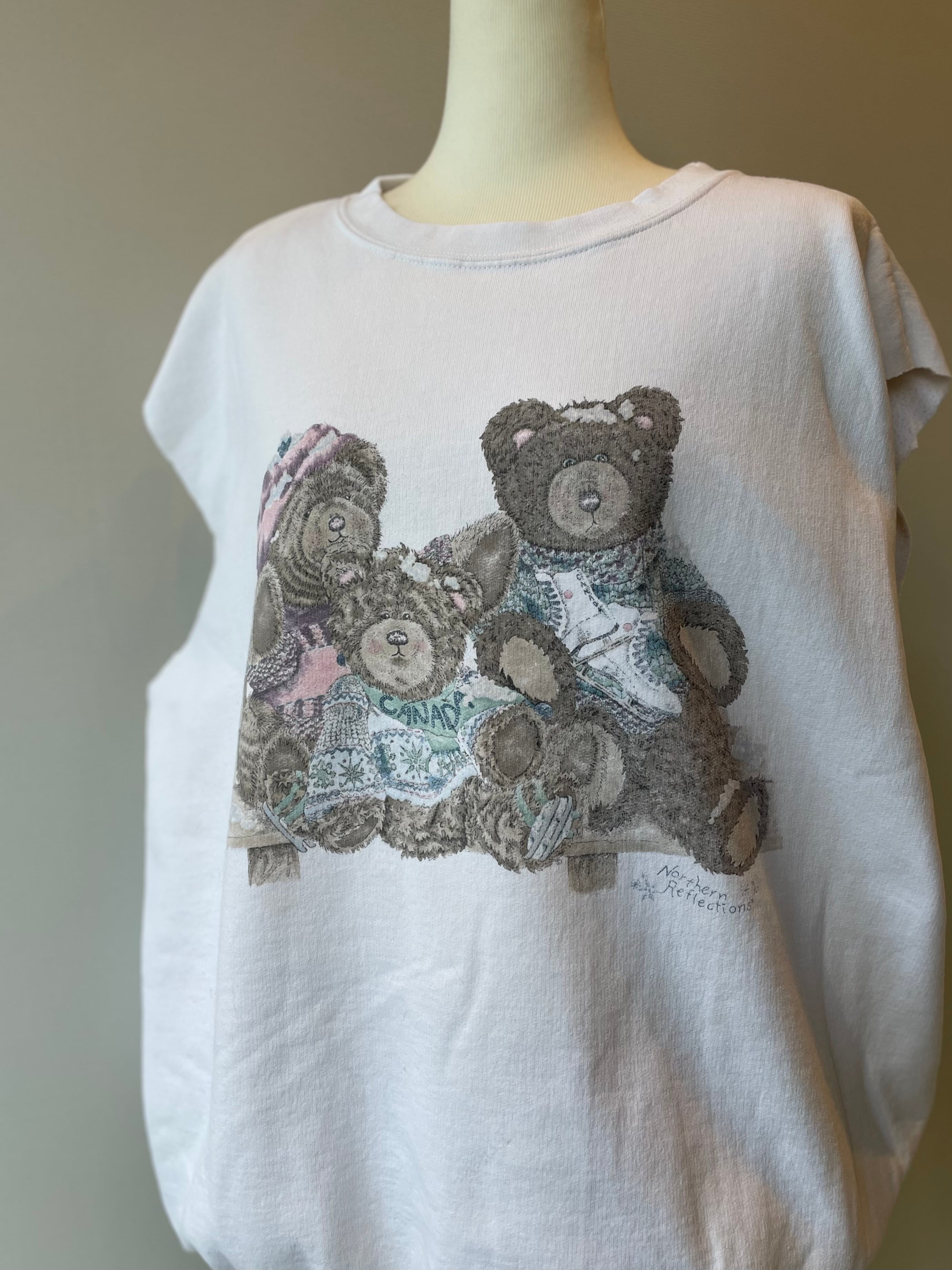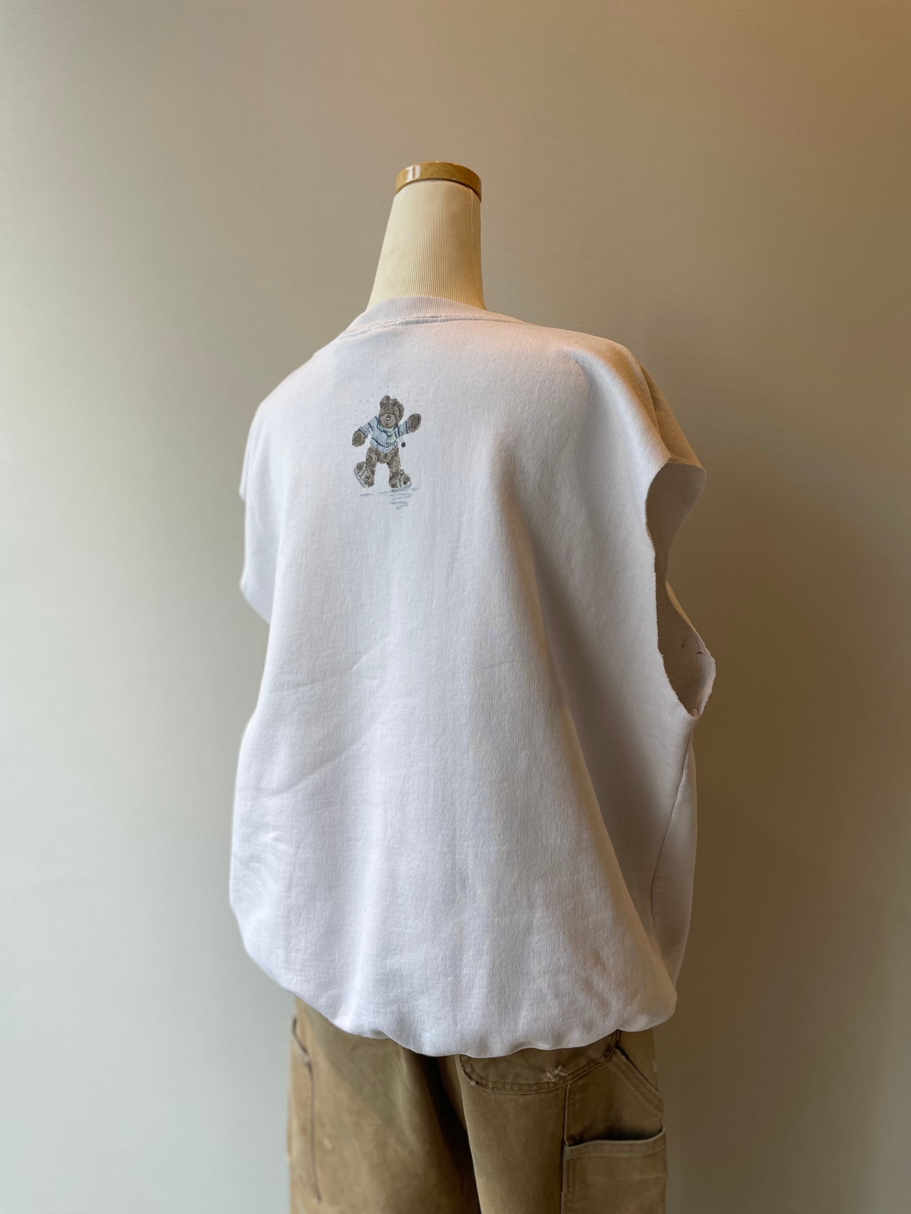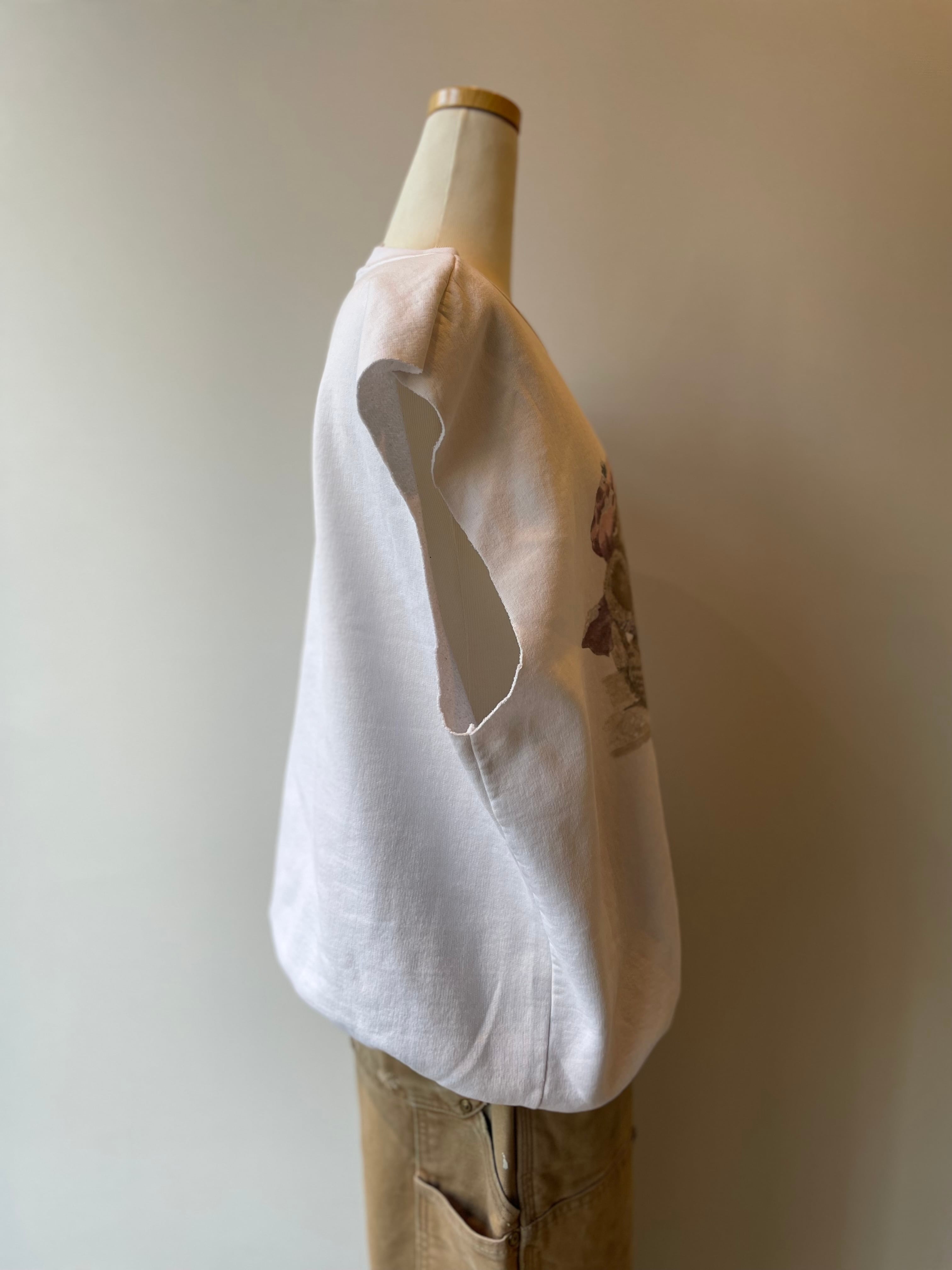 袖はカットオフされておりノースリーブとしても、レイヤードでも幅広くお楽しみ頂けるかと。