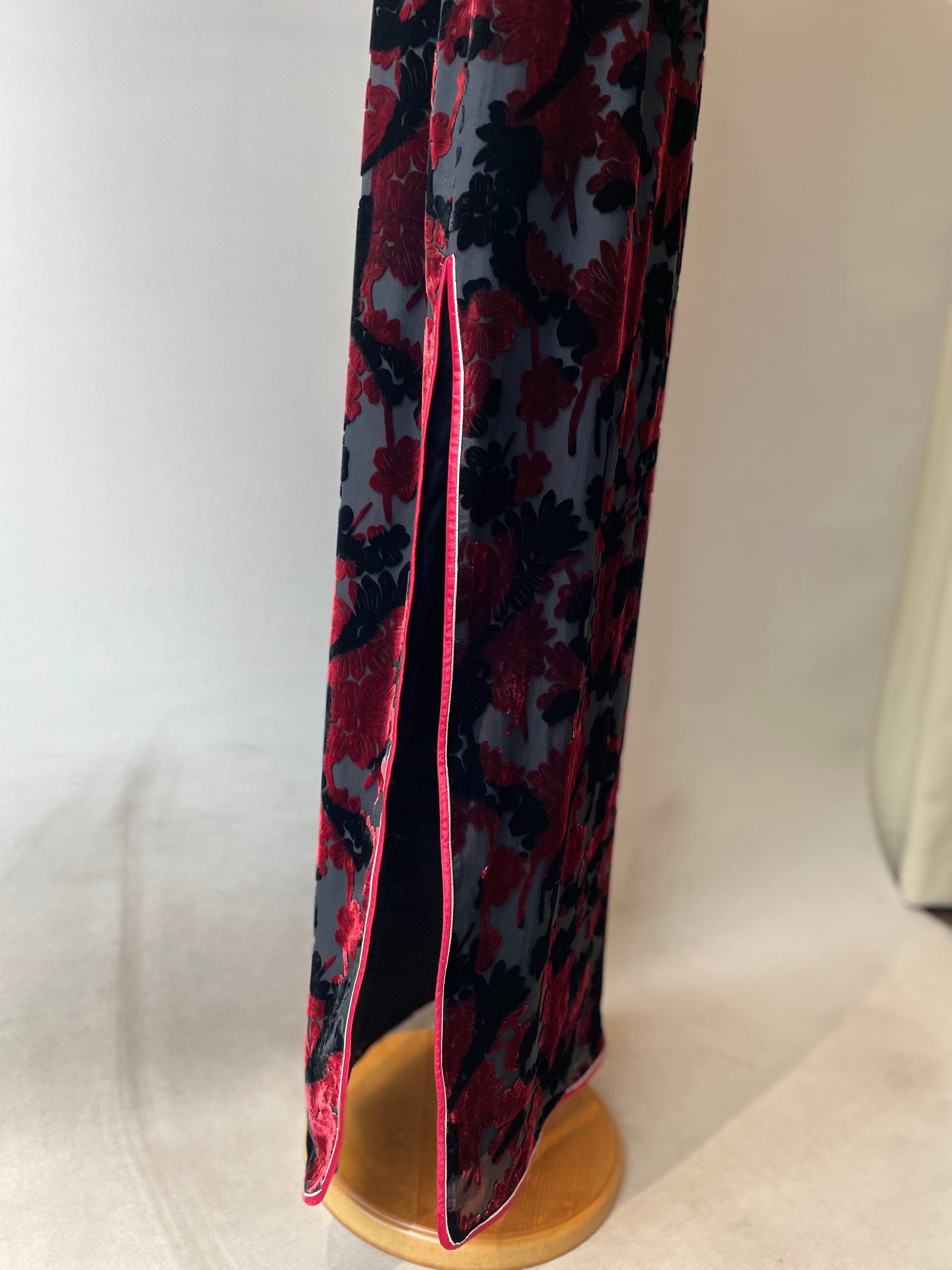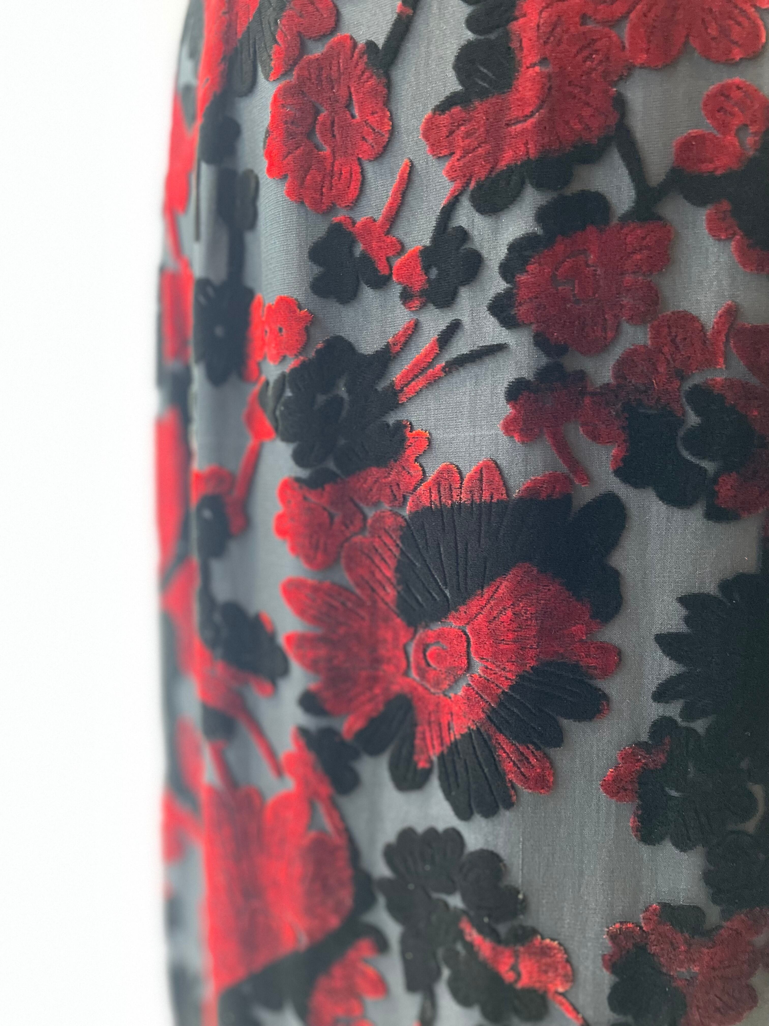 とろみのある生地にベロアで柄が描かれた品のある一枚。