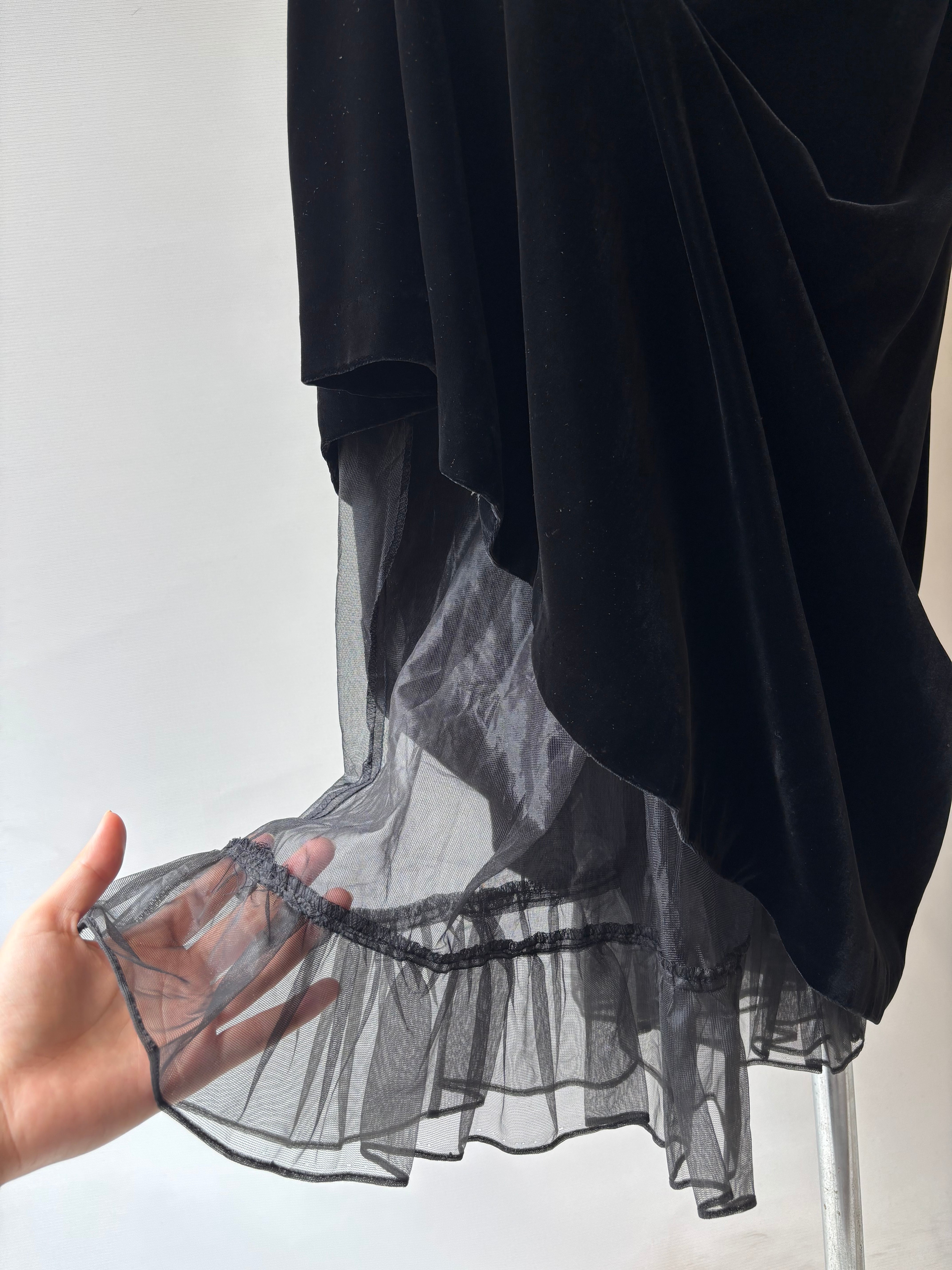 90s velour gathered flare skirt
