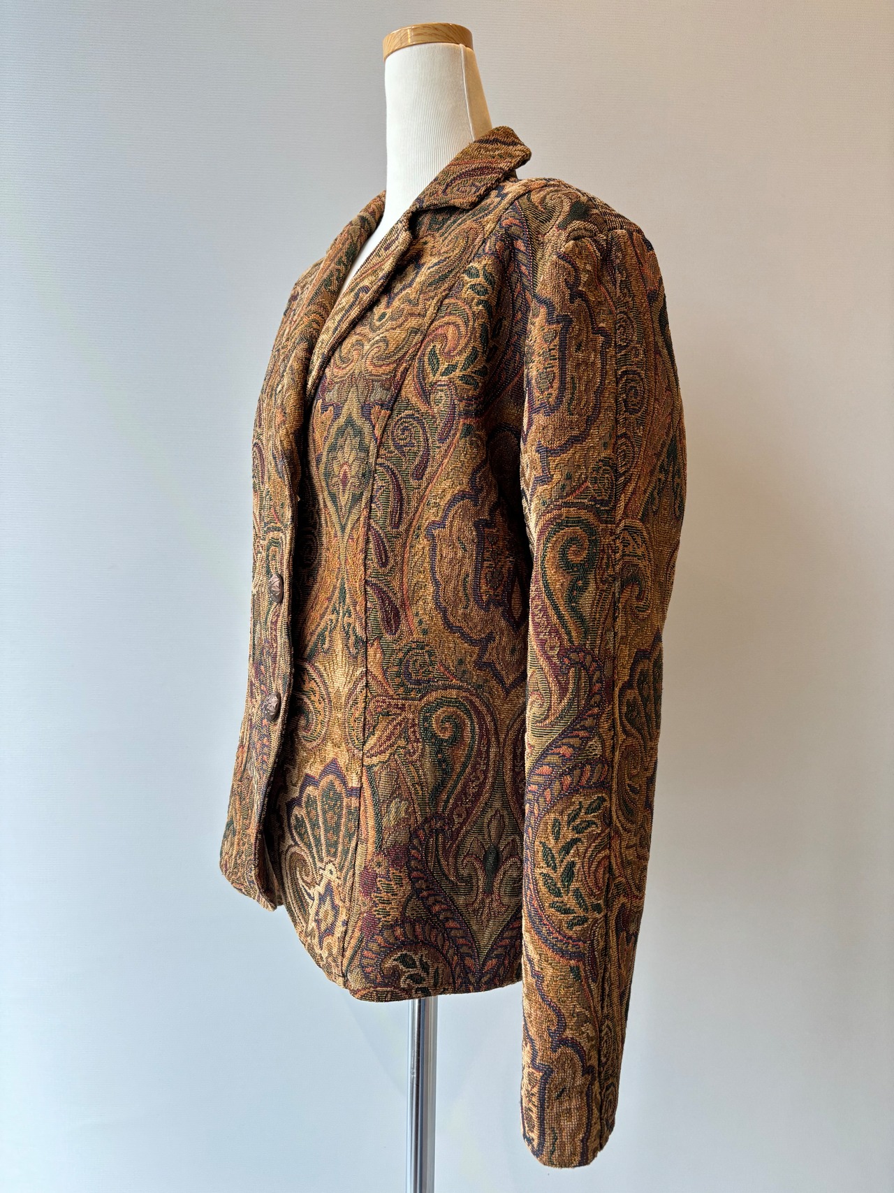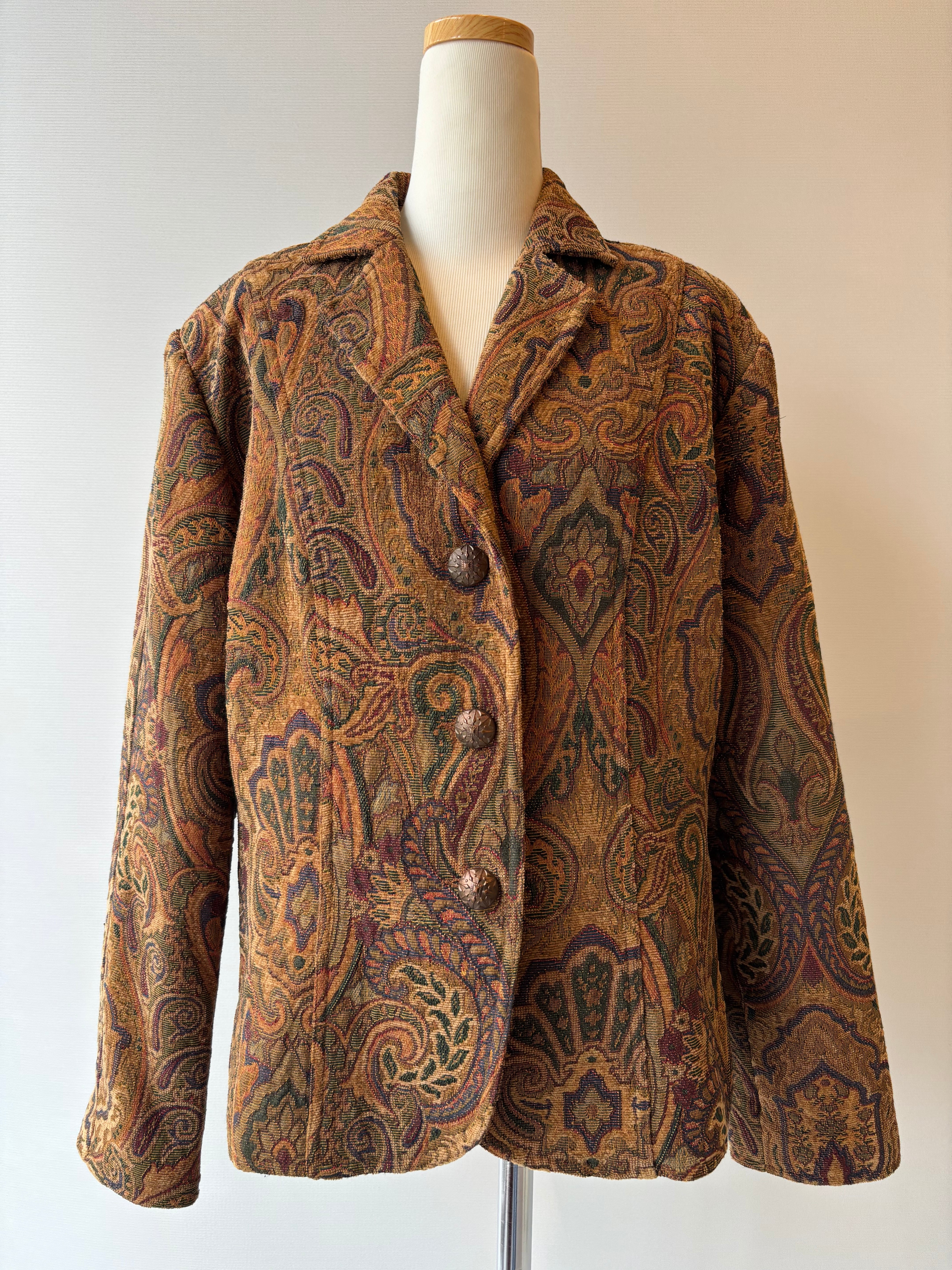 ボタンにも細かい模様が施されており、クラシカルで上品な一着。