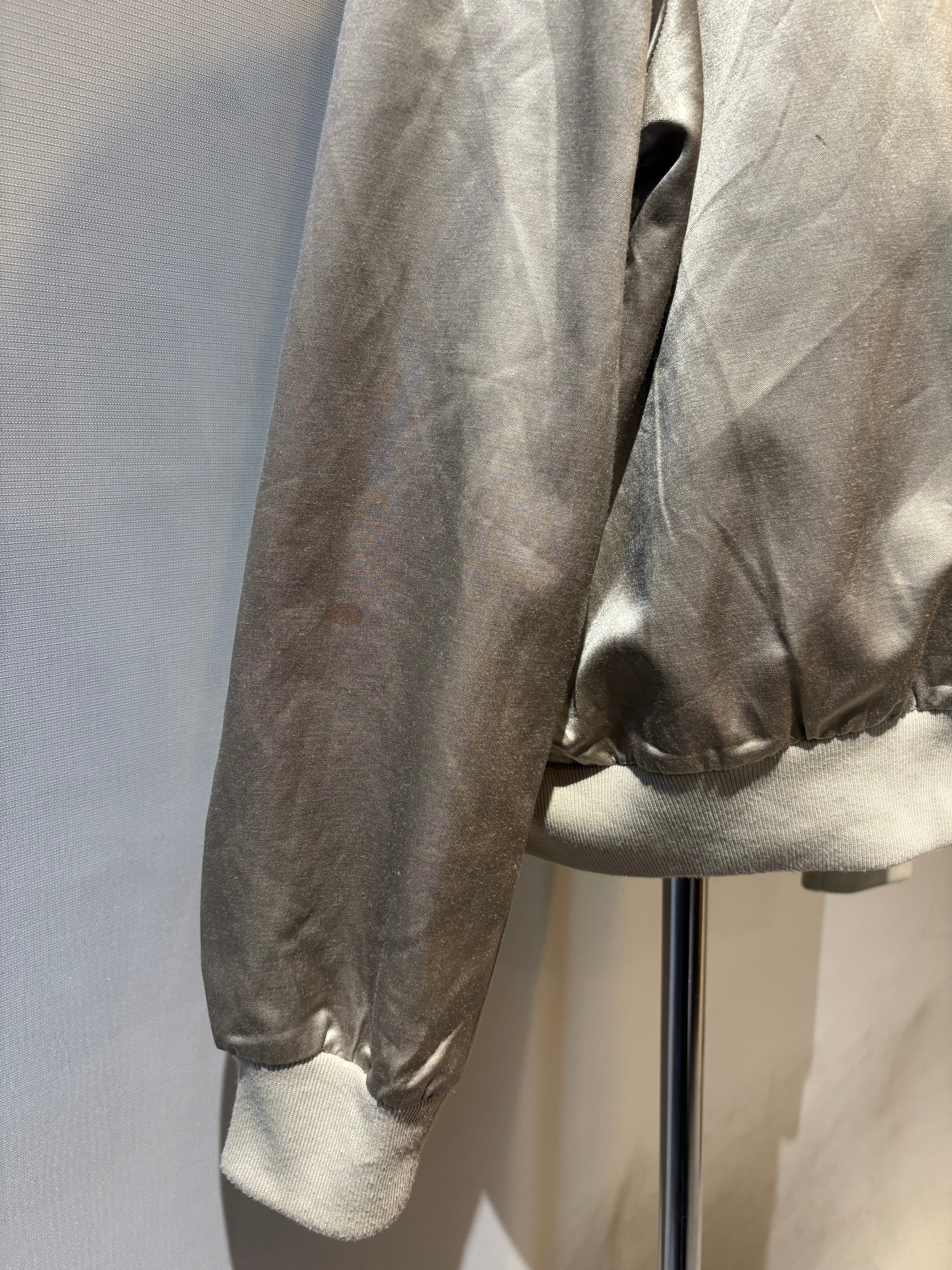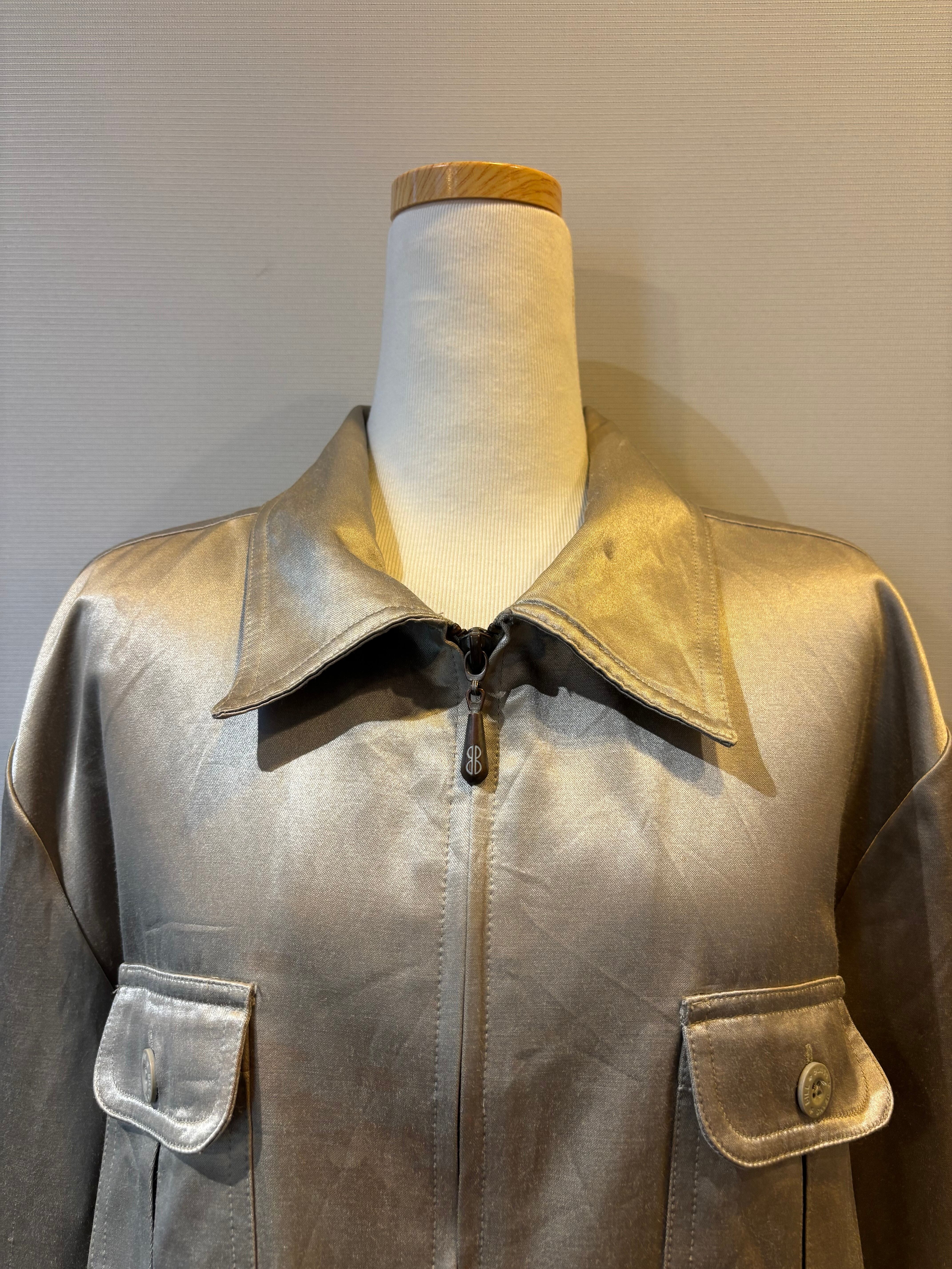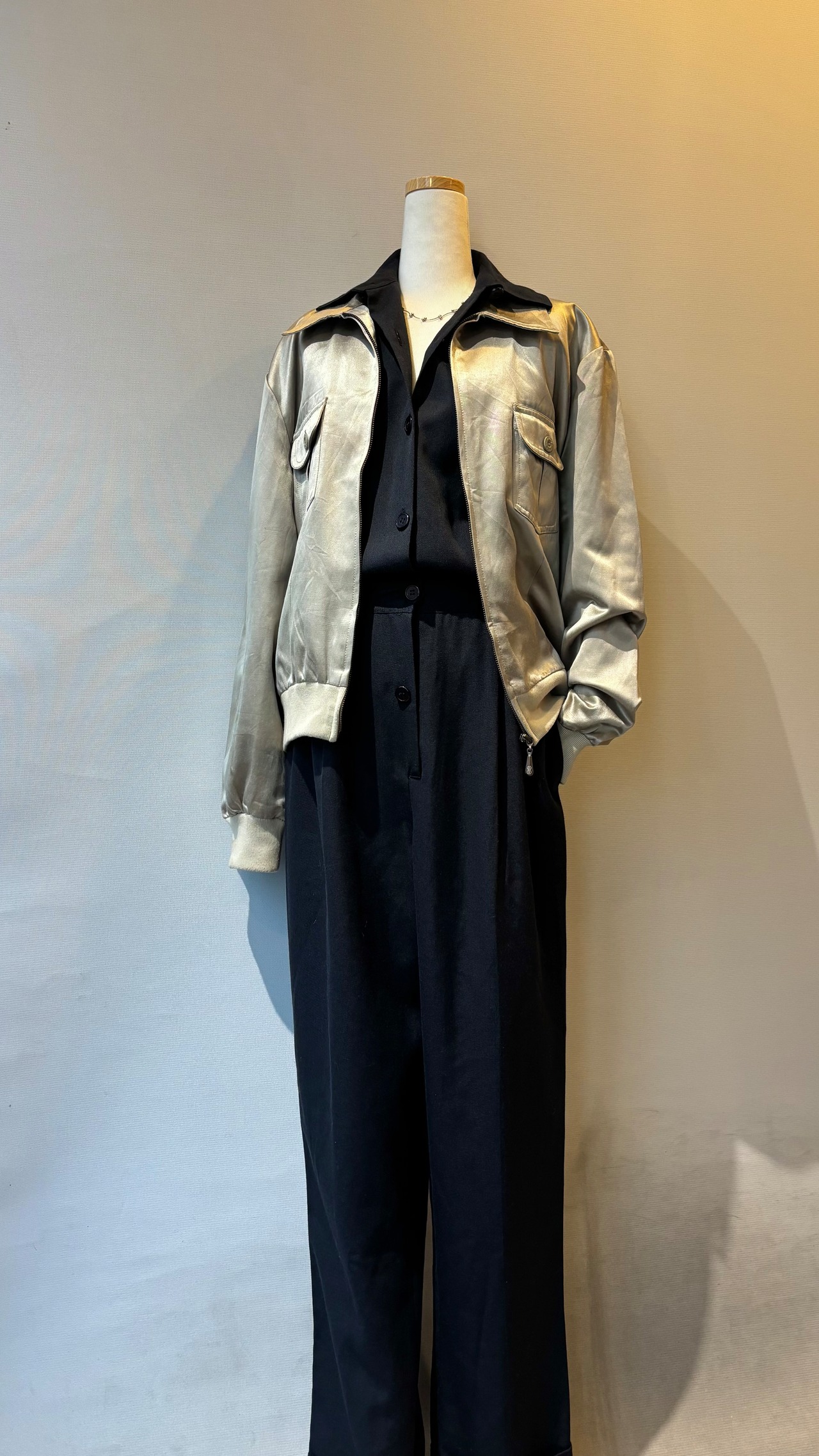 上品な光沢が魅力のサテン調ジップブルゾン。