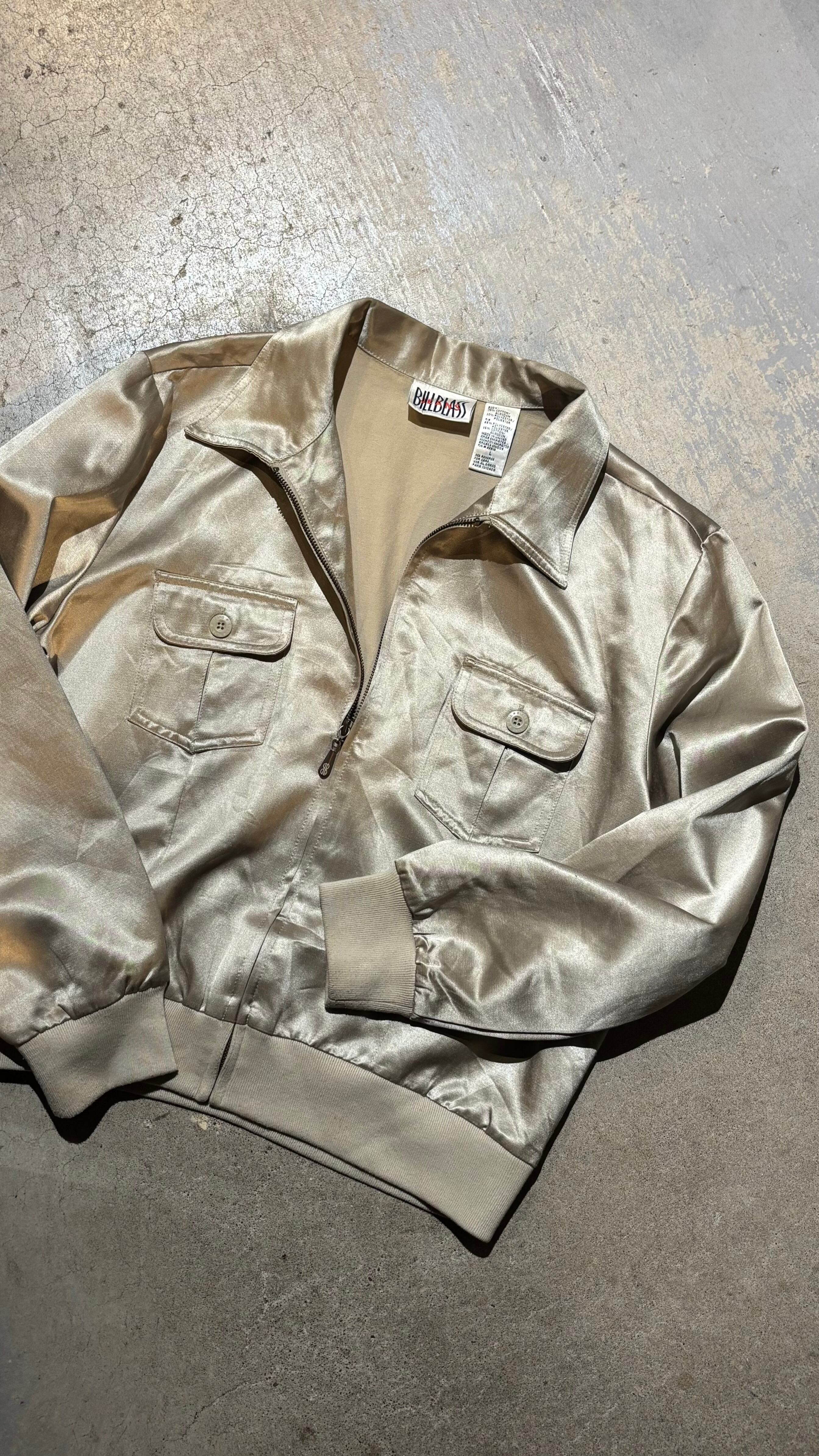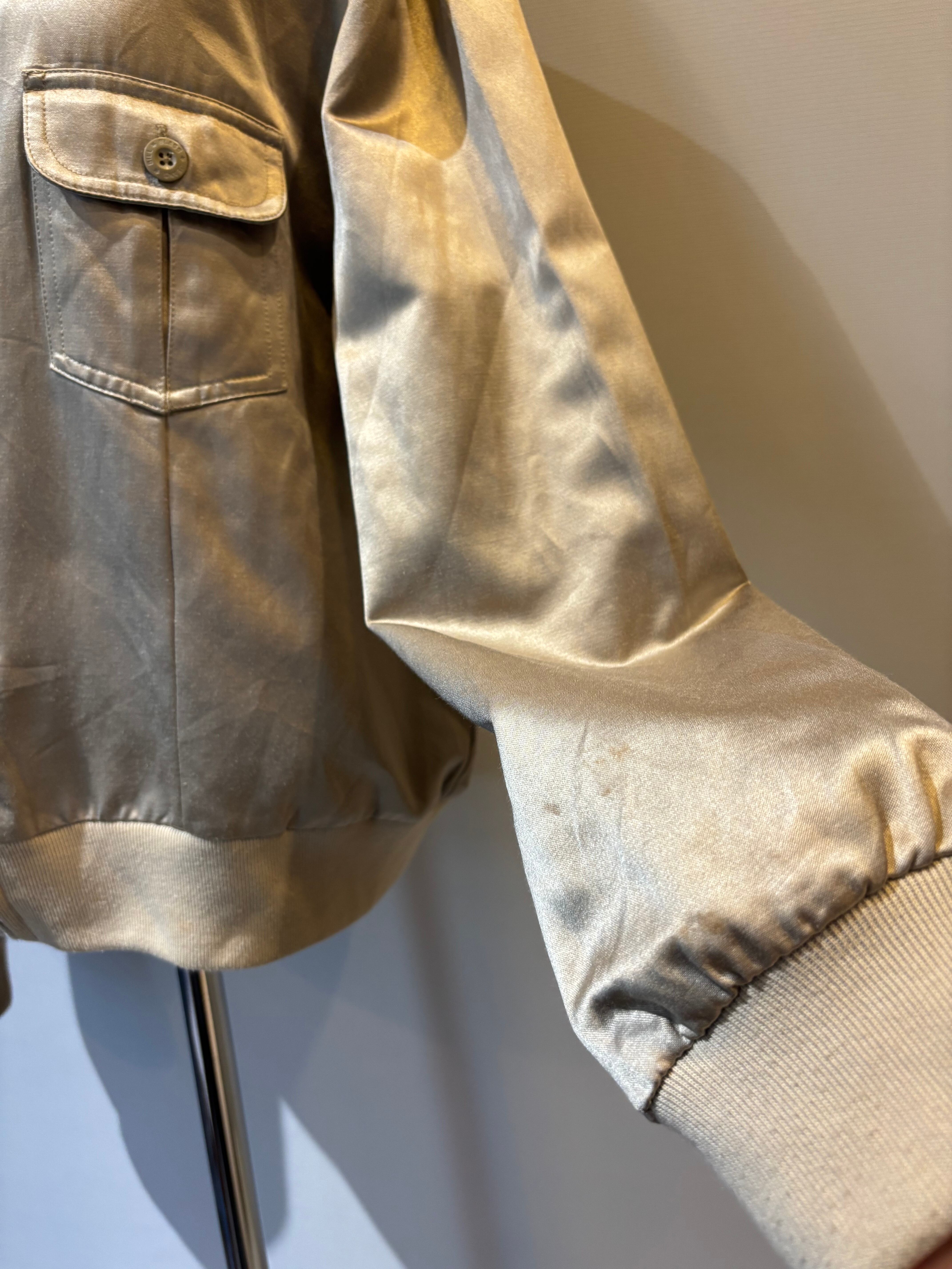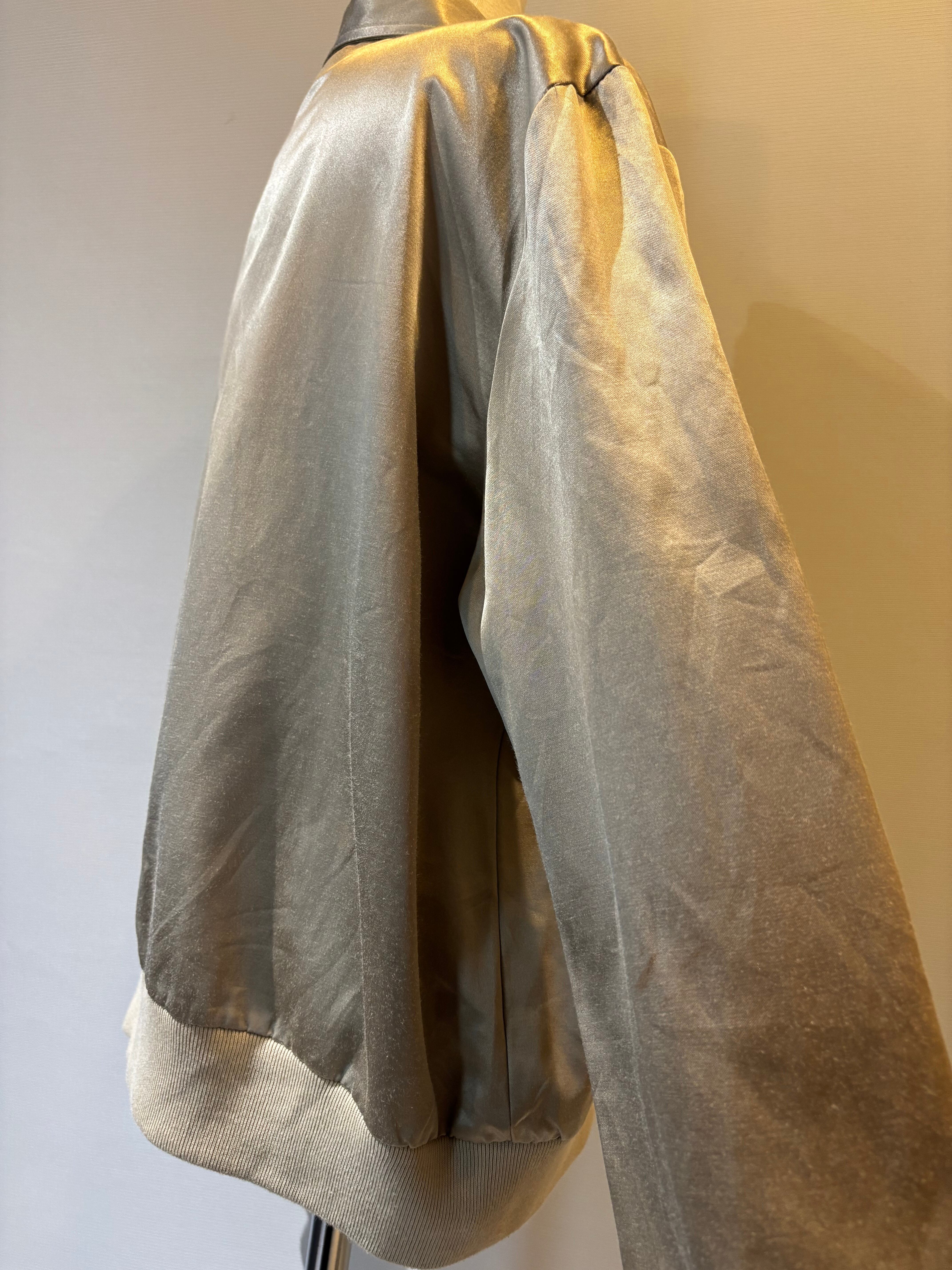 上品な光沢が魅力のサテン調ジップブルゾン。