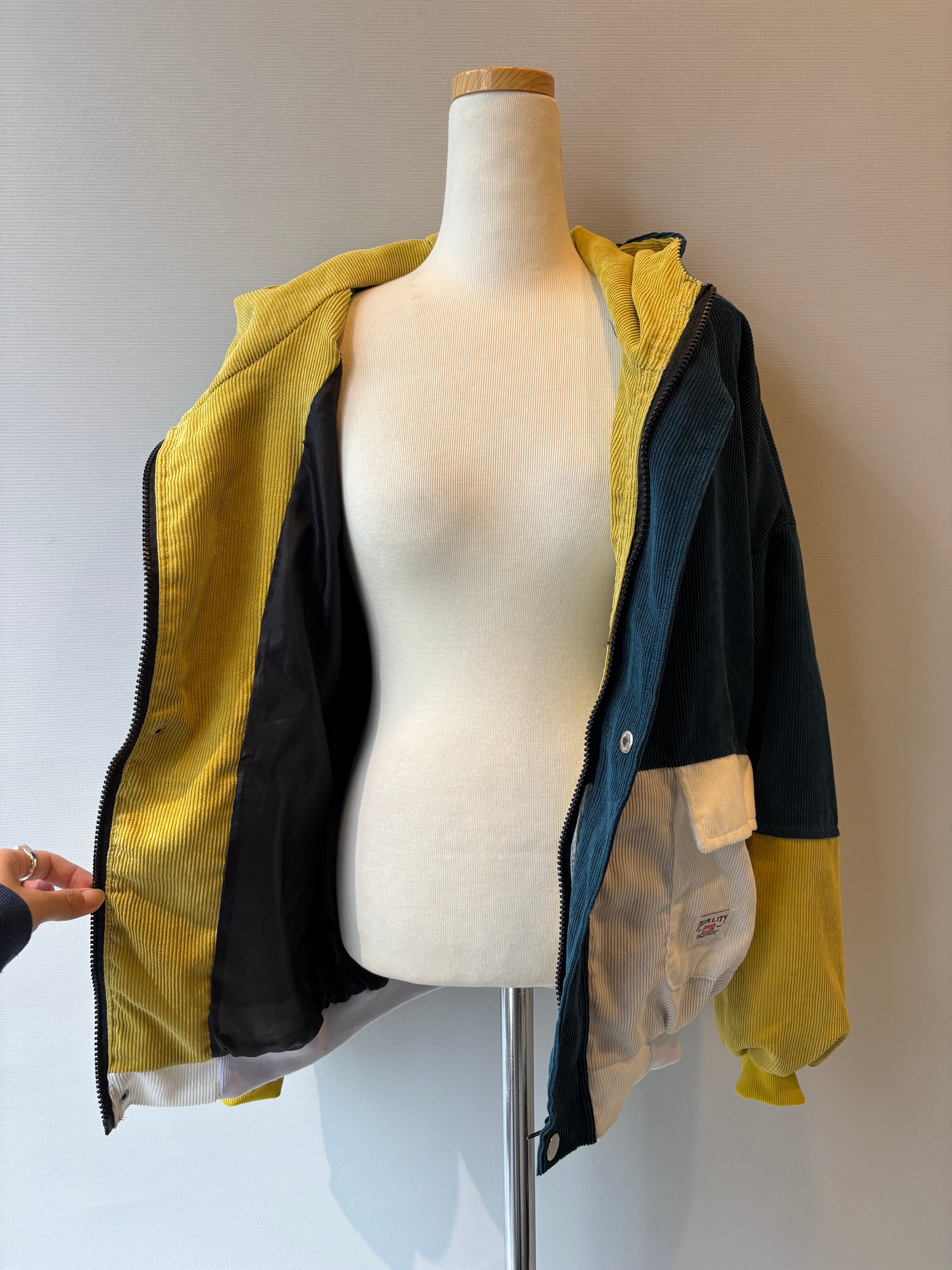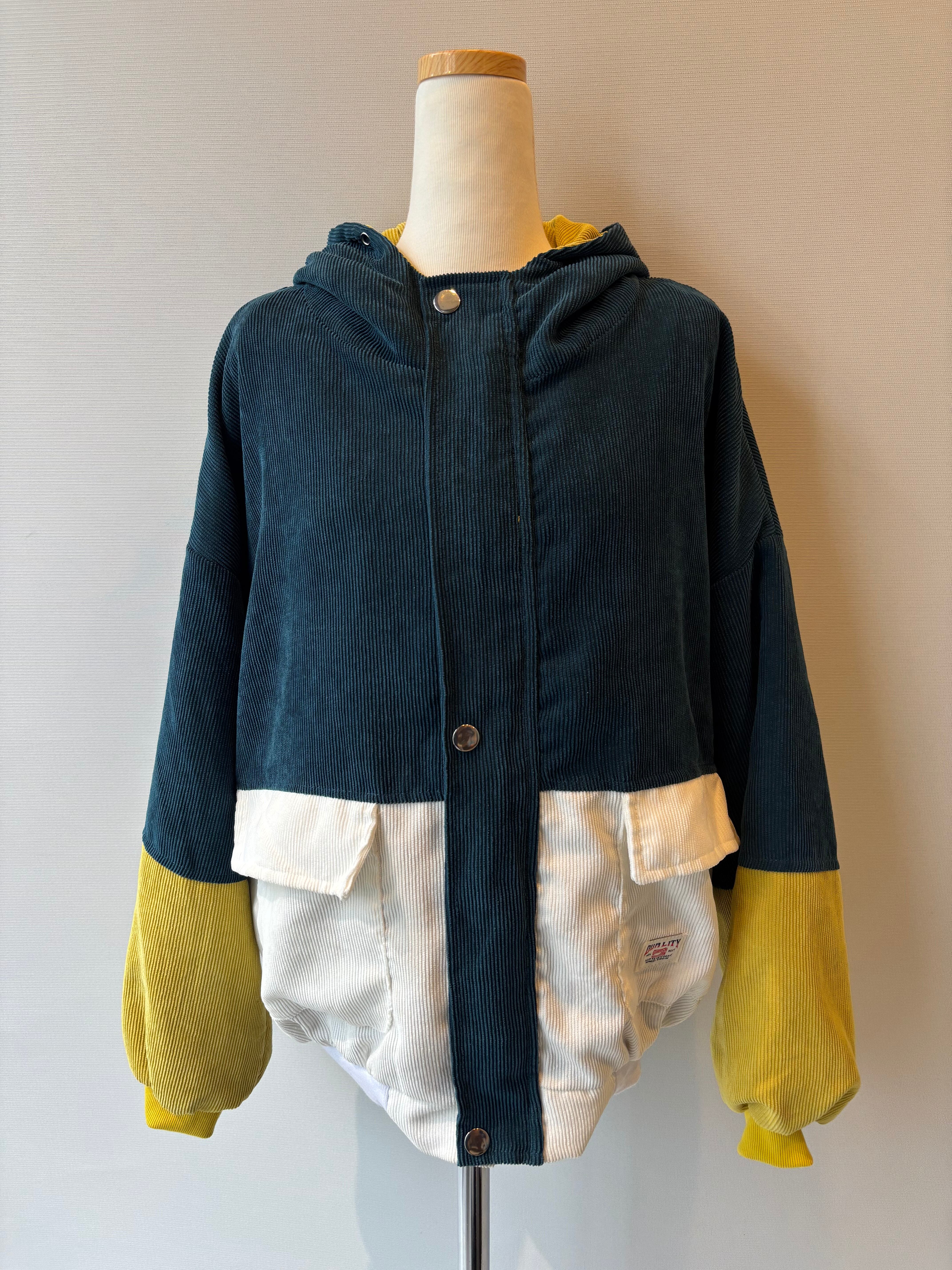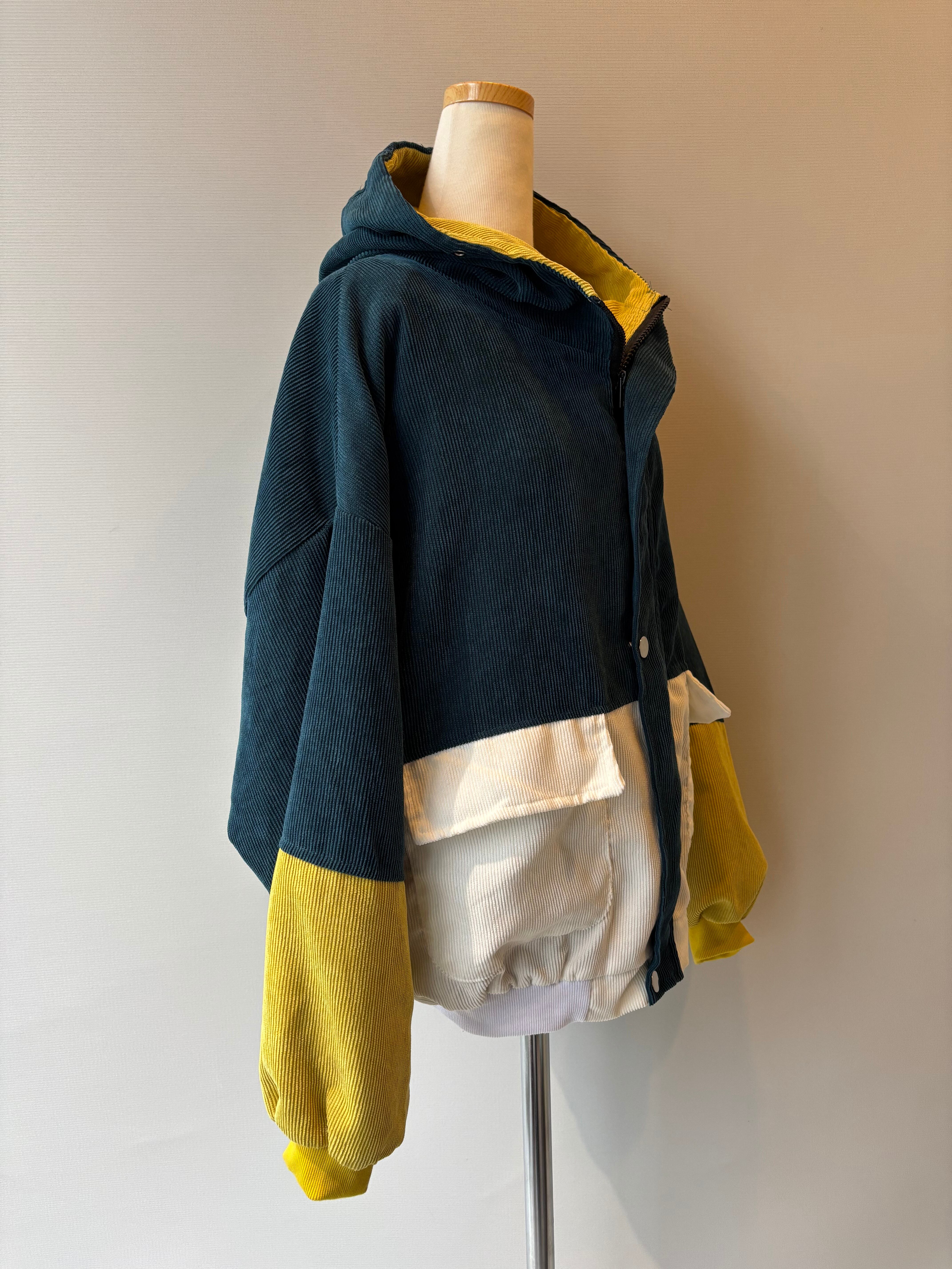 軽く羽織れる薄地のコーデュロイフーディーブルゾン。