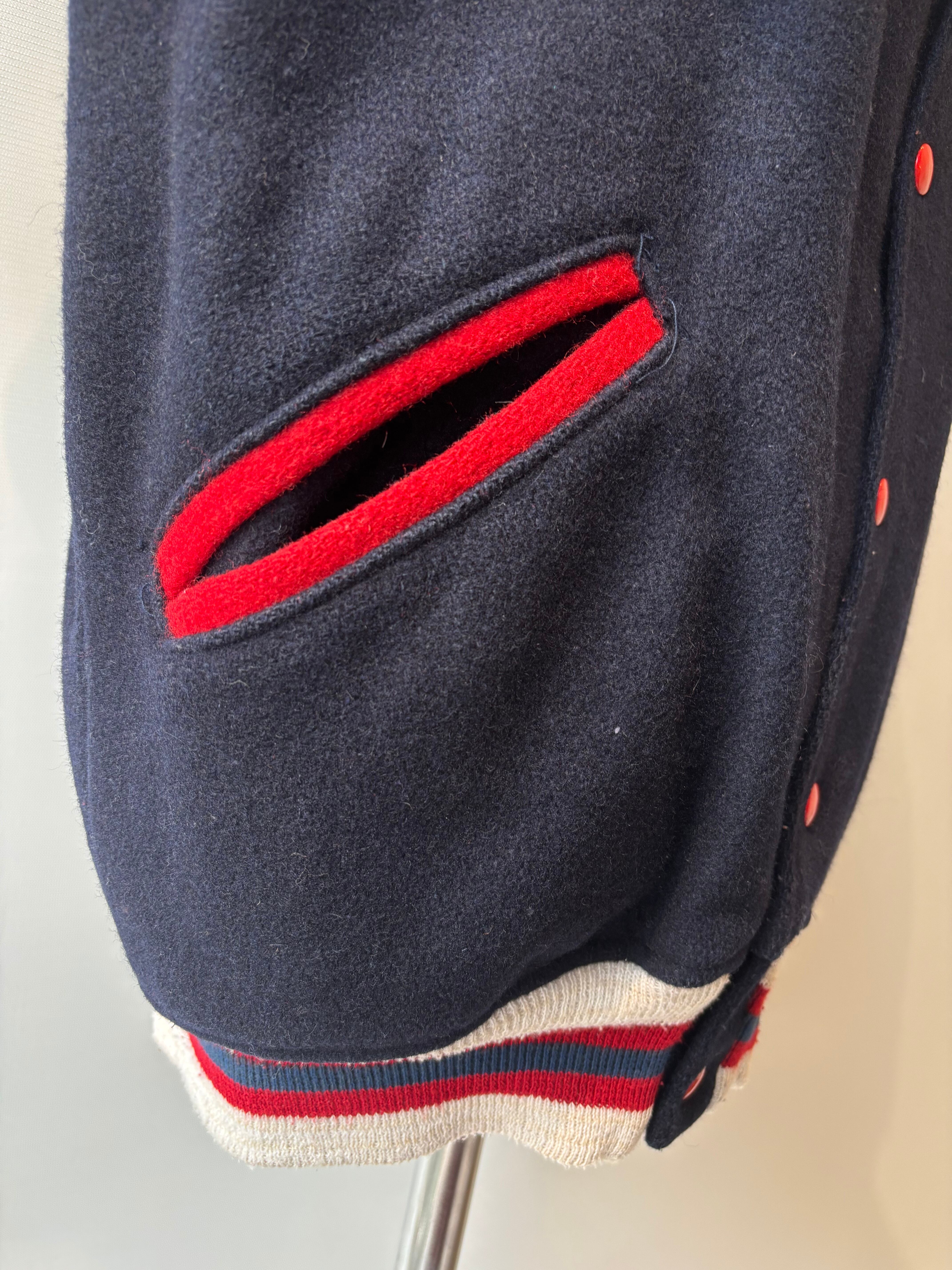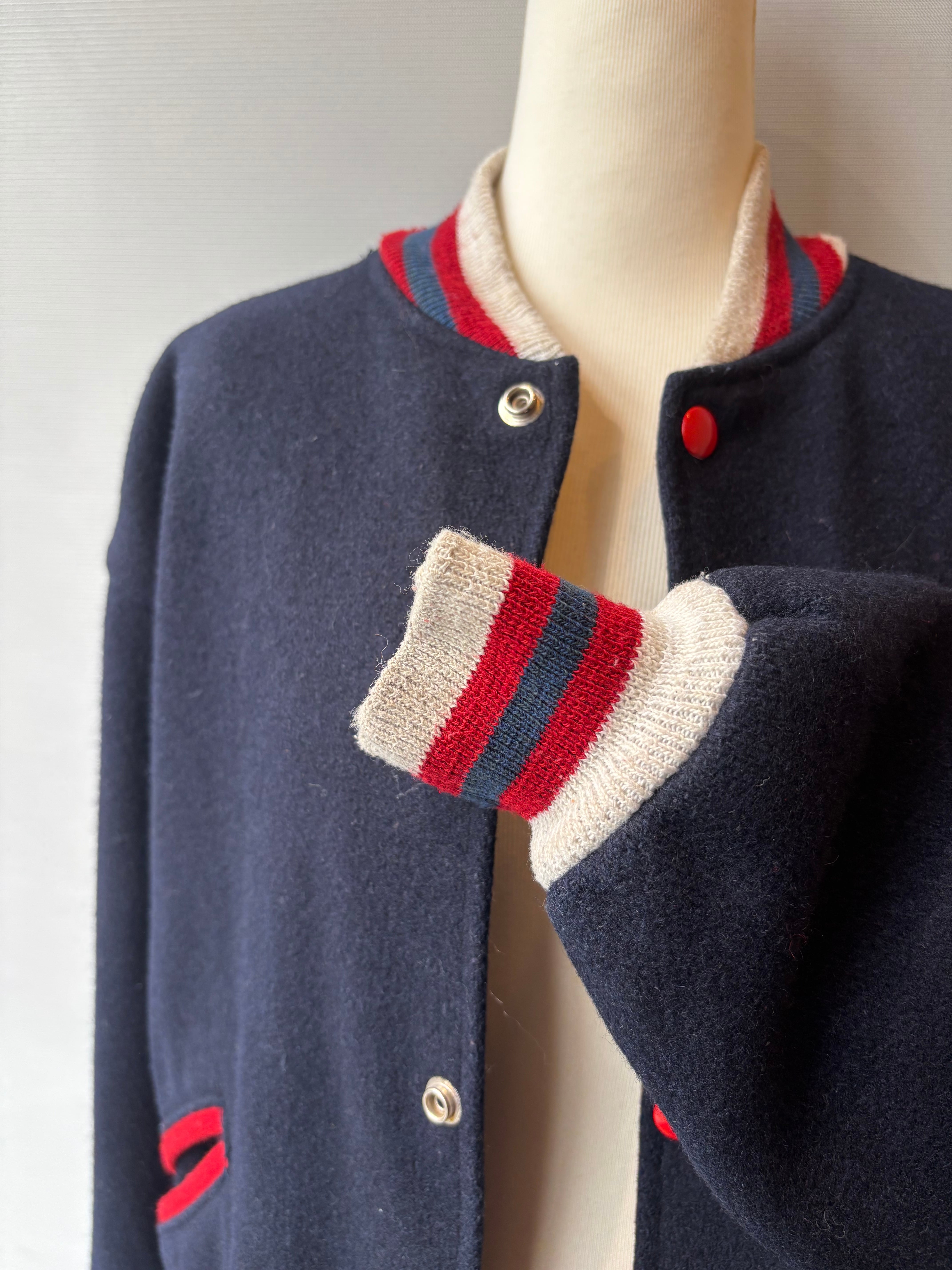 ラインリブとワッペンが映えるクラシックな一着です◎