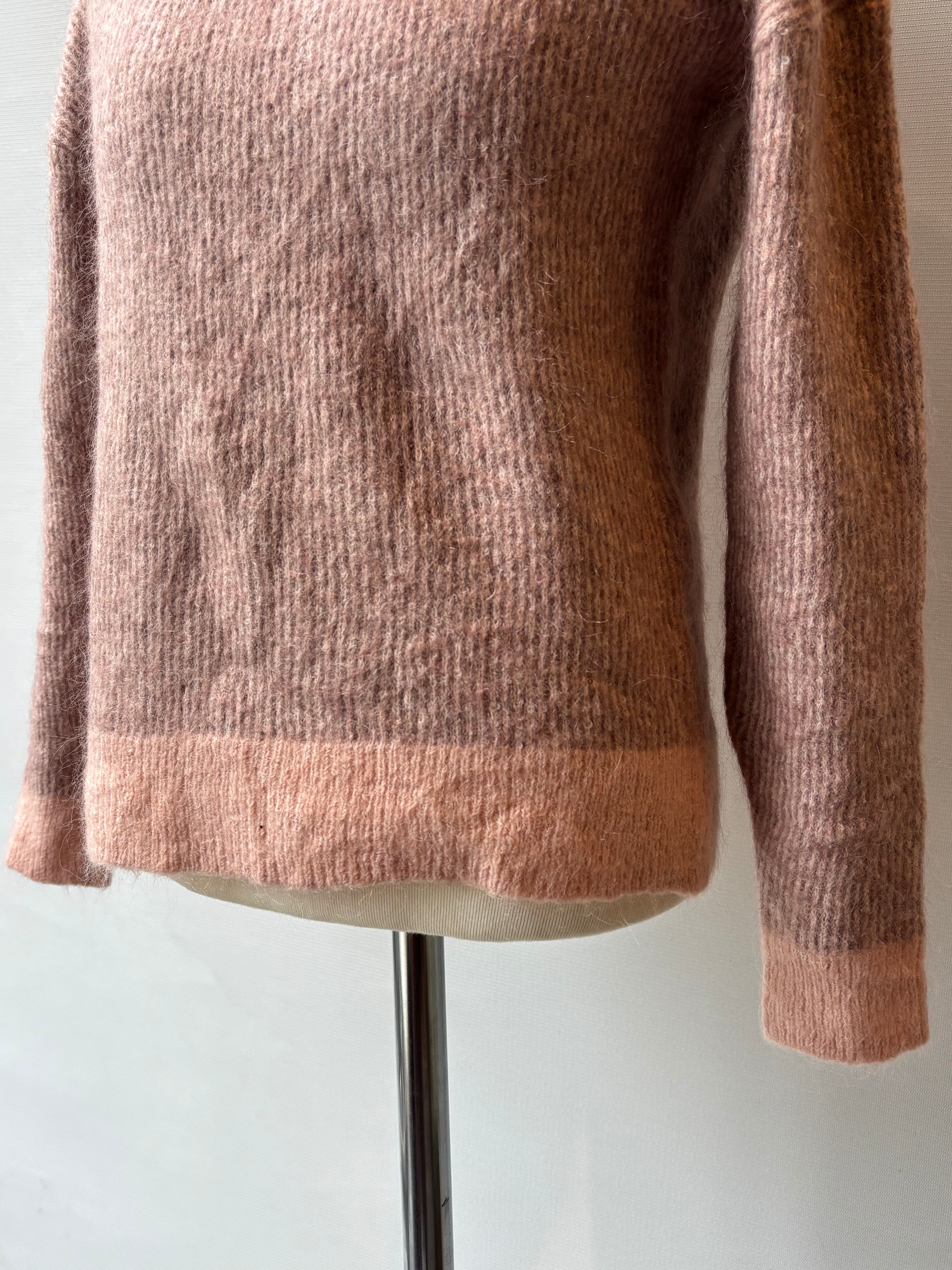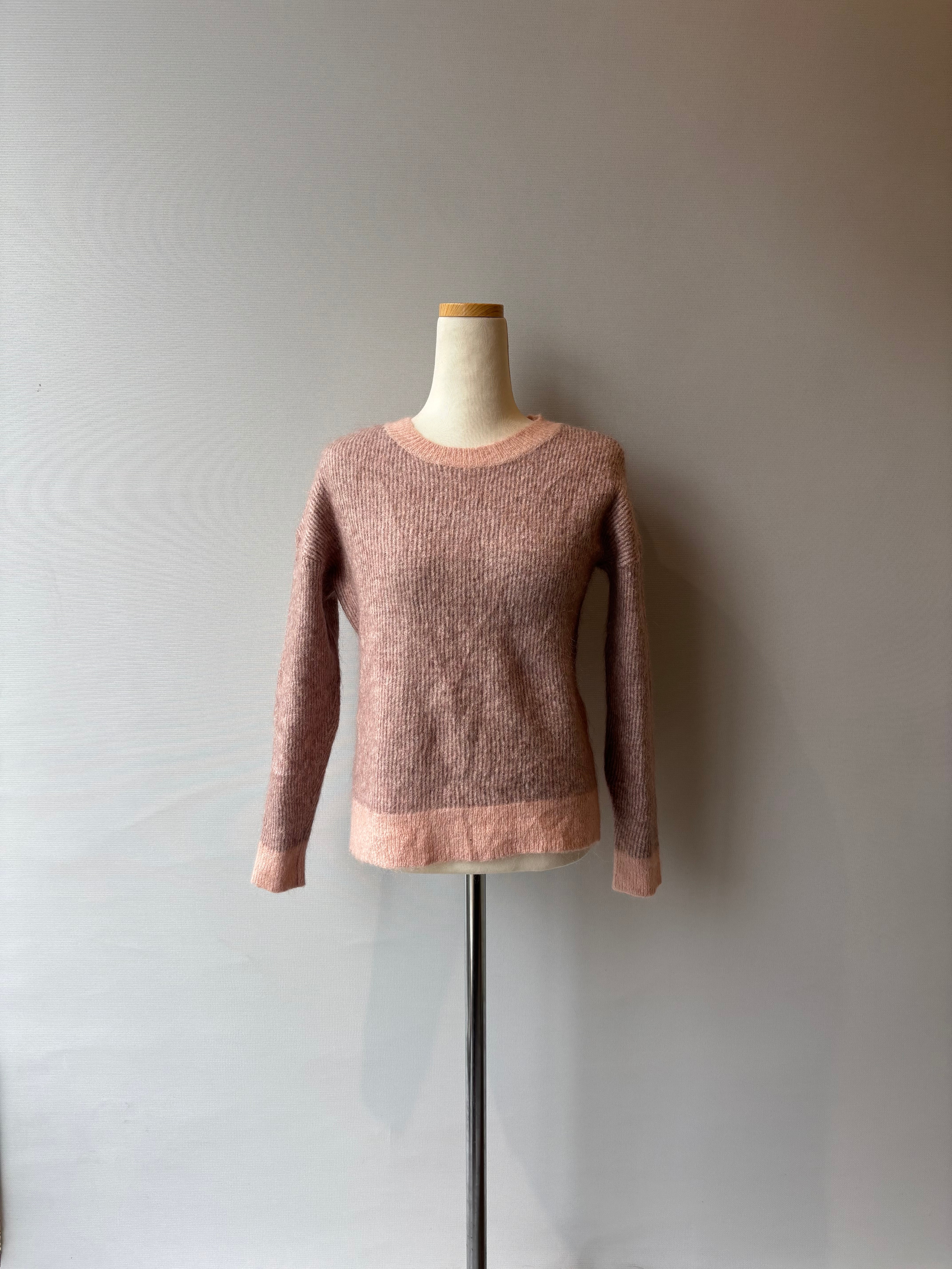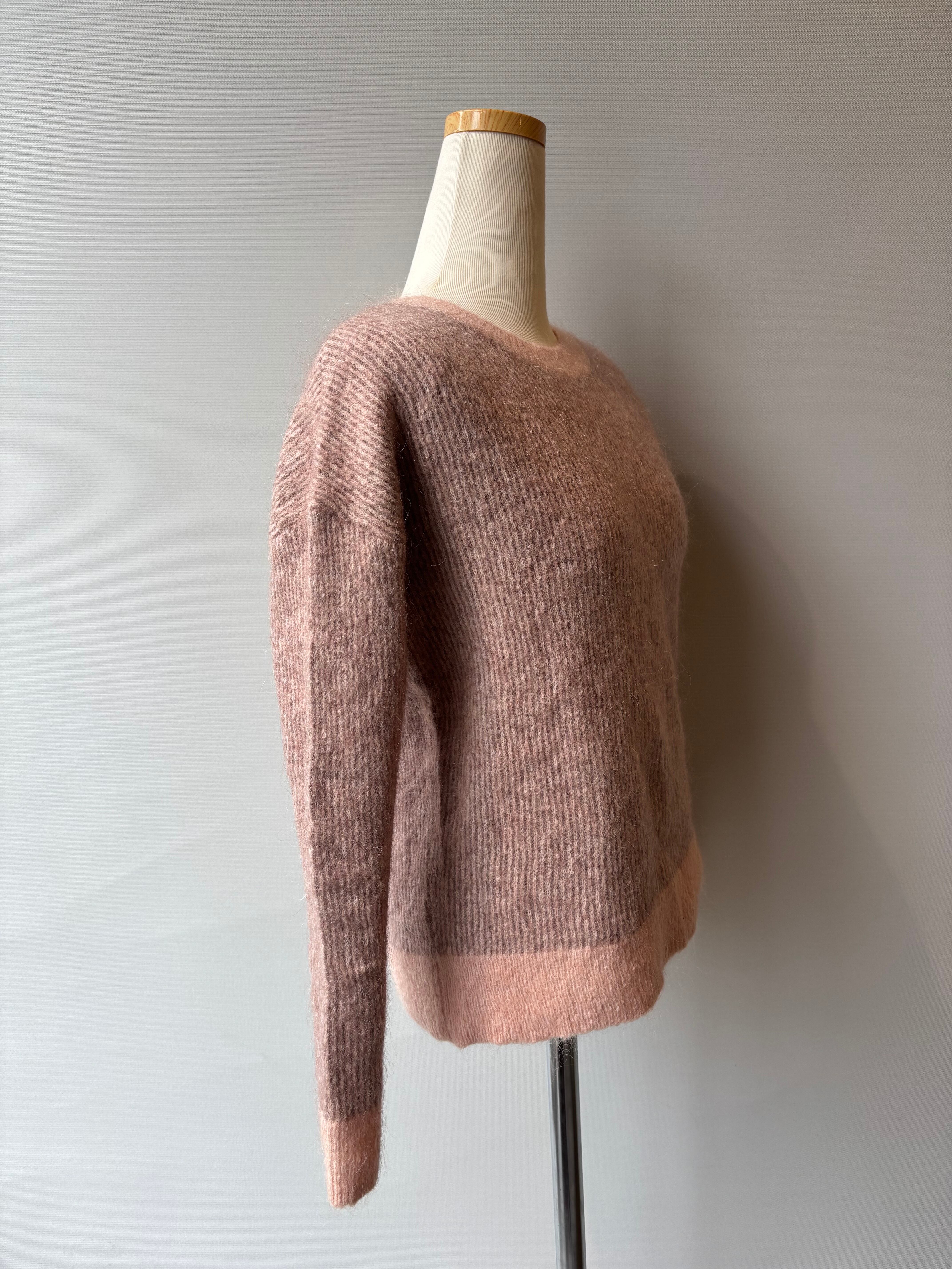 ほんのりピンクとグレーのストライプ模様が可愛い、モヘアニット。