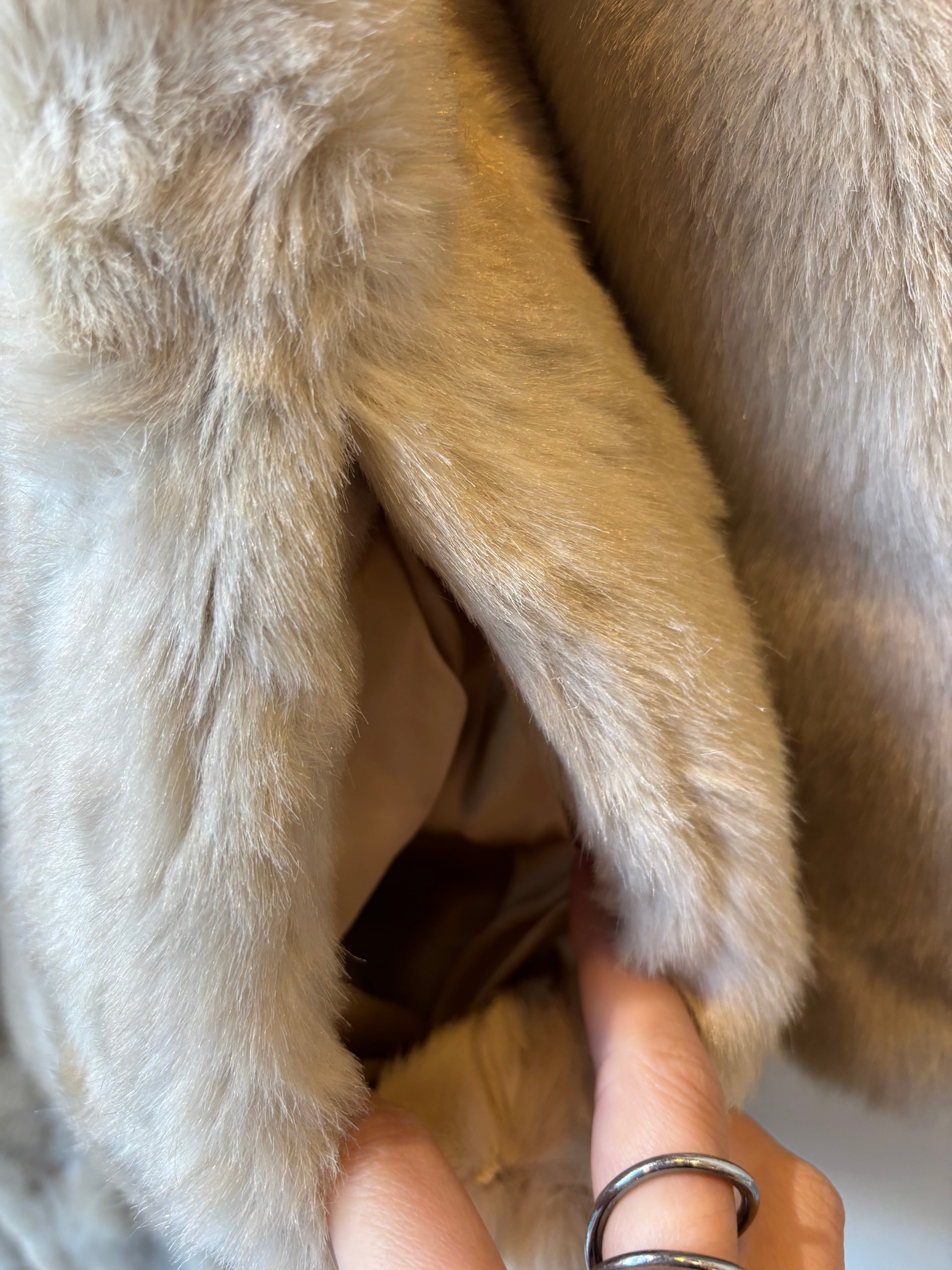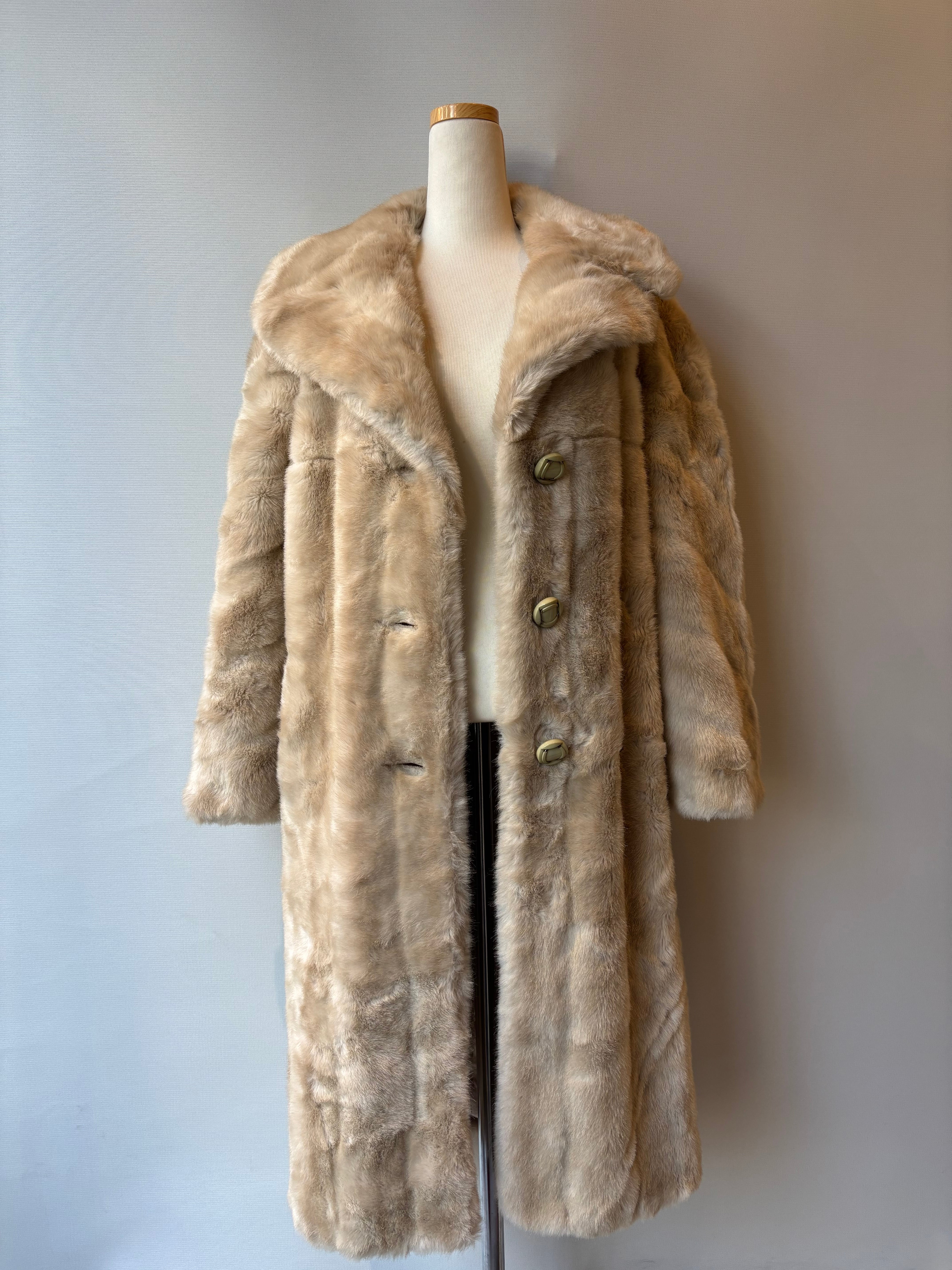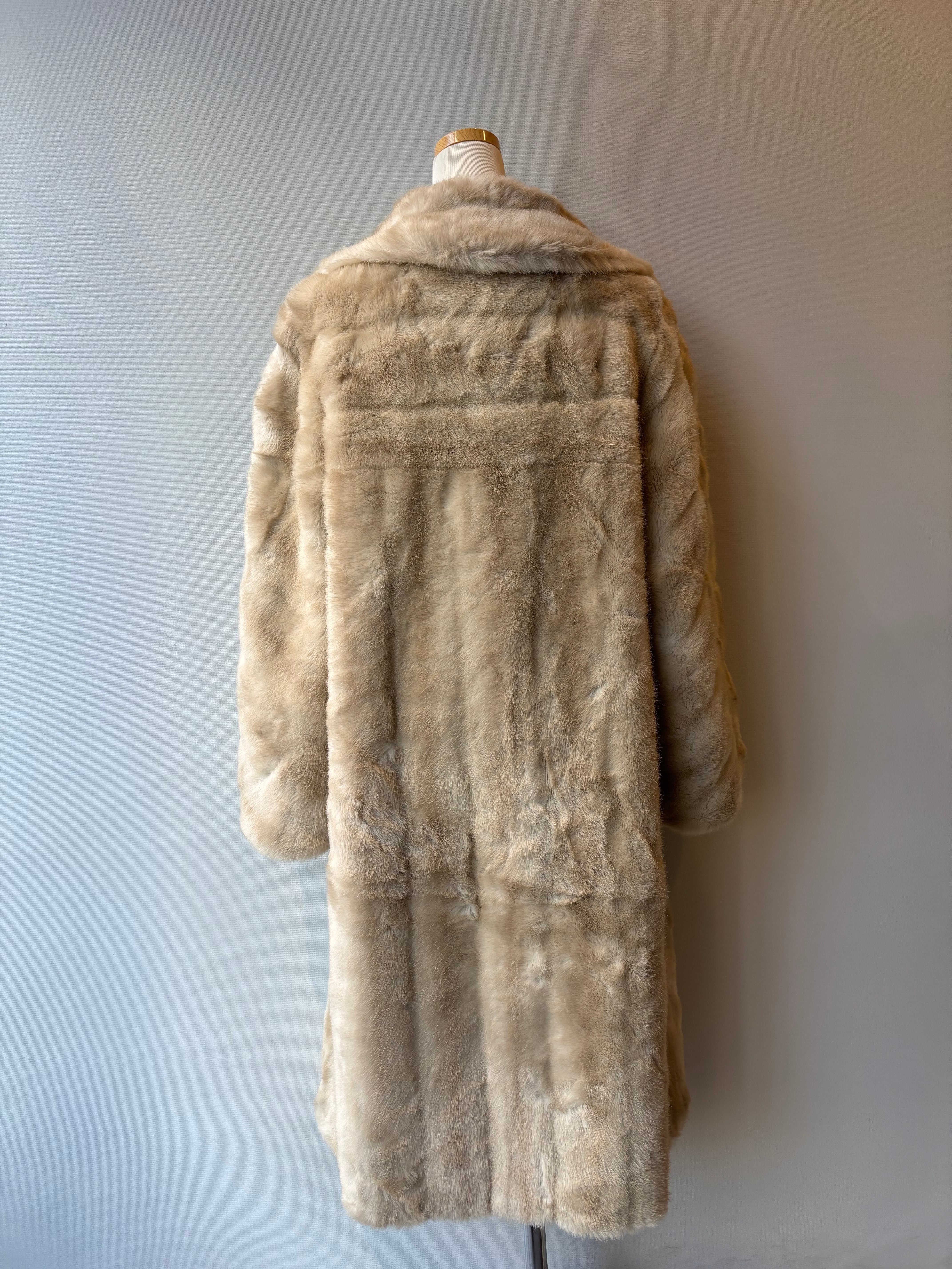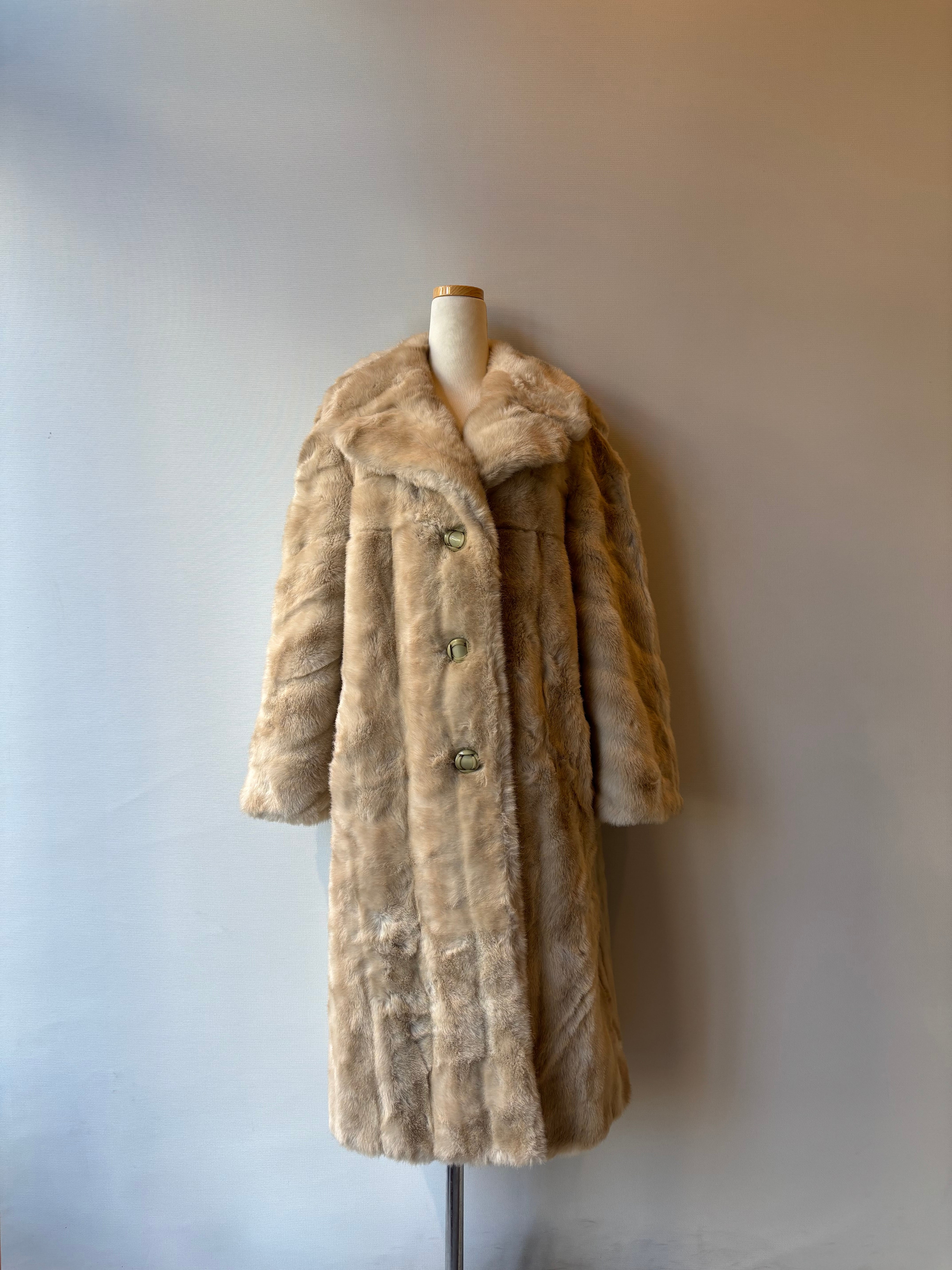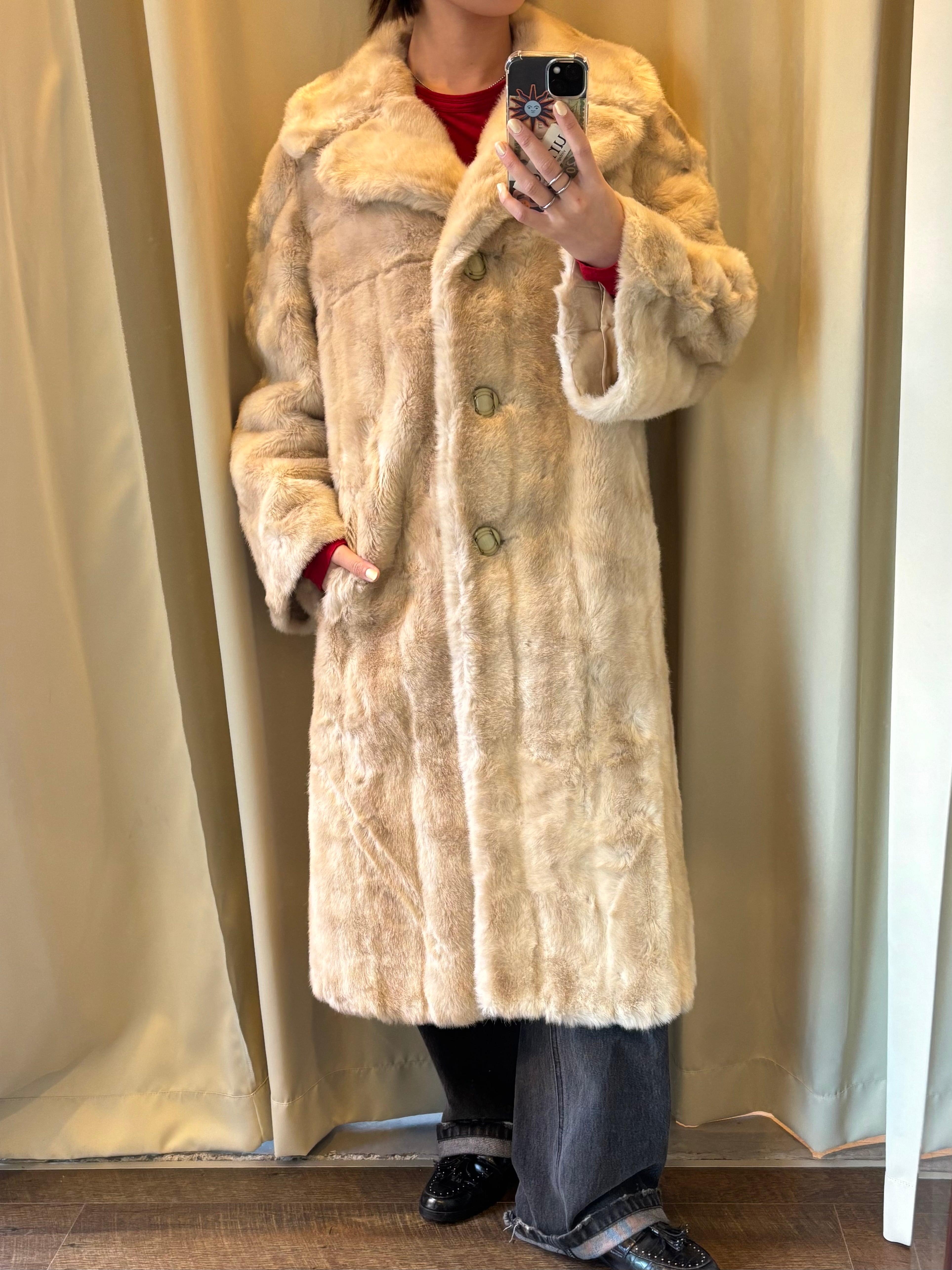 ロングすぎず、落ち着いたベージュカラーのヴィンテージファーコート。