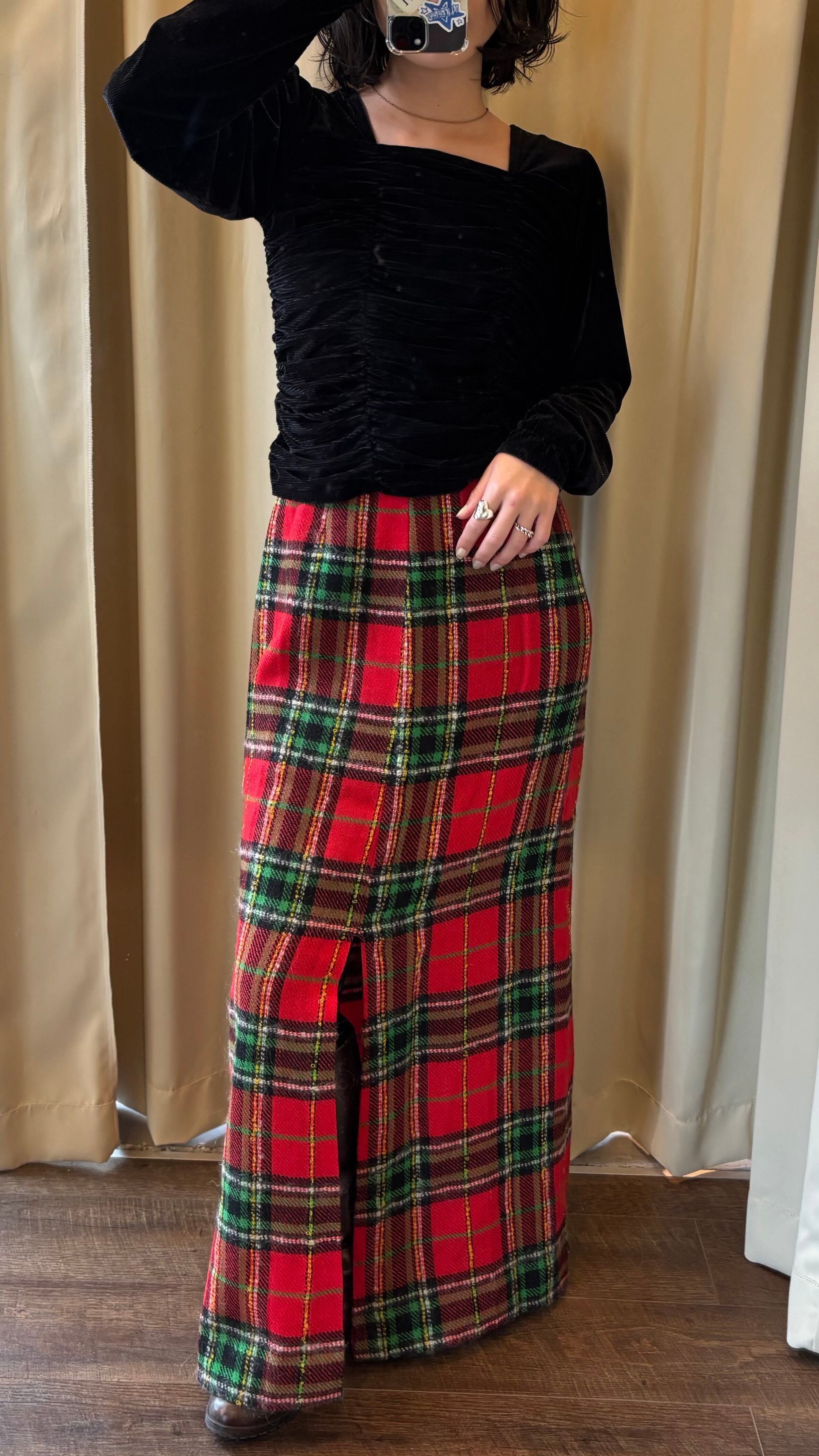 大柄のタータンチェックが存在感抜群のウールのロングスカート。