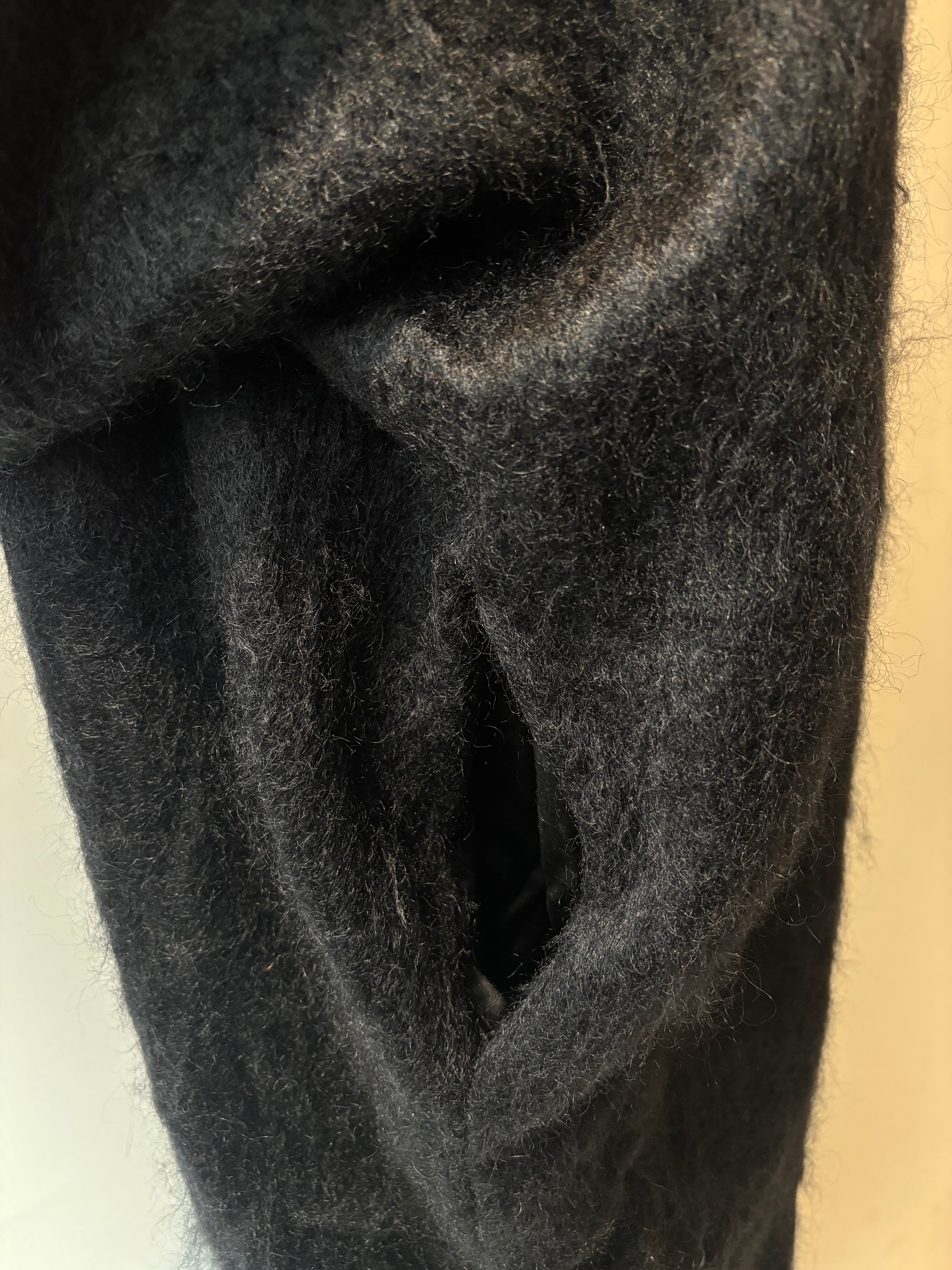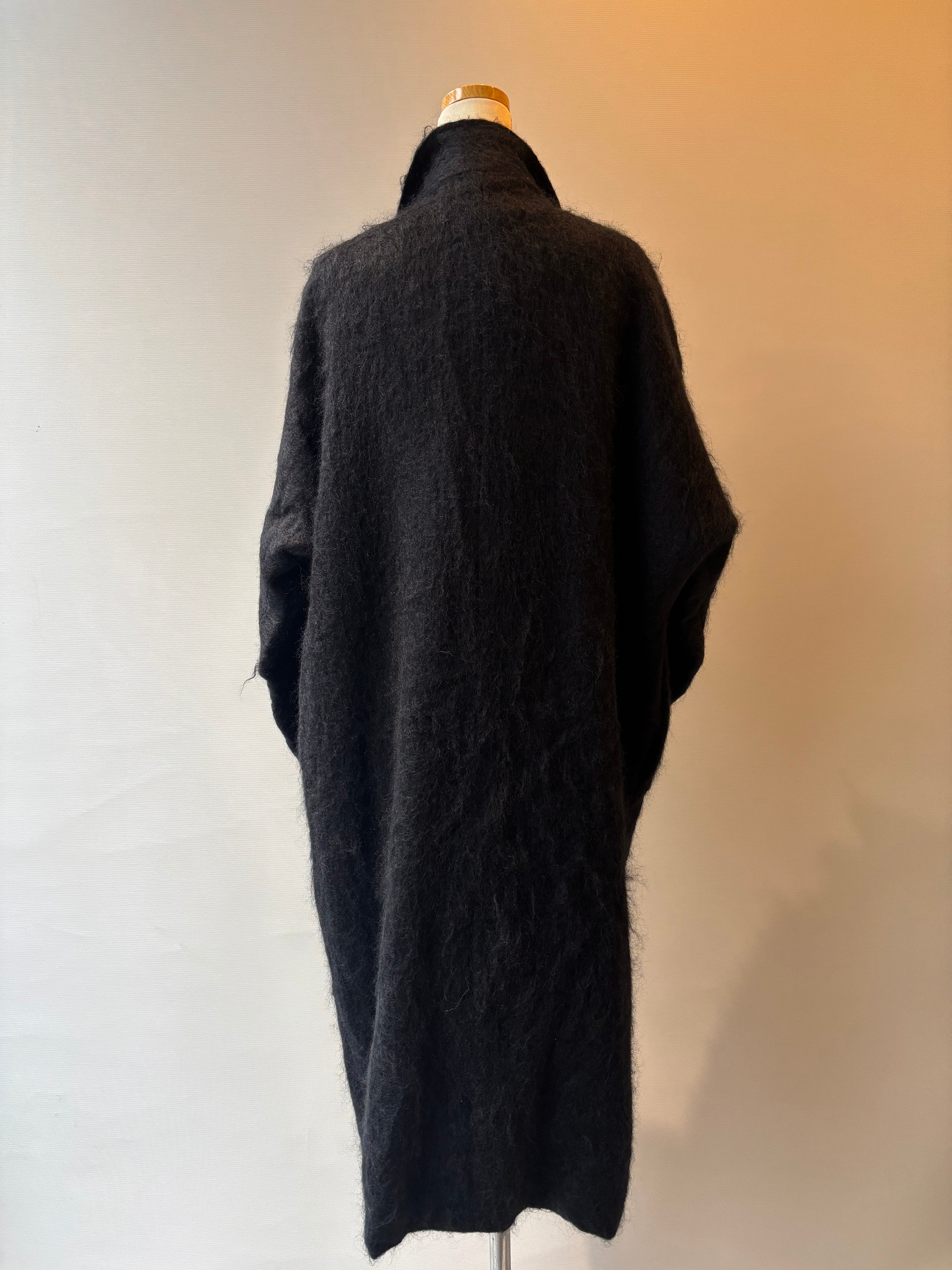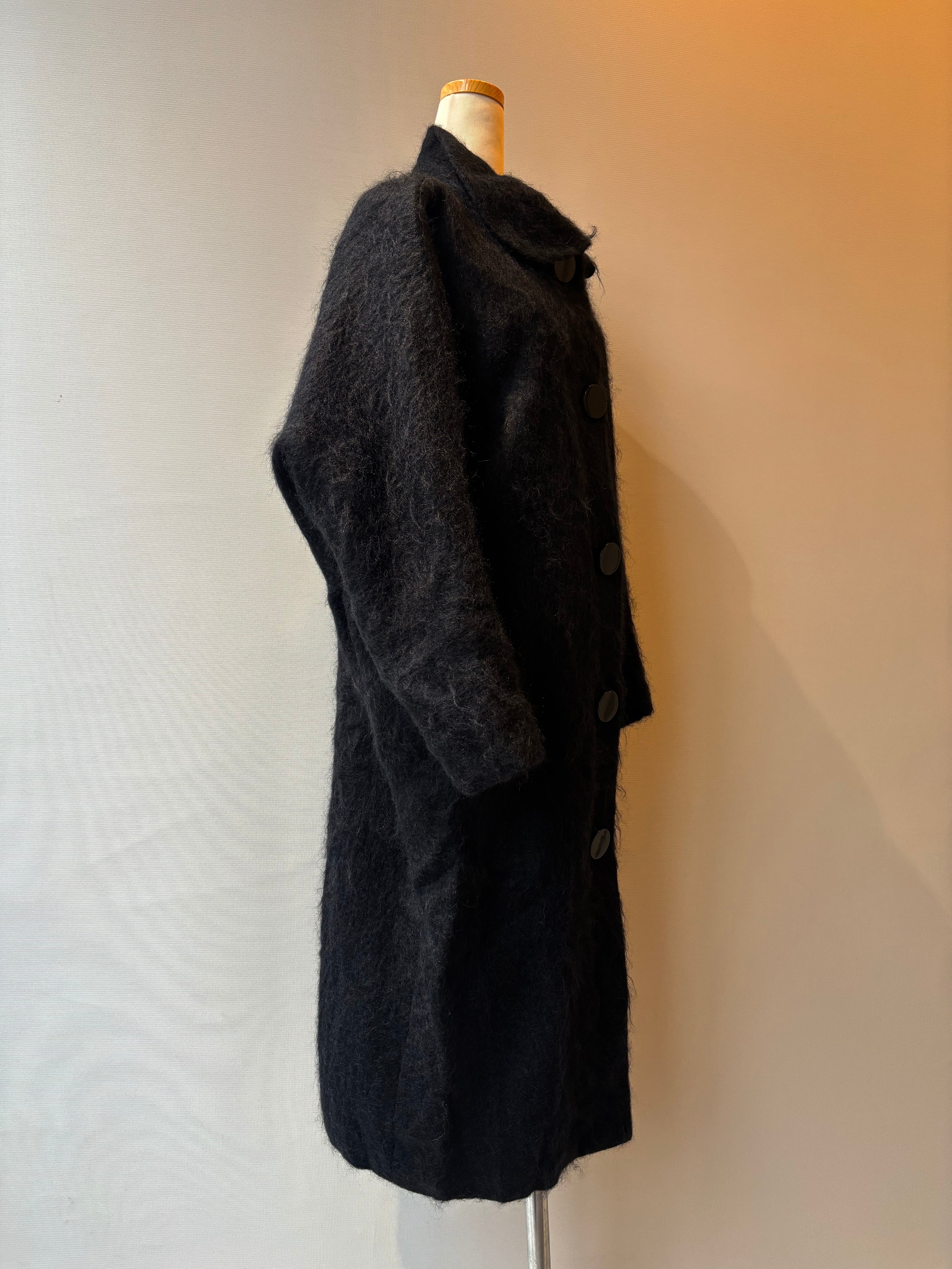 丸い大きなボタンがアクセントになった、キュートなモヘアコート。