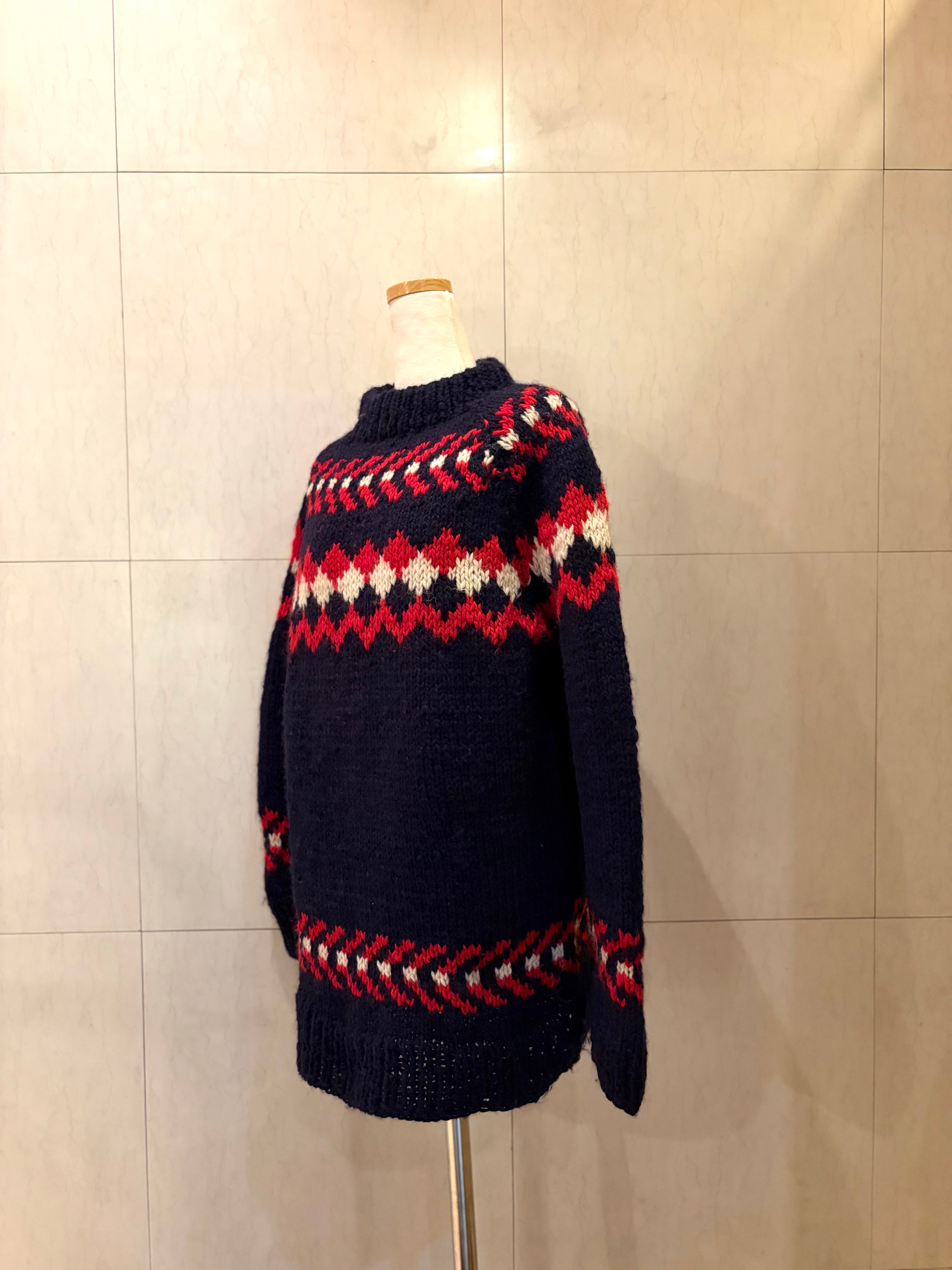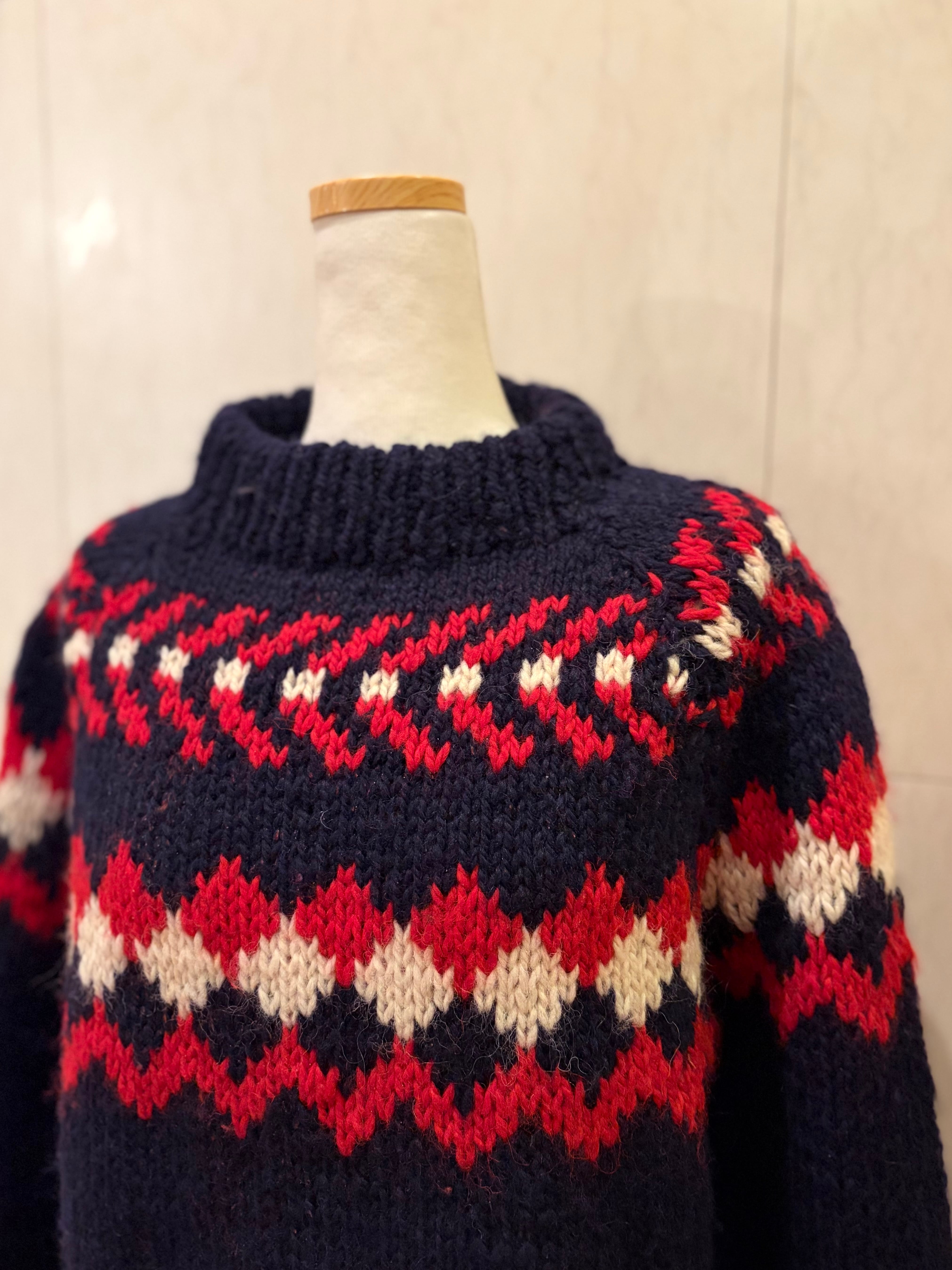 ノルディック柄の手編みギリシャ製ウールニット。定番デザインなので流行り廃りなく長く着ていただけます。温かみのある風合いで、冬のコーデにヴィンテージらしい雰囲気を添えてくれます。