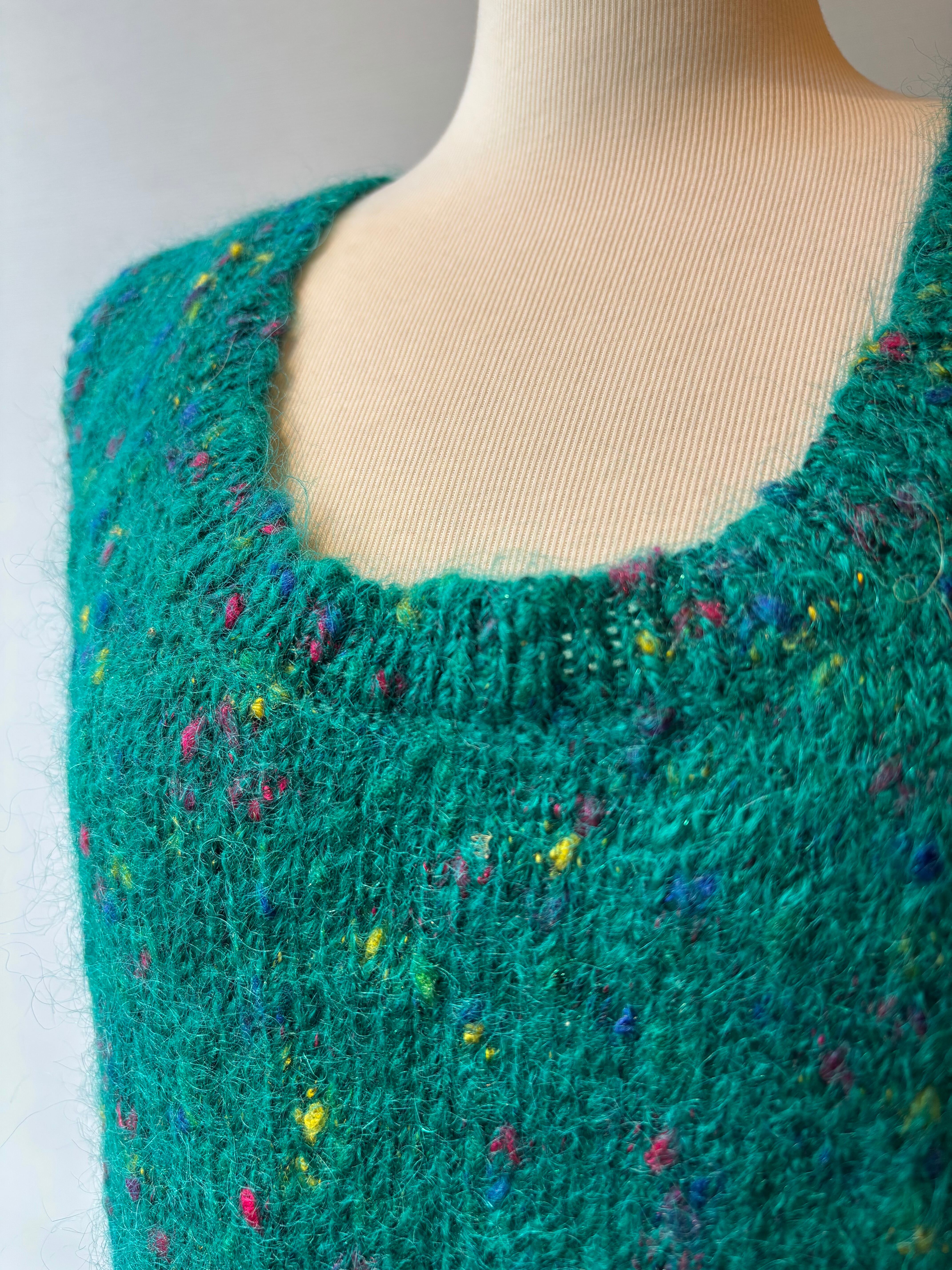 マルチカラーのポツポツ模様がアクセントで、やや深めのUネックなので、シャツやカットソーとのレイヤードも楽しめます。