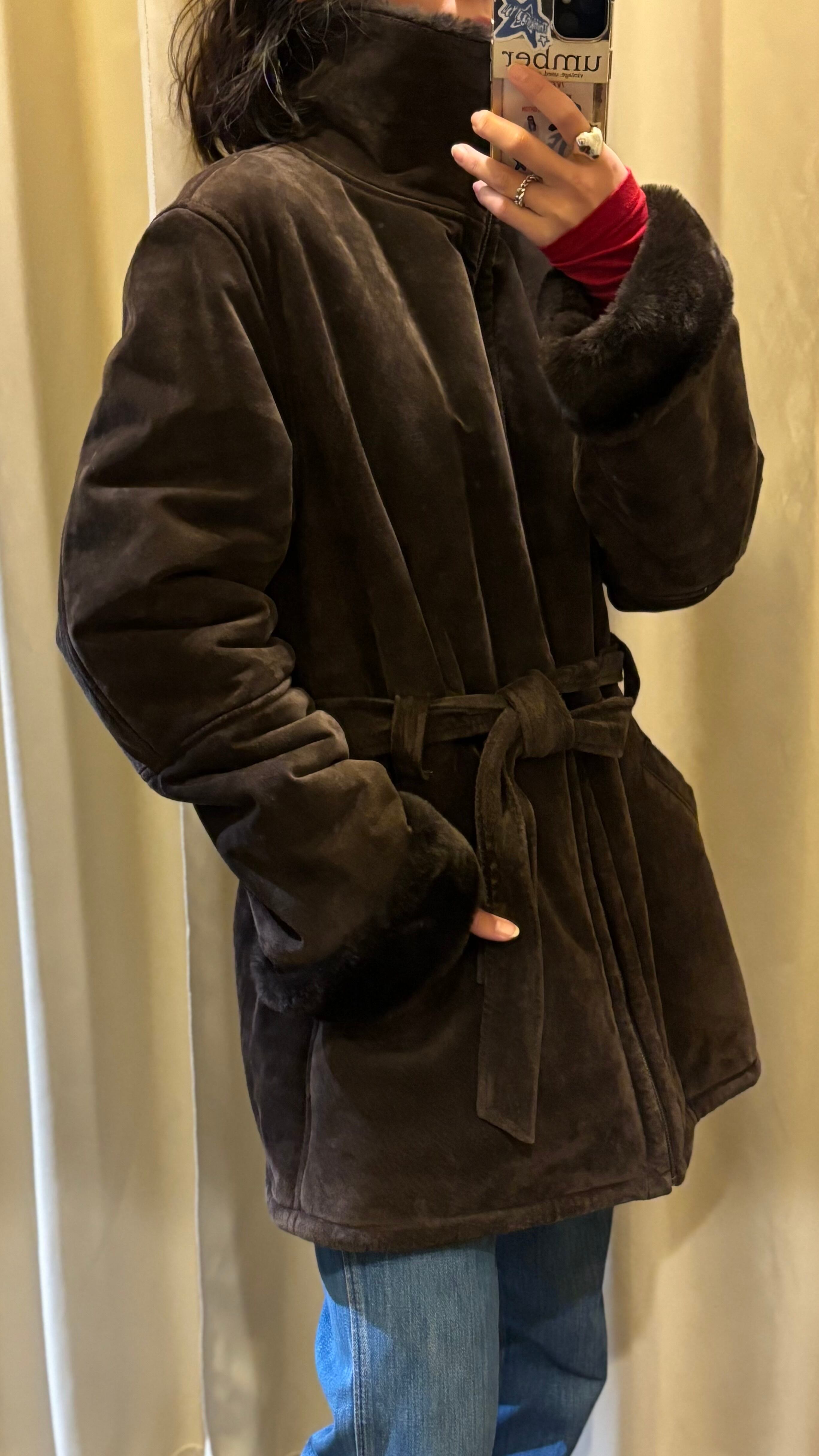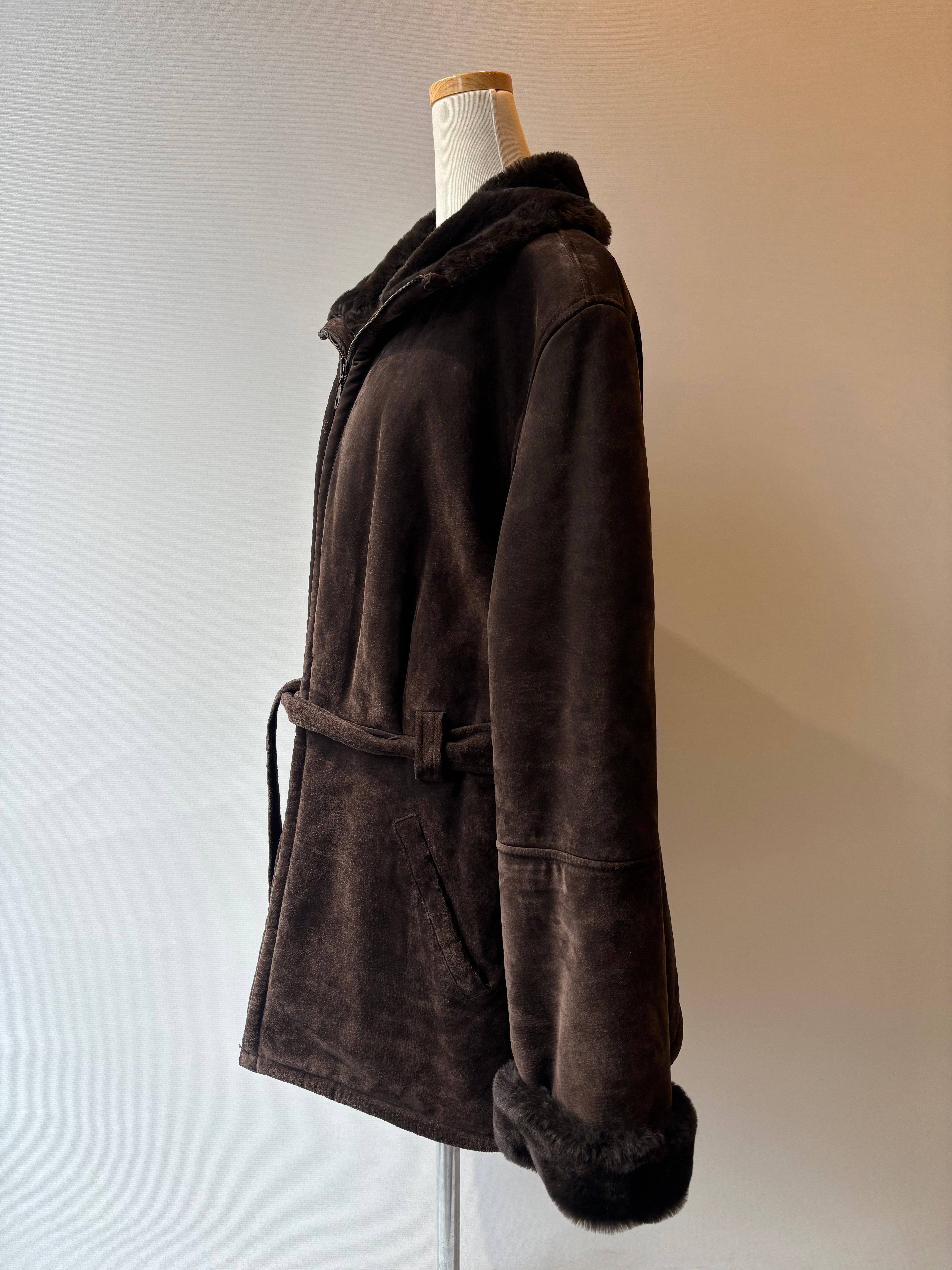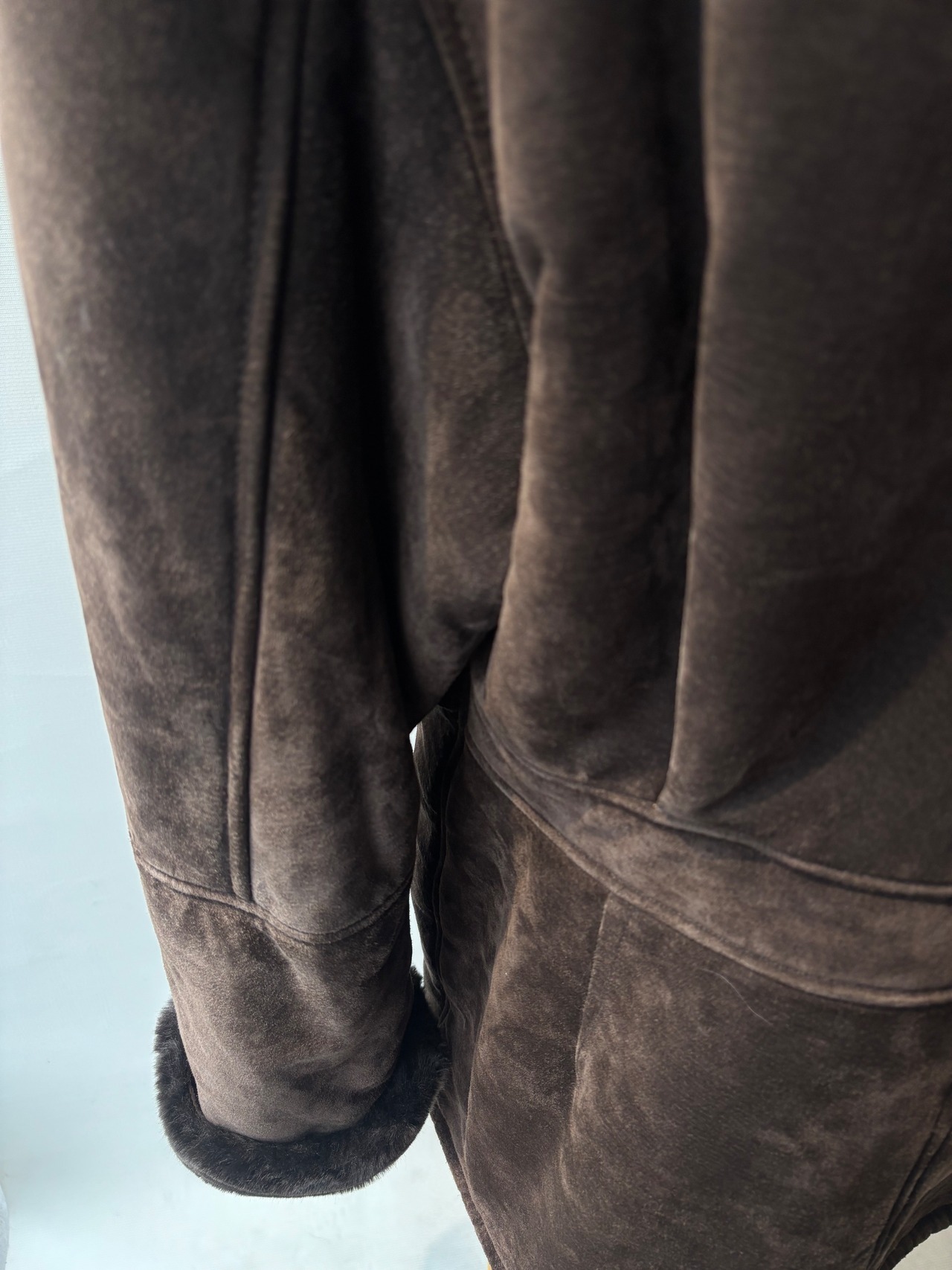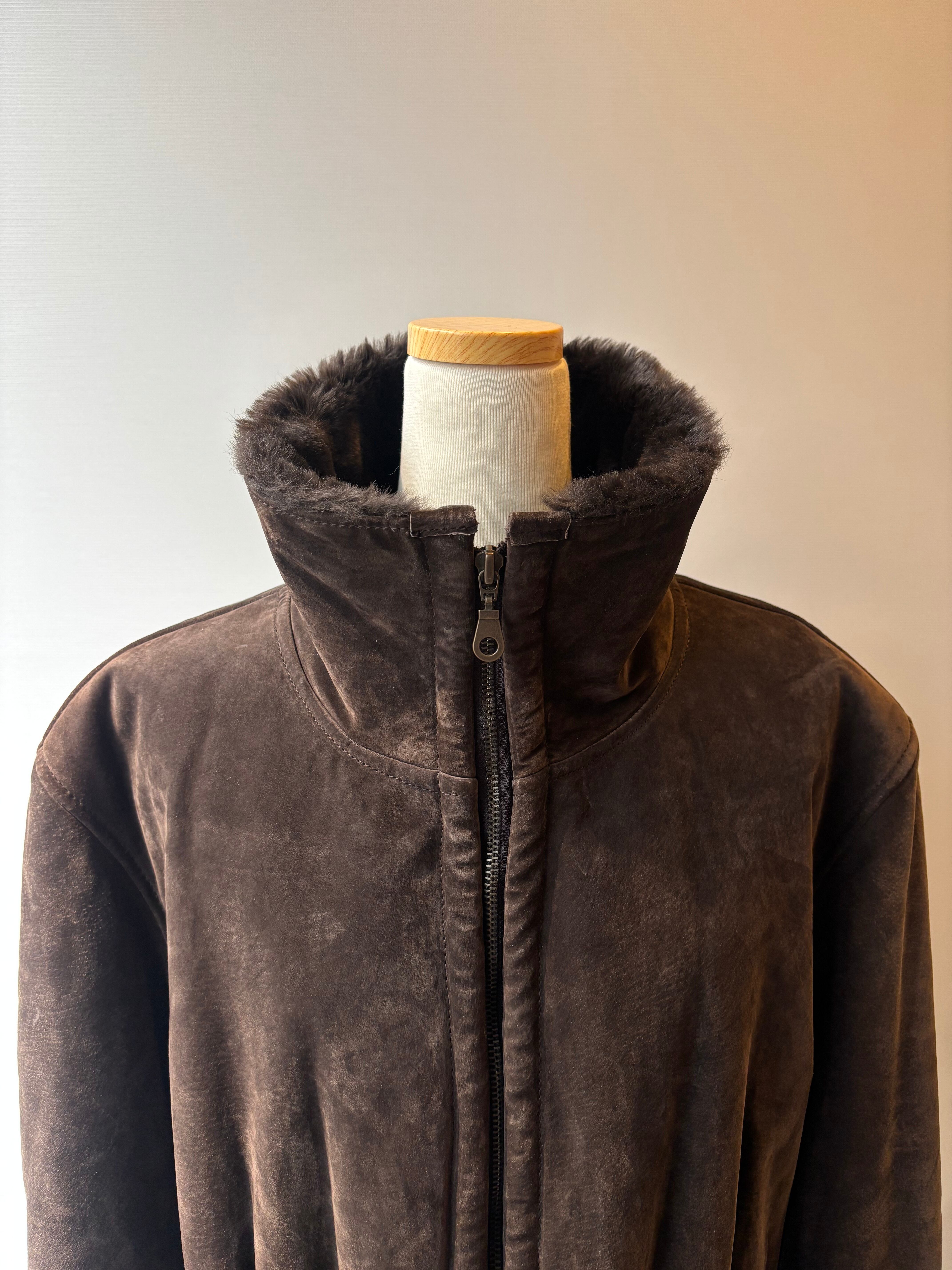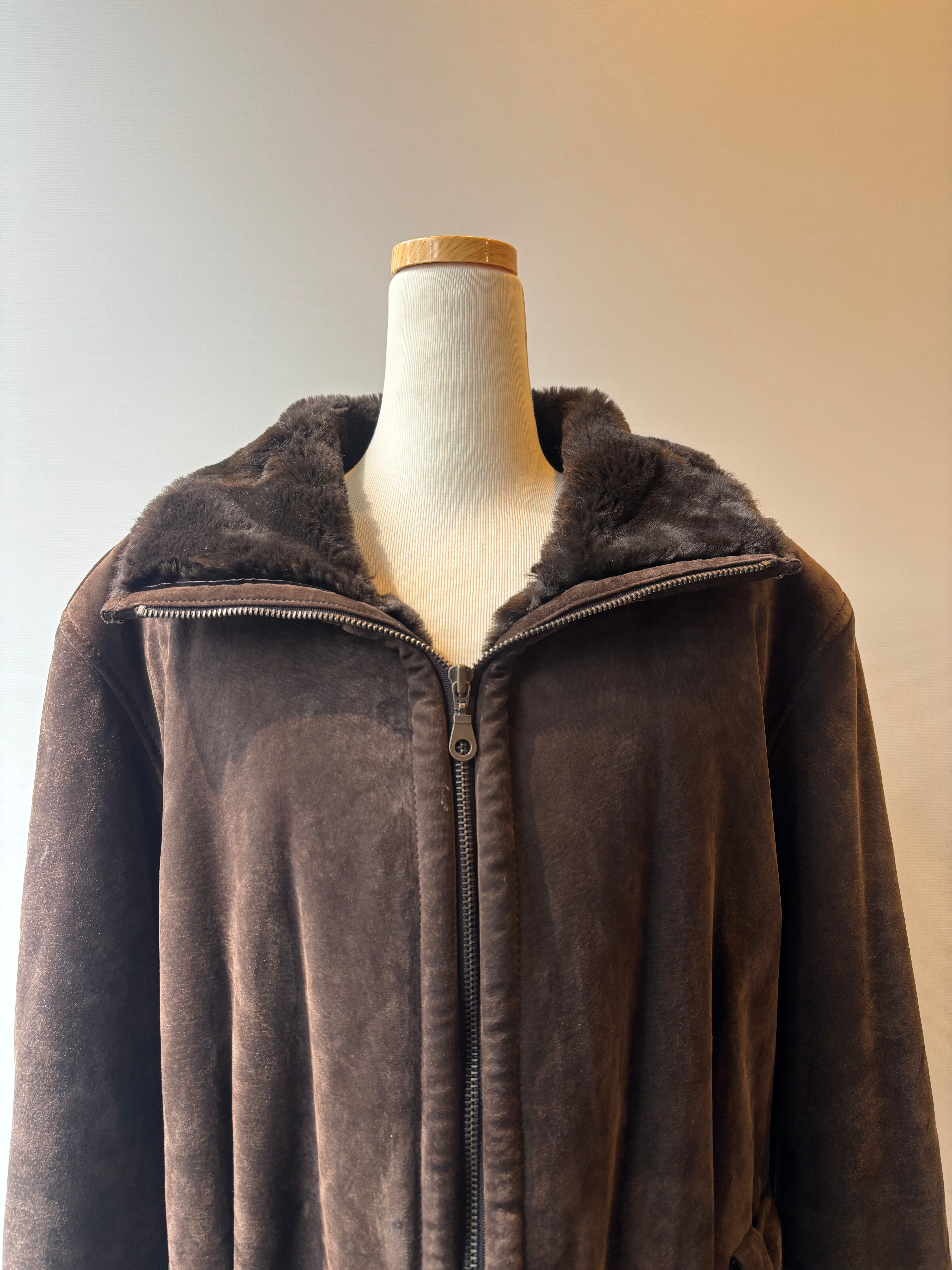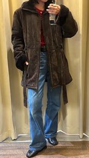 裏地はファー仕様で暖かく、レザーの表情が上品な一着。