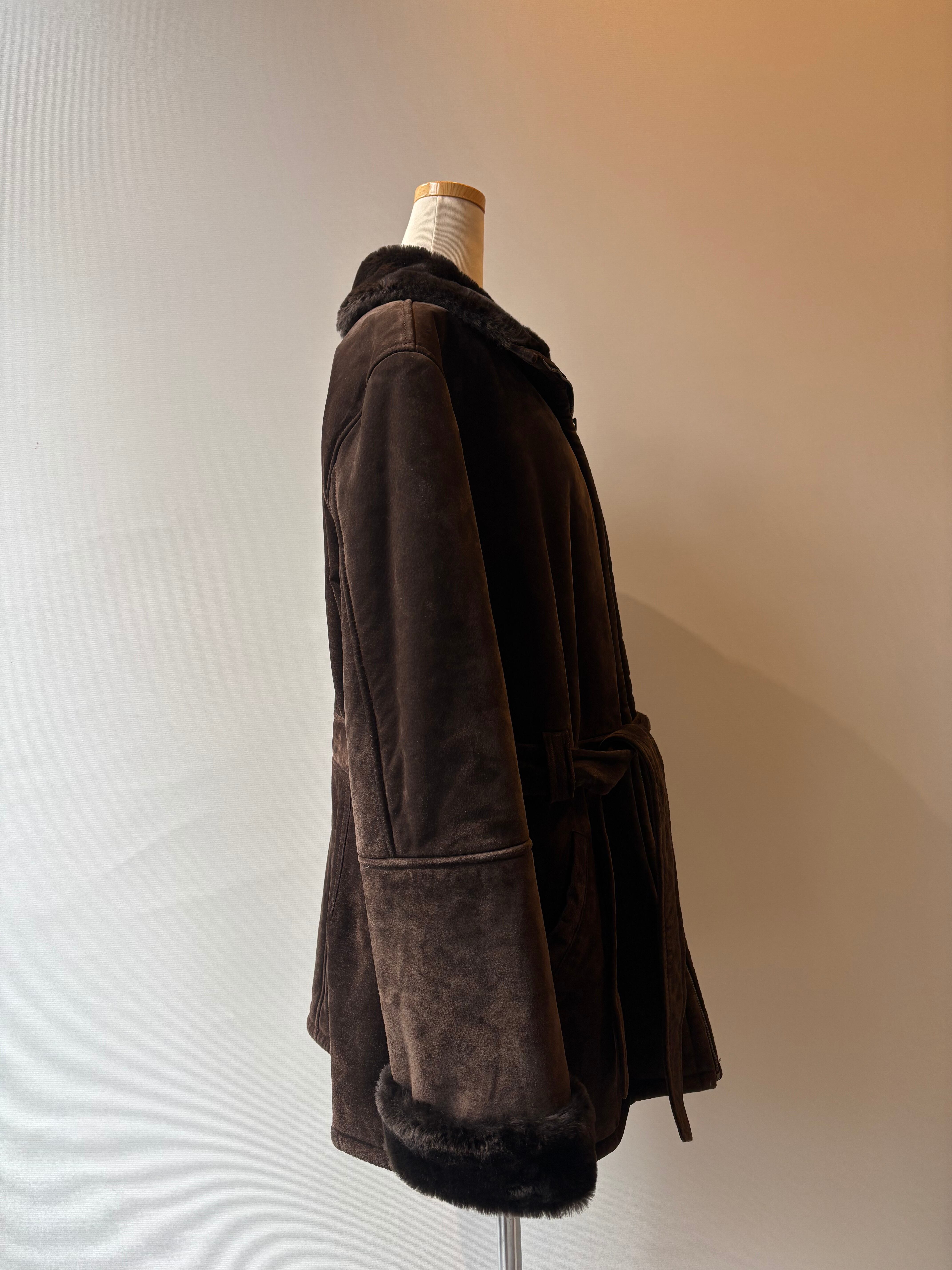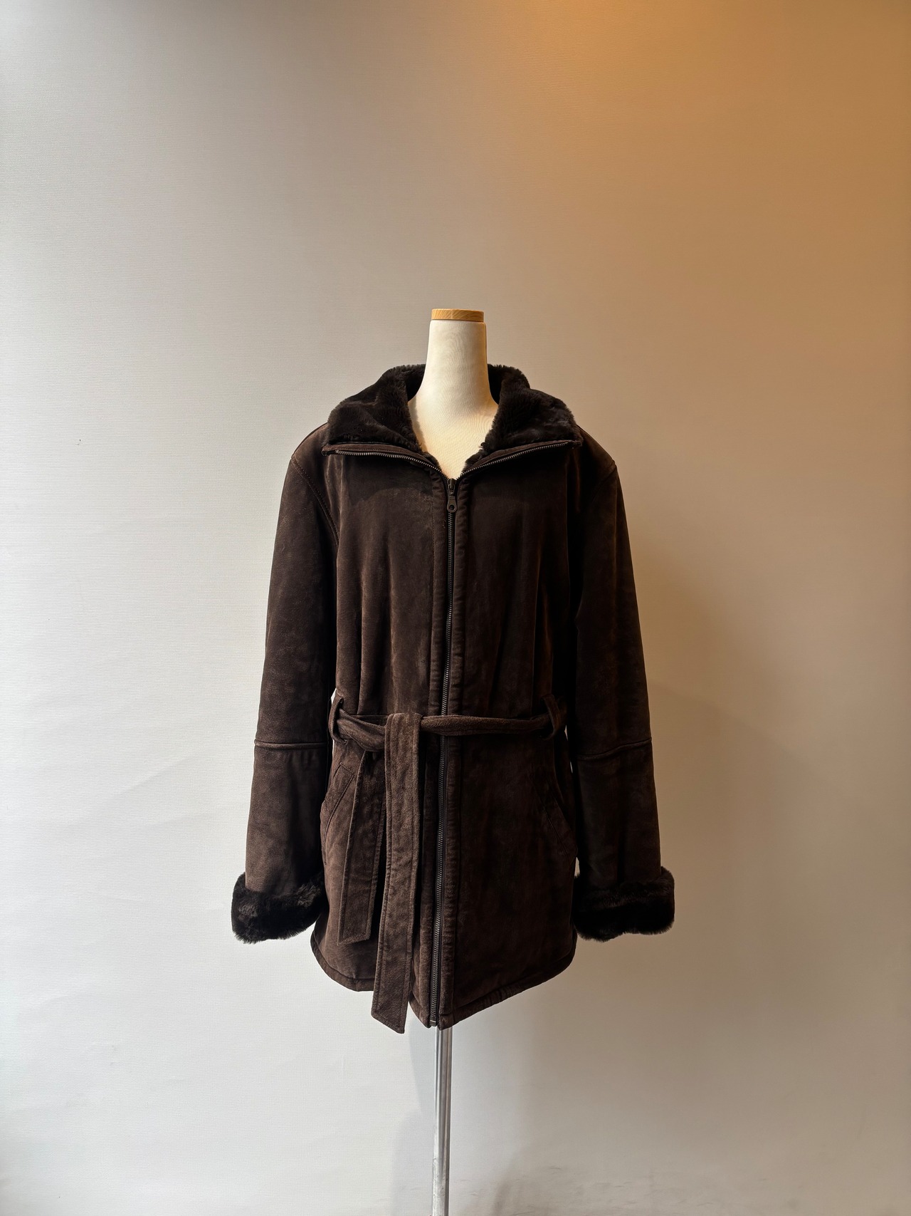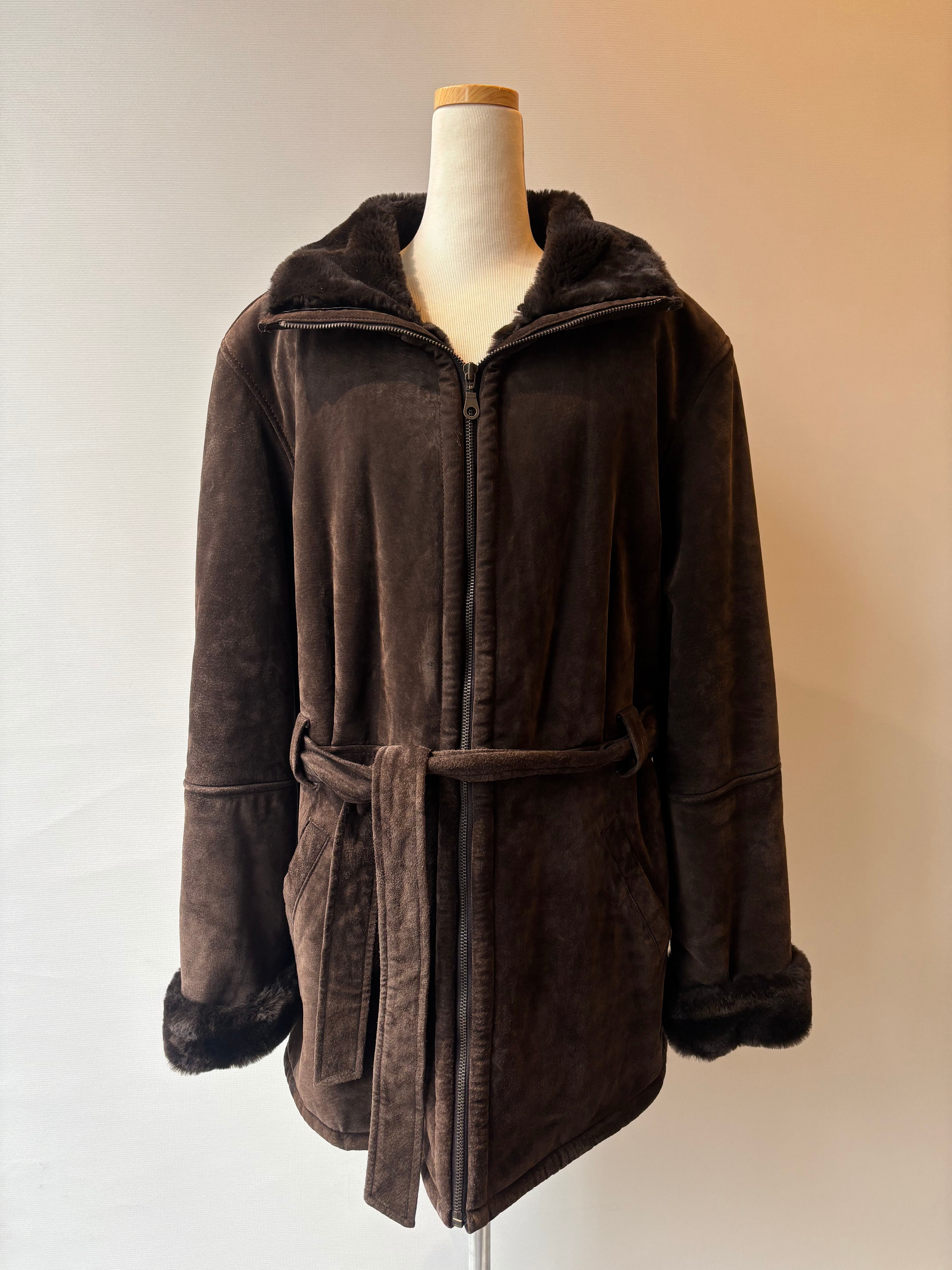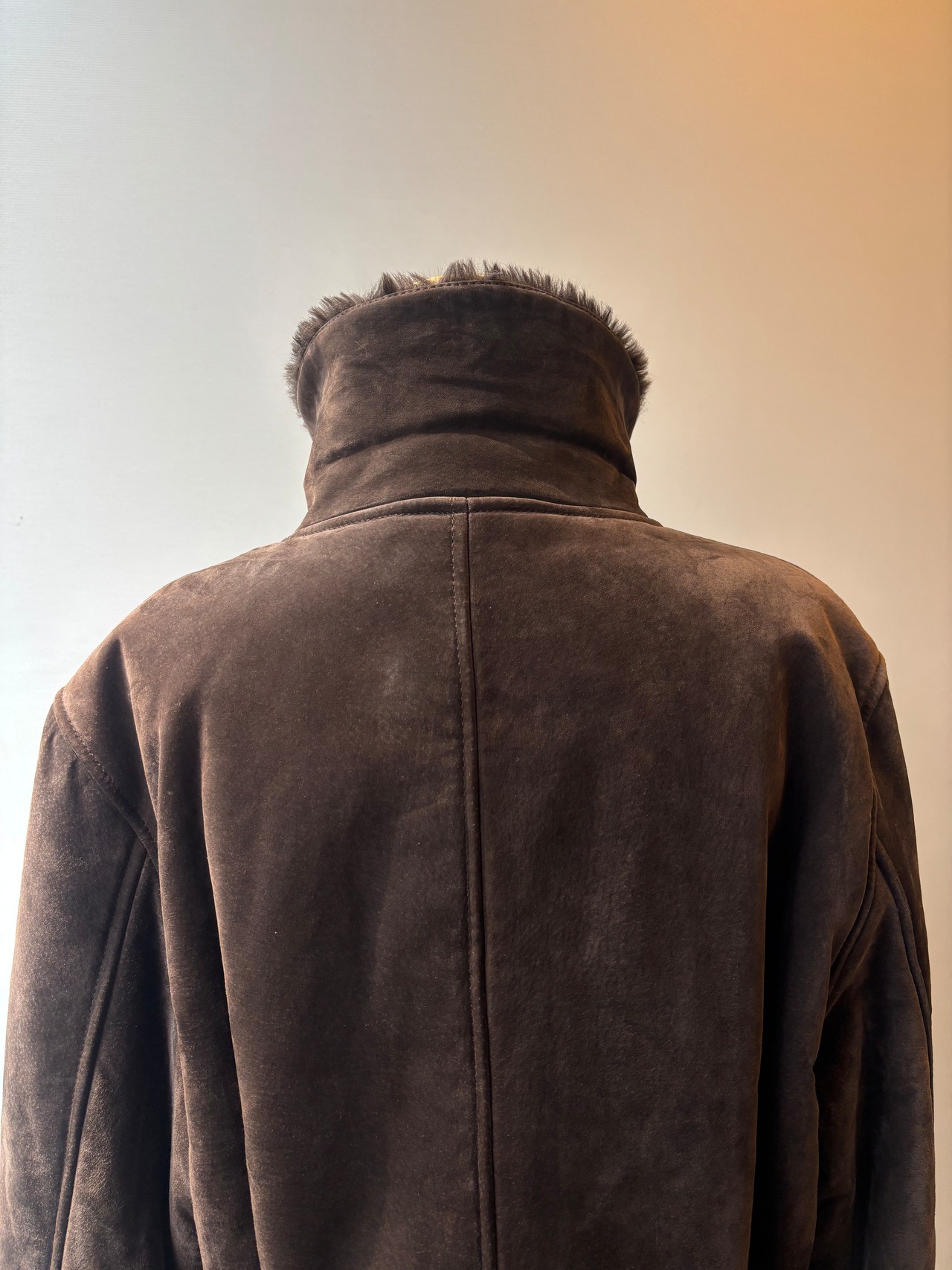 裏地はファー仕様で暖かく、レザーの表情が上品な一着。