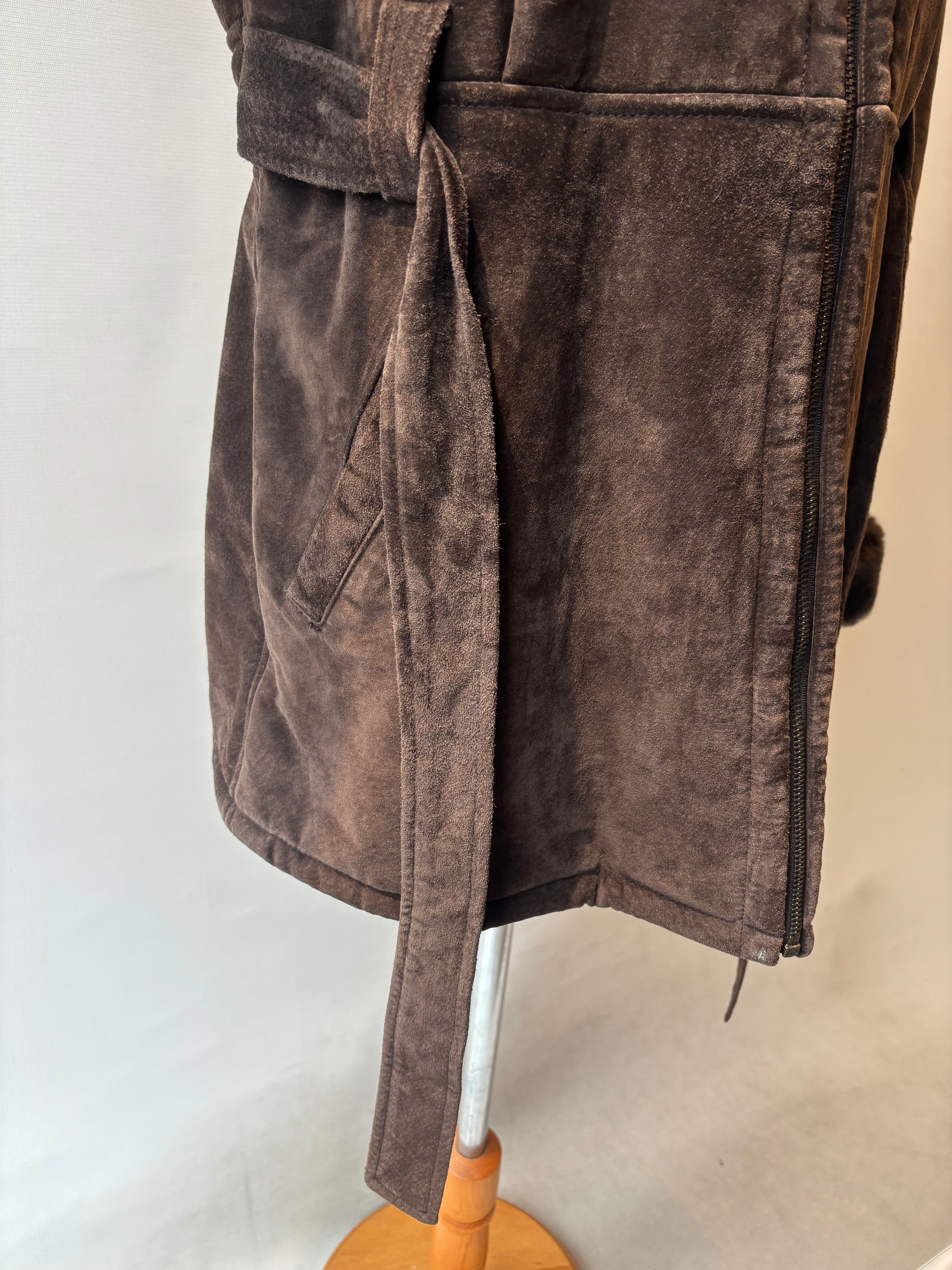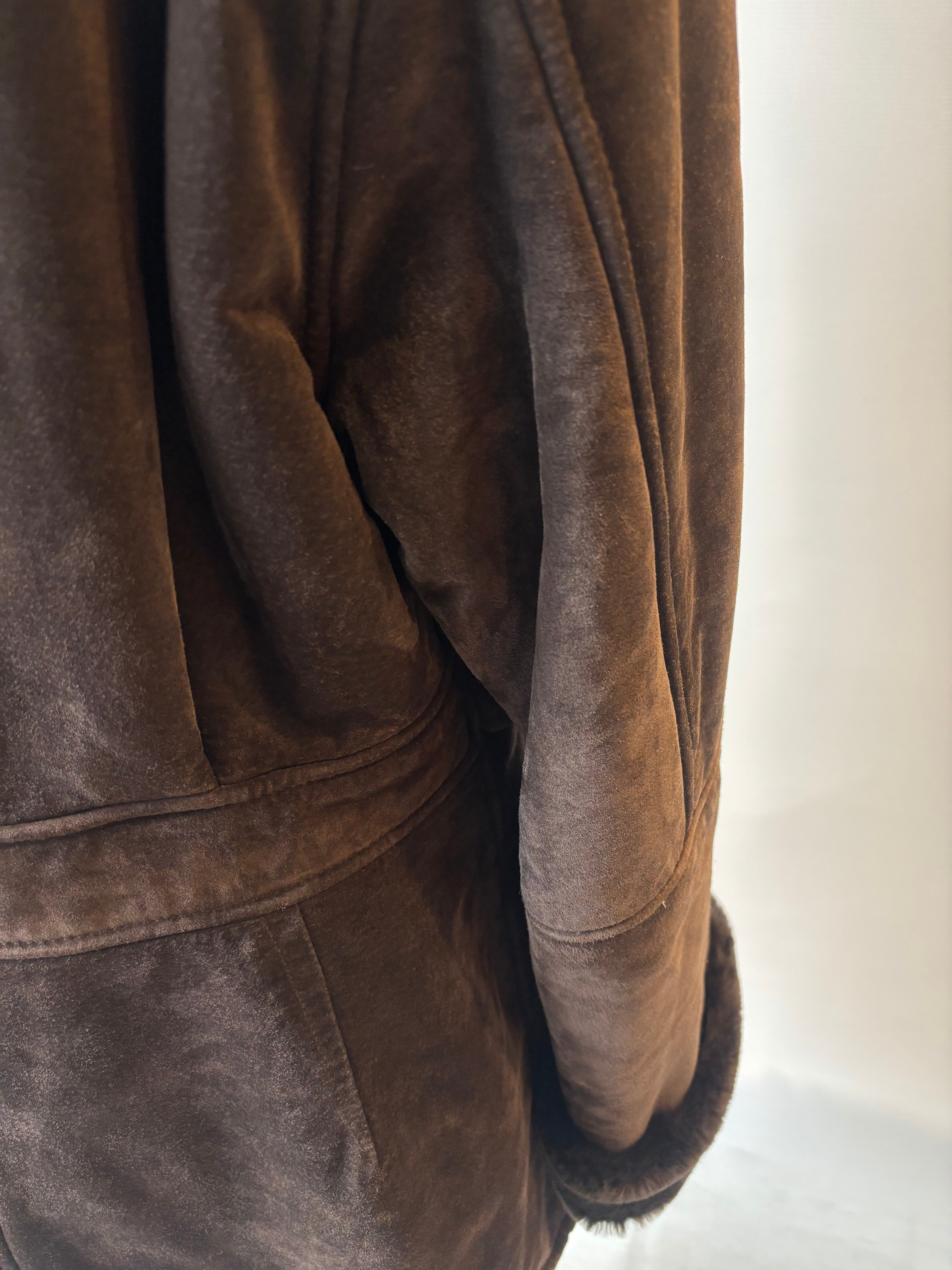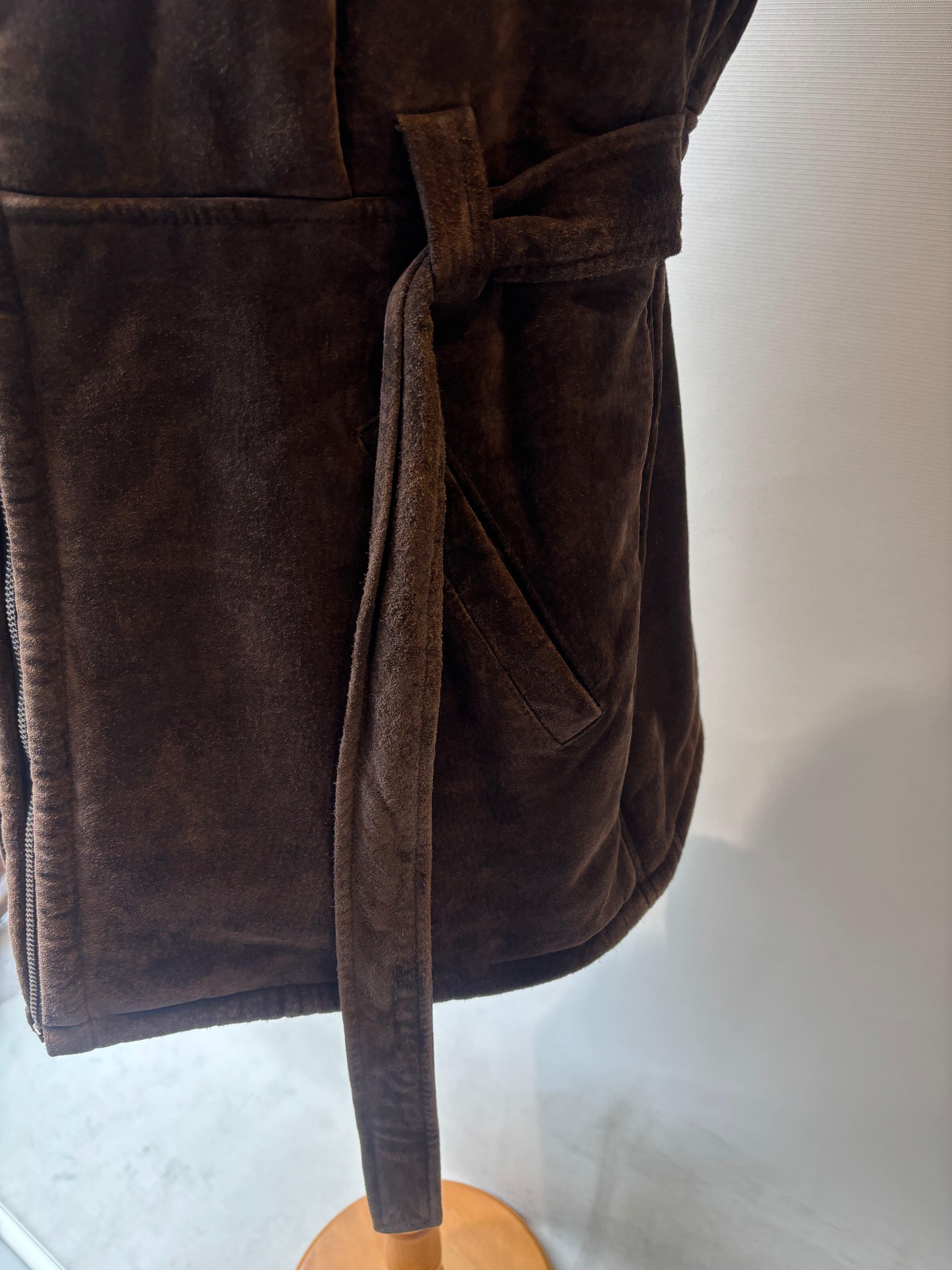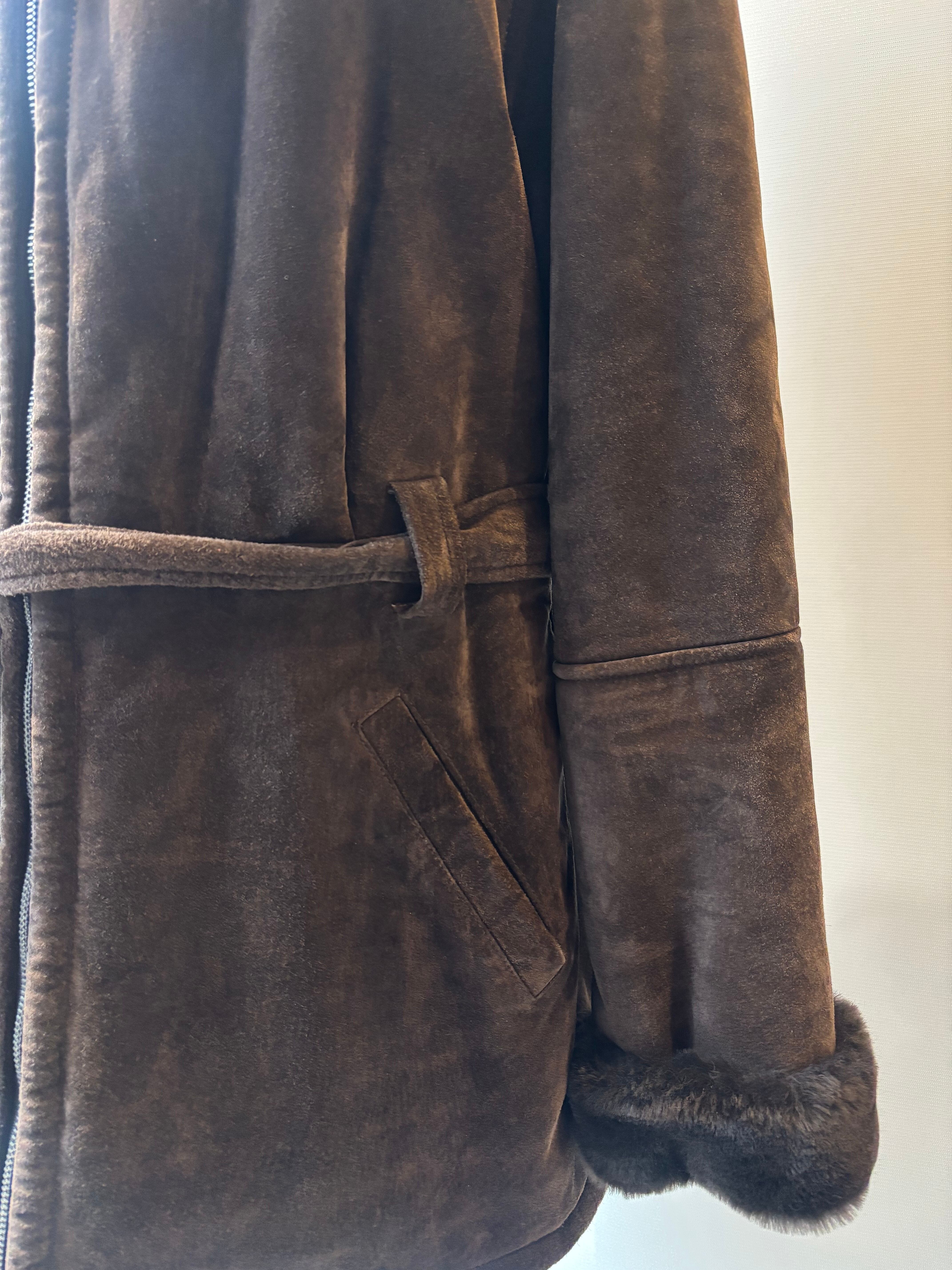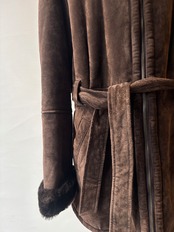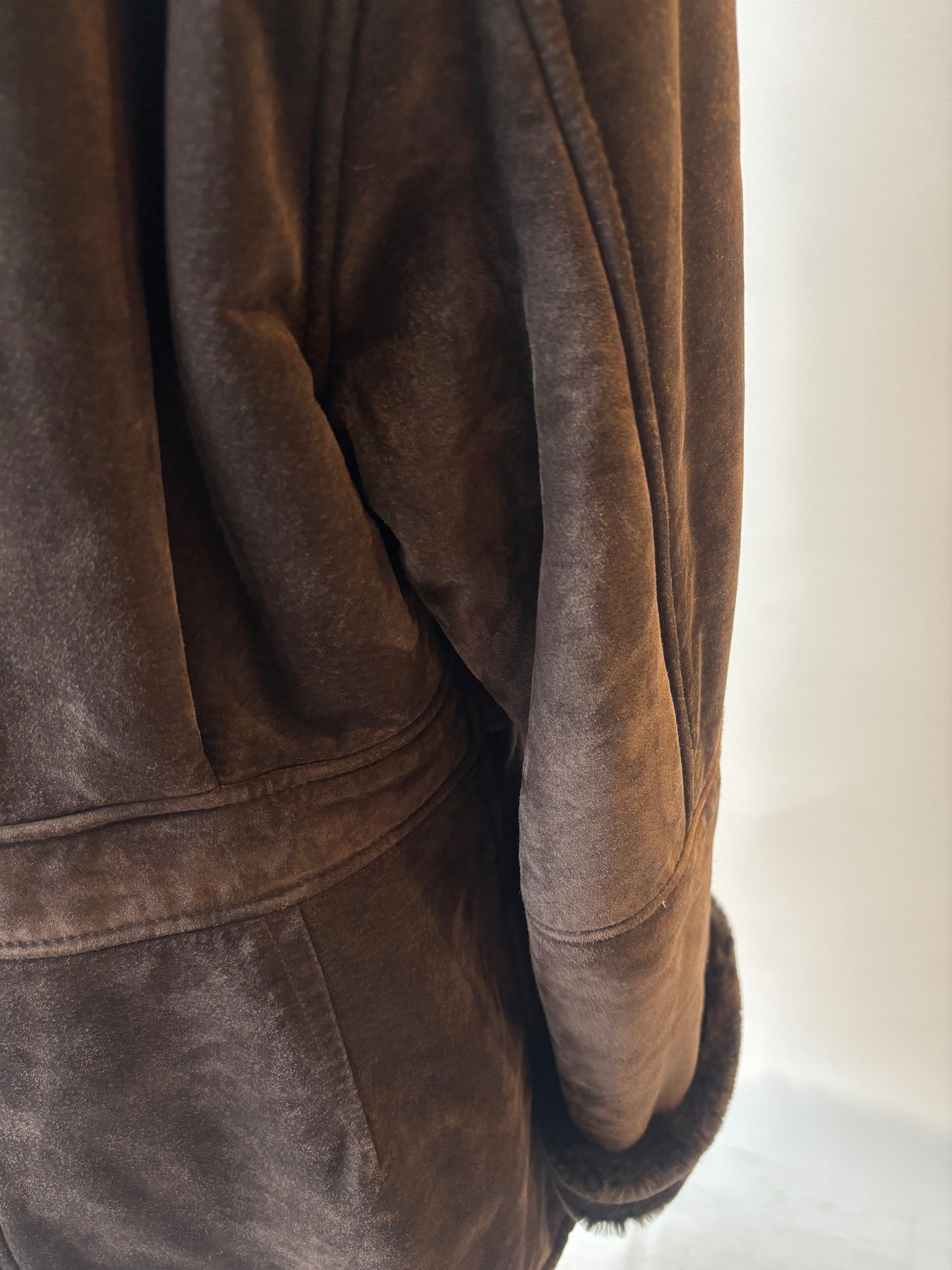 裏地はファー仕様で暖かく、レザーの表情が上品な一着。