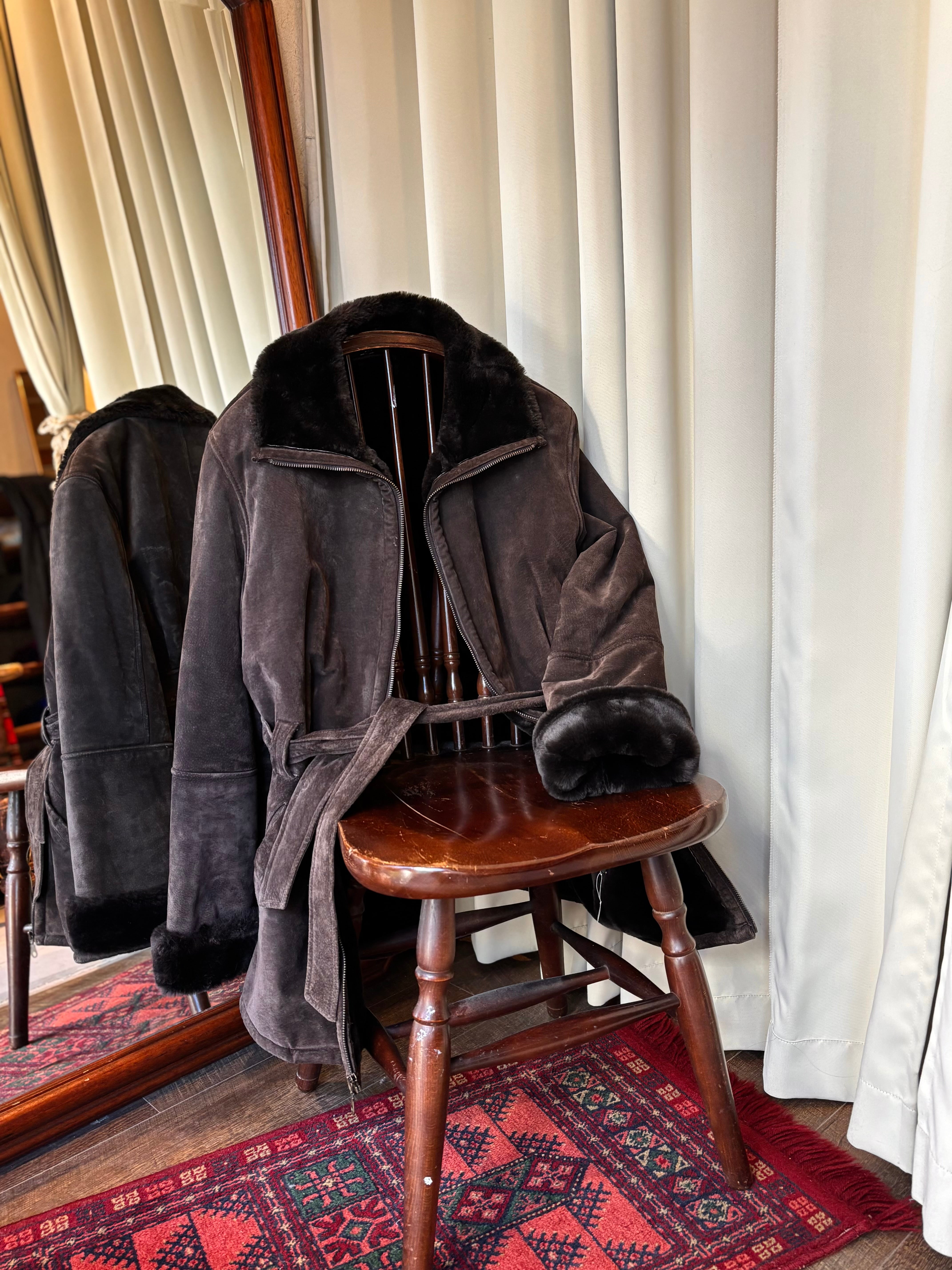 90s leather×boa dark brown coat