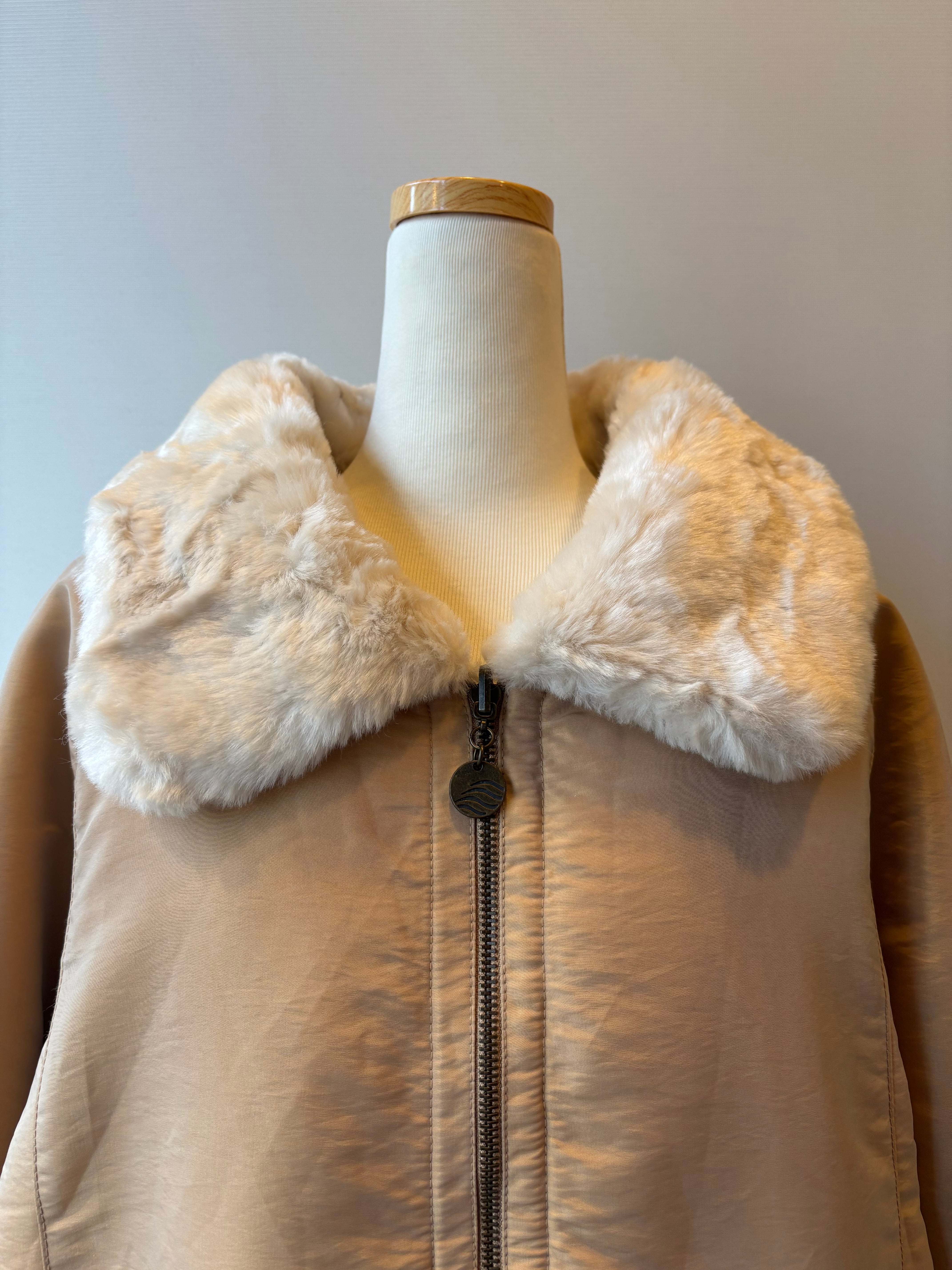 襟付きデザインで、ゴージャスにもカジュアルにも楽しめる一着。軽量なので着やすいアウターかと思います。