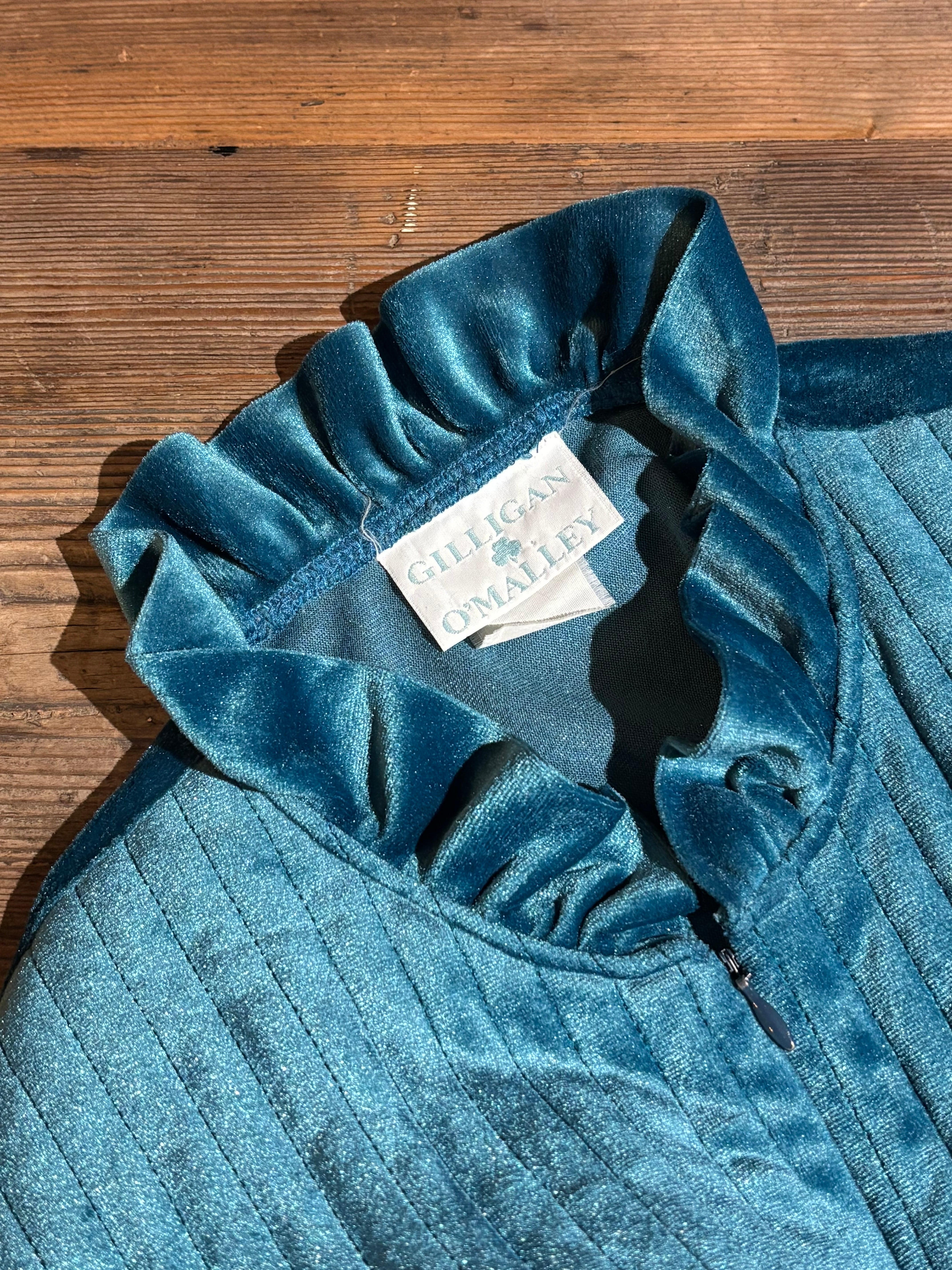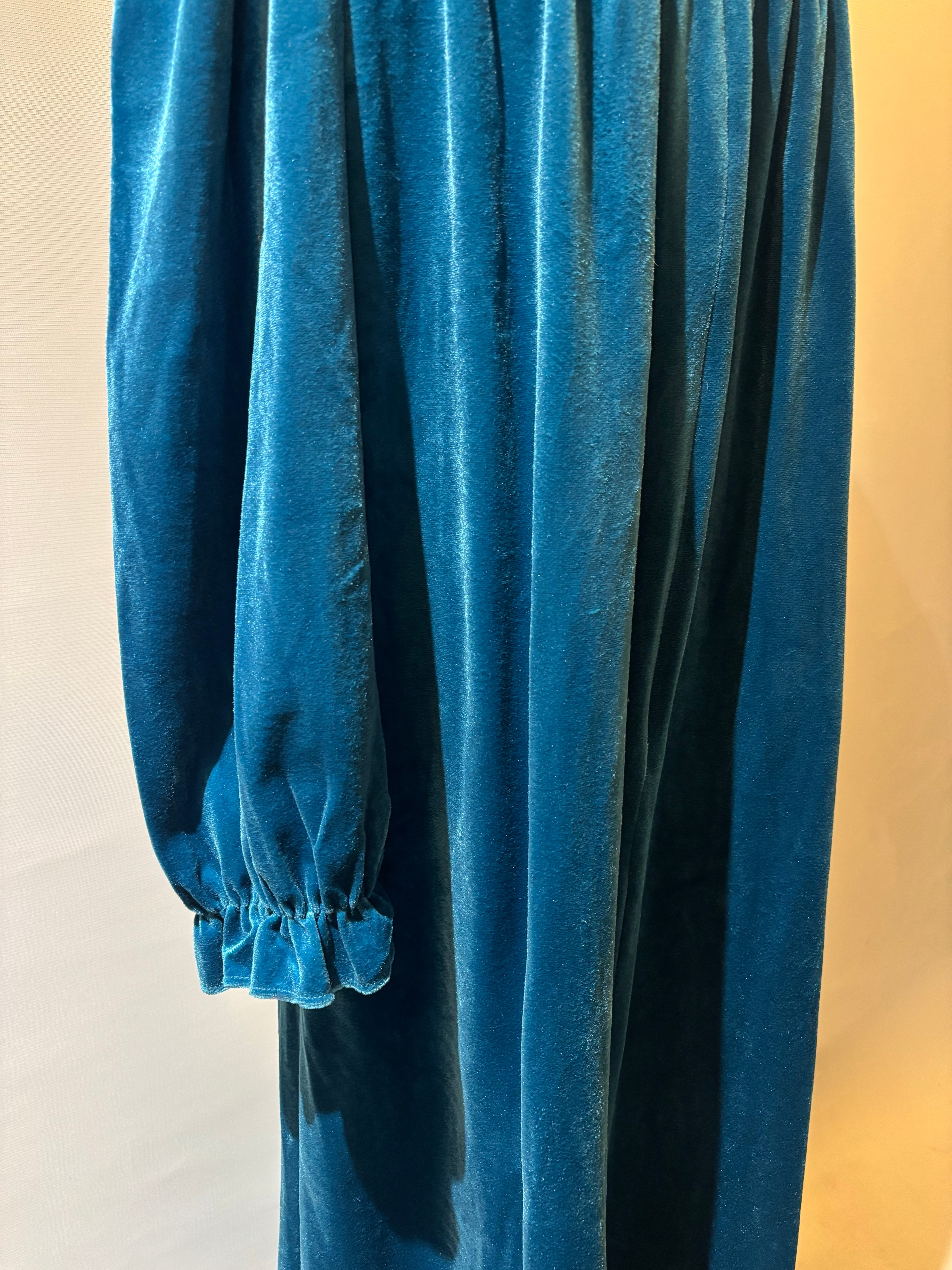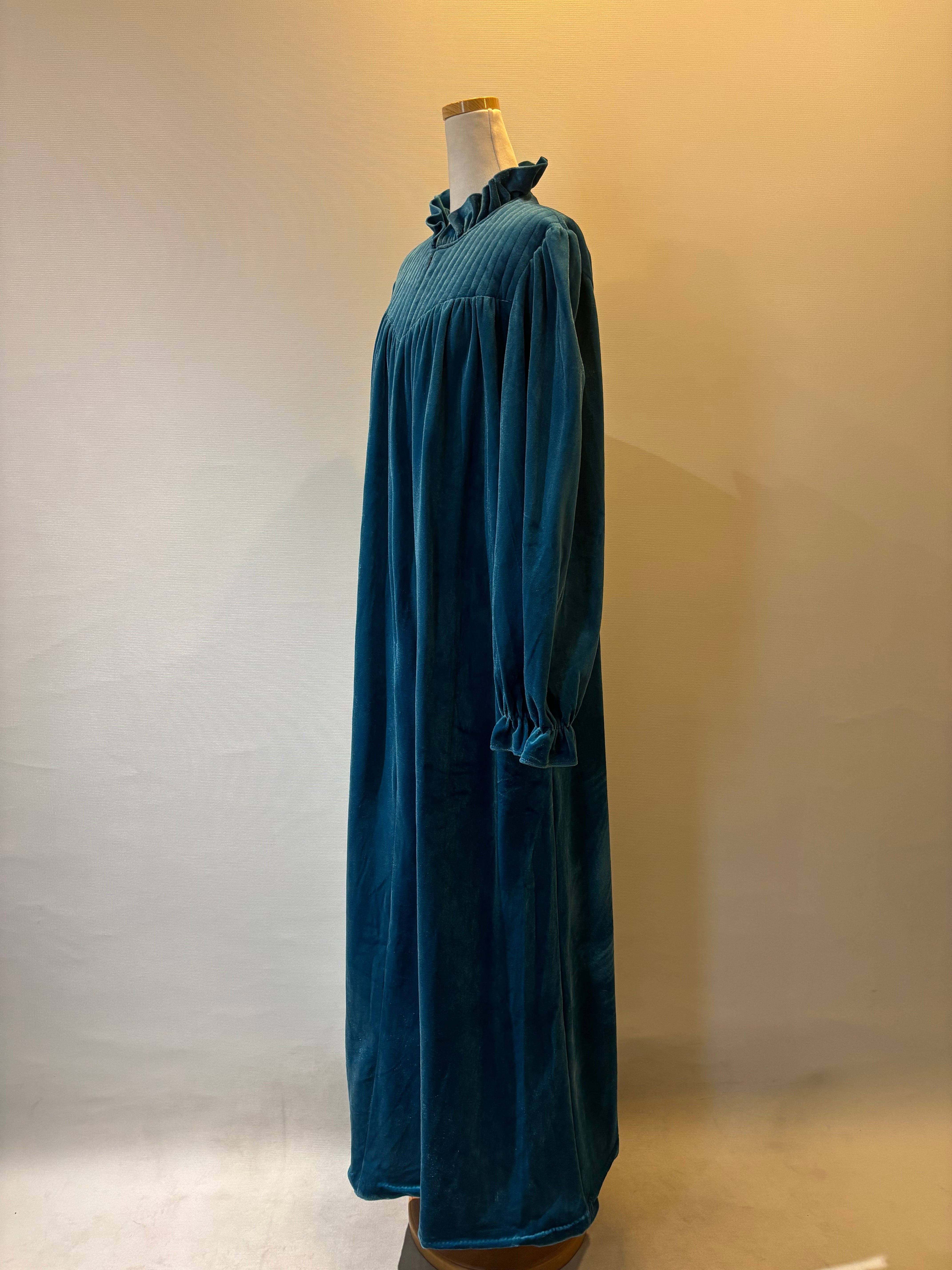 ネックのフレアや胸元・袖のギャザーなど、ディテールにこだわったベロアワンピース。