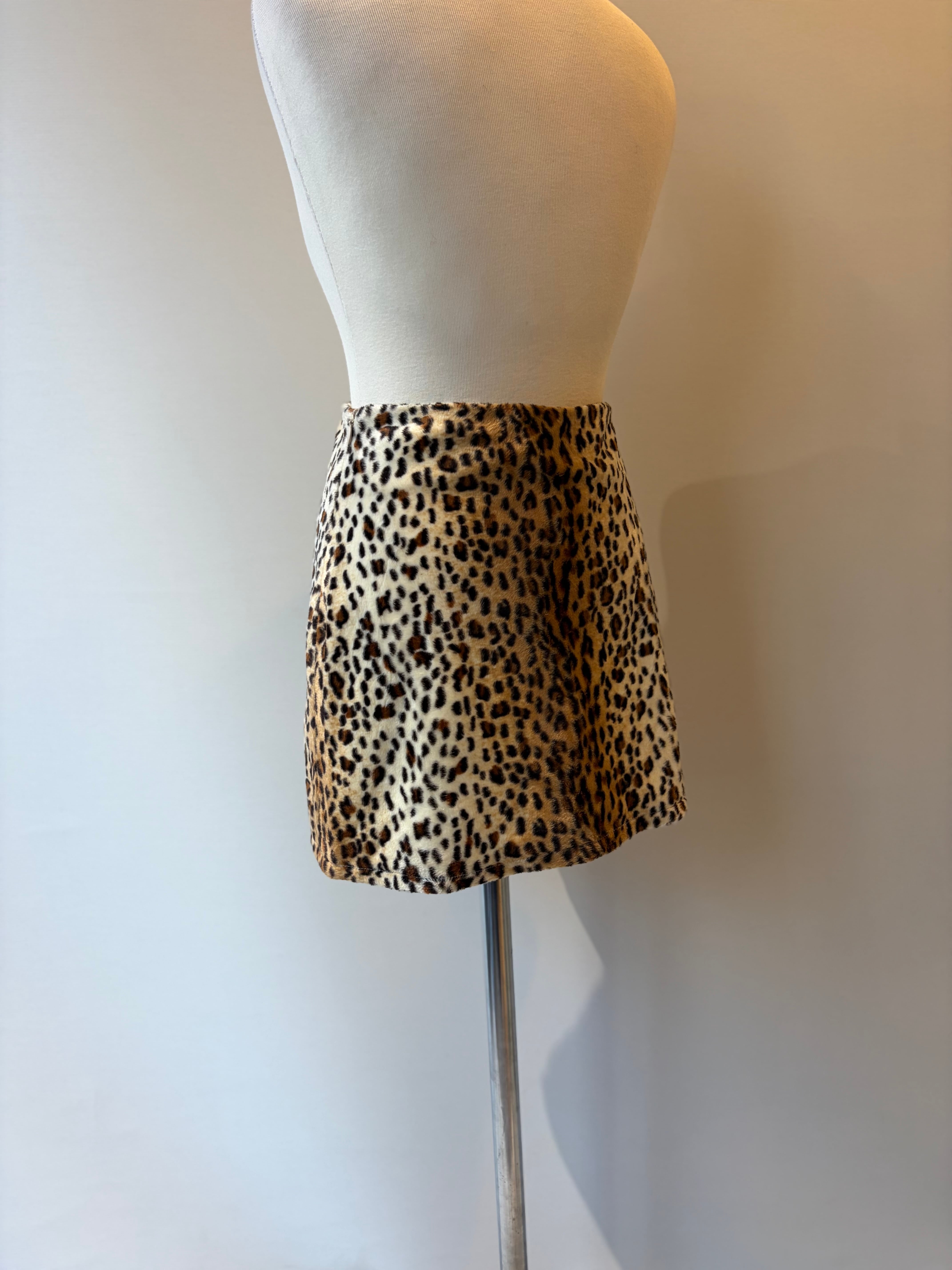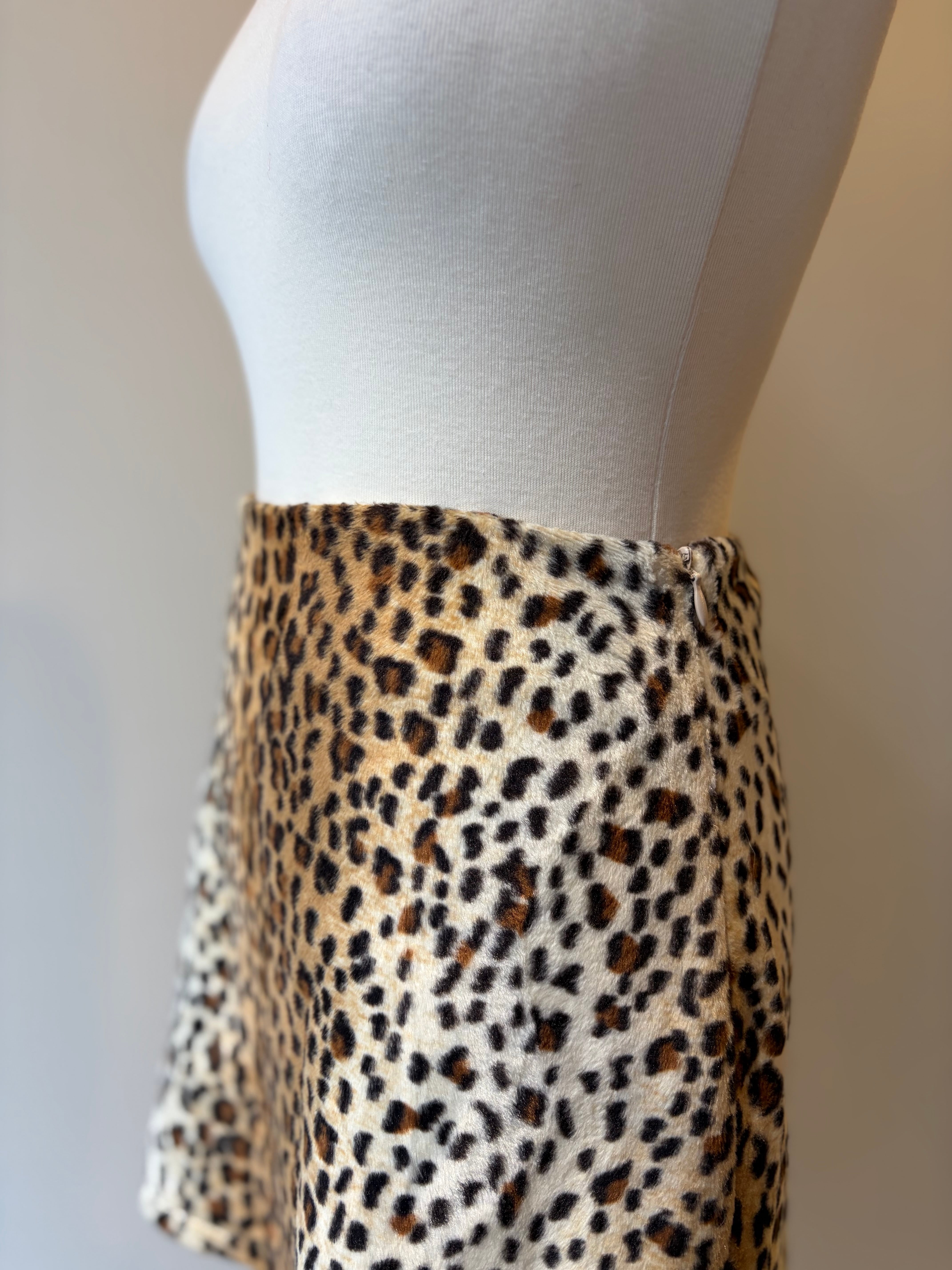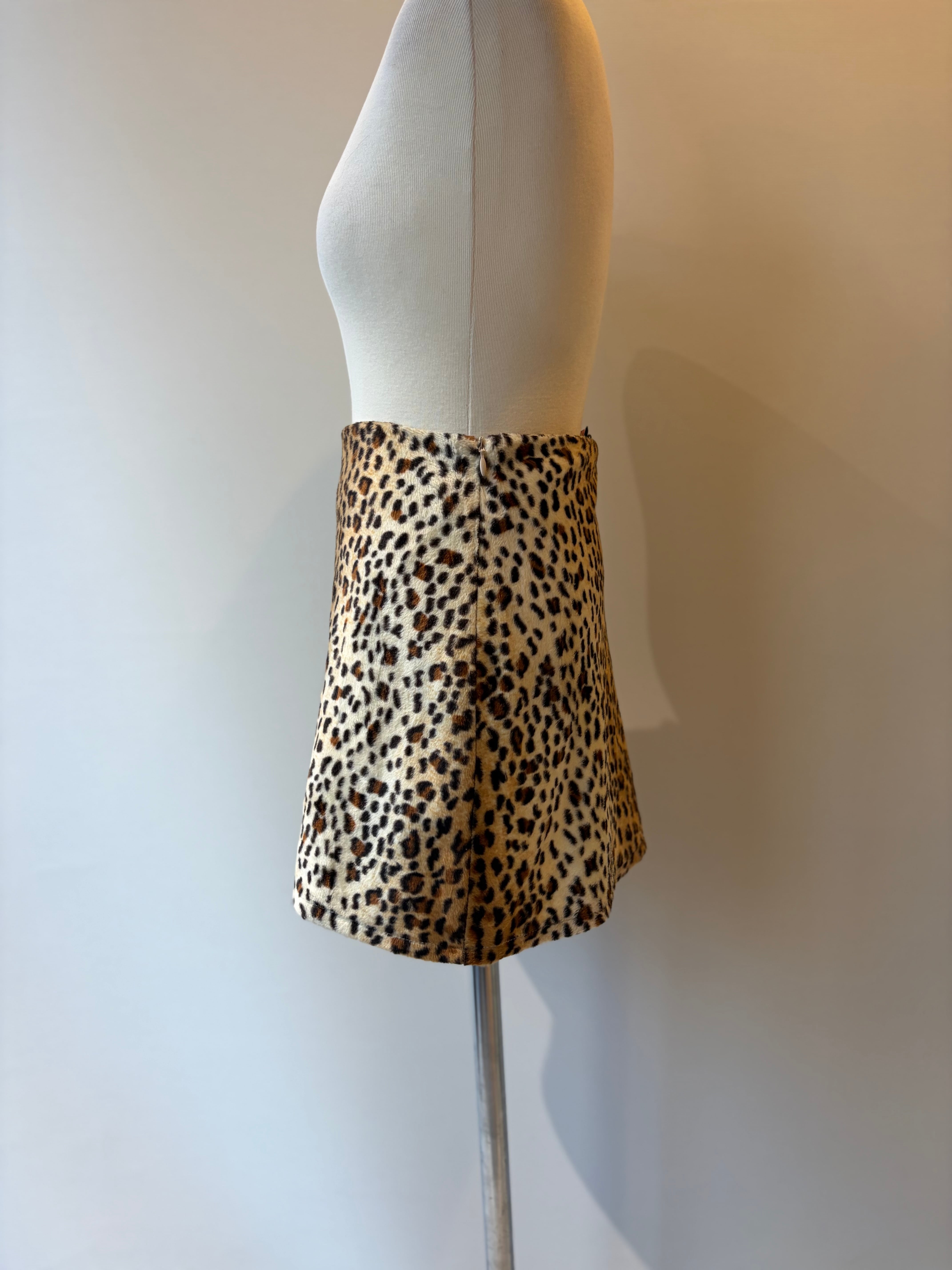 90s leopard fake fur mini skirt