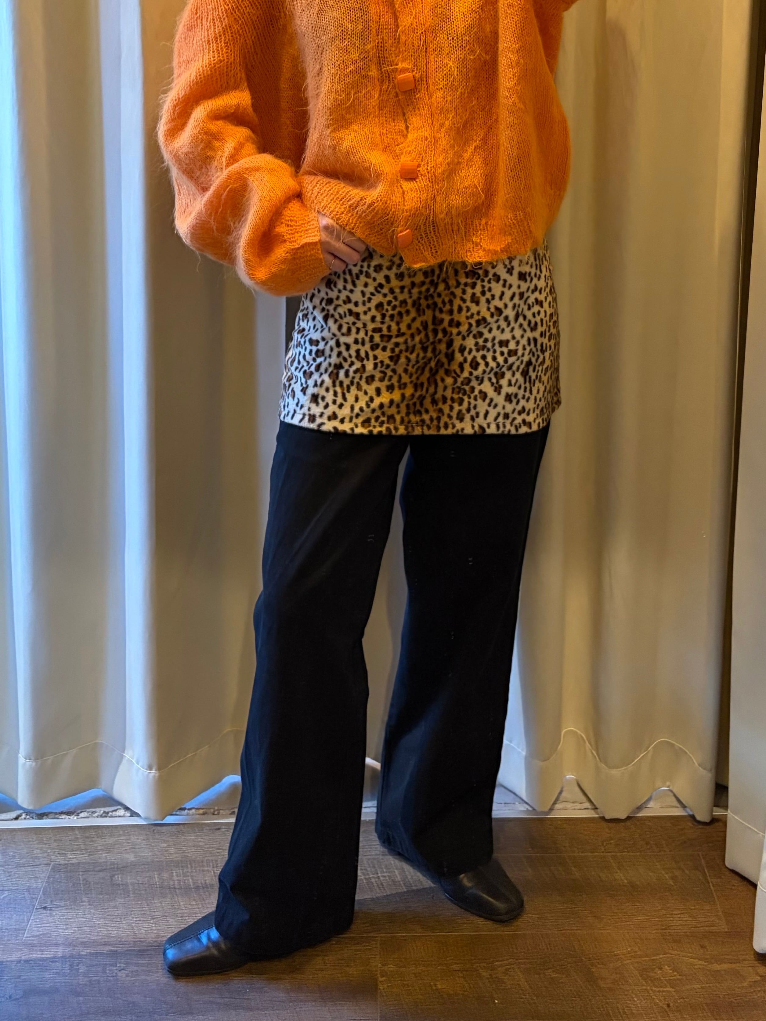 leopard柄のミニスカート。