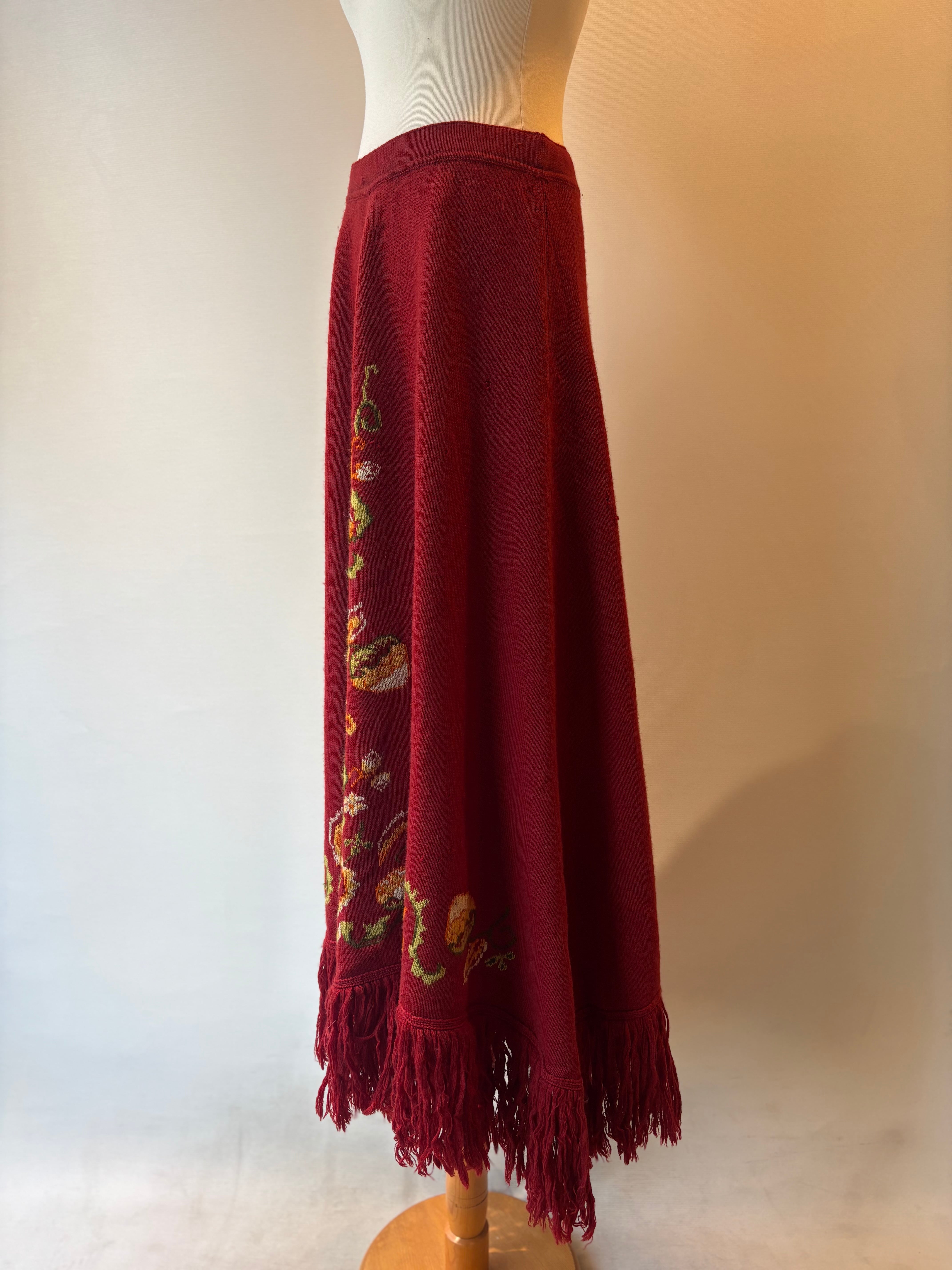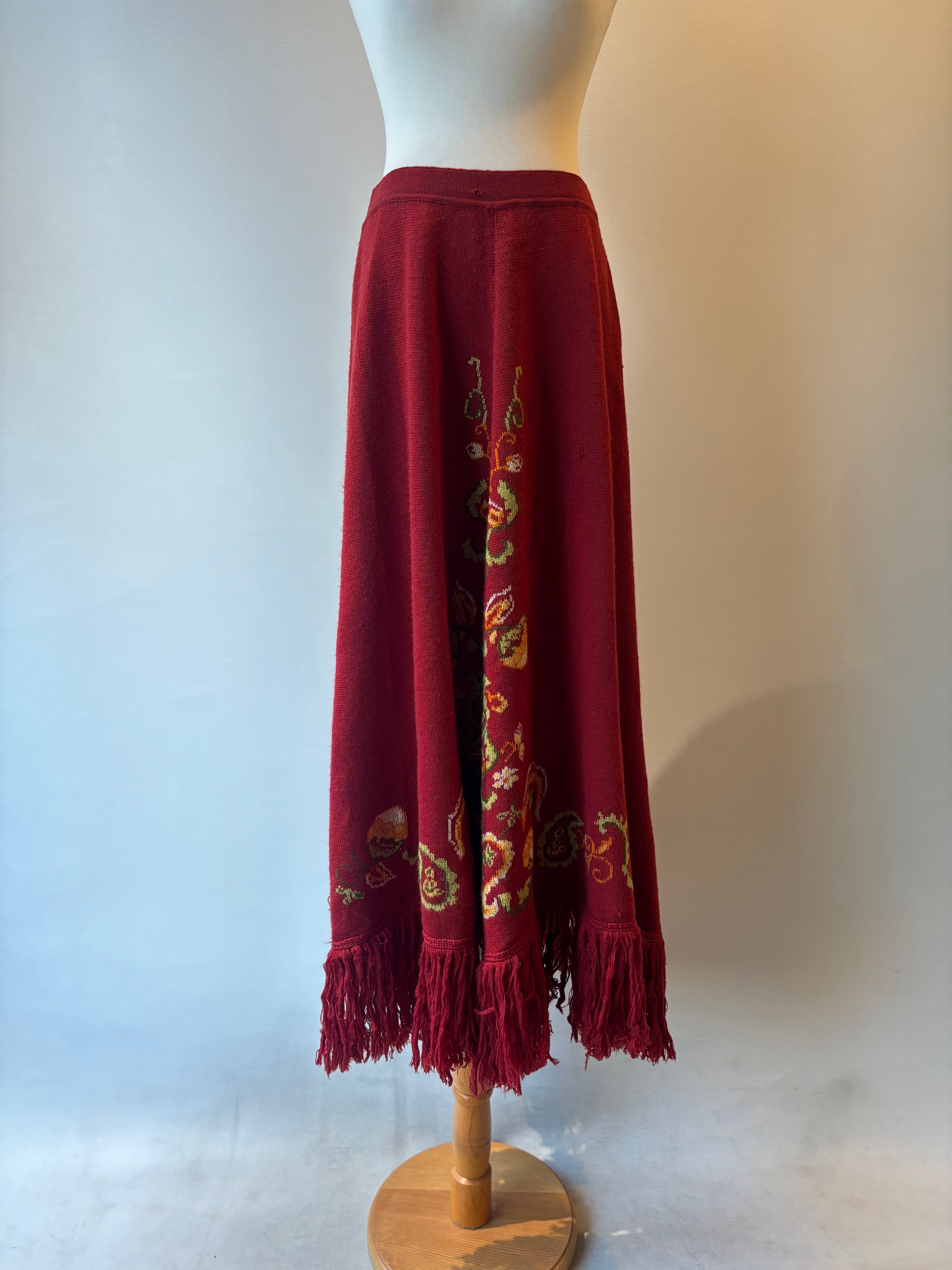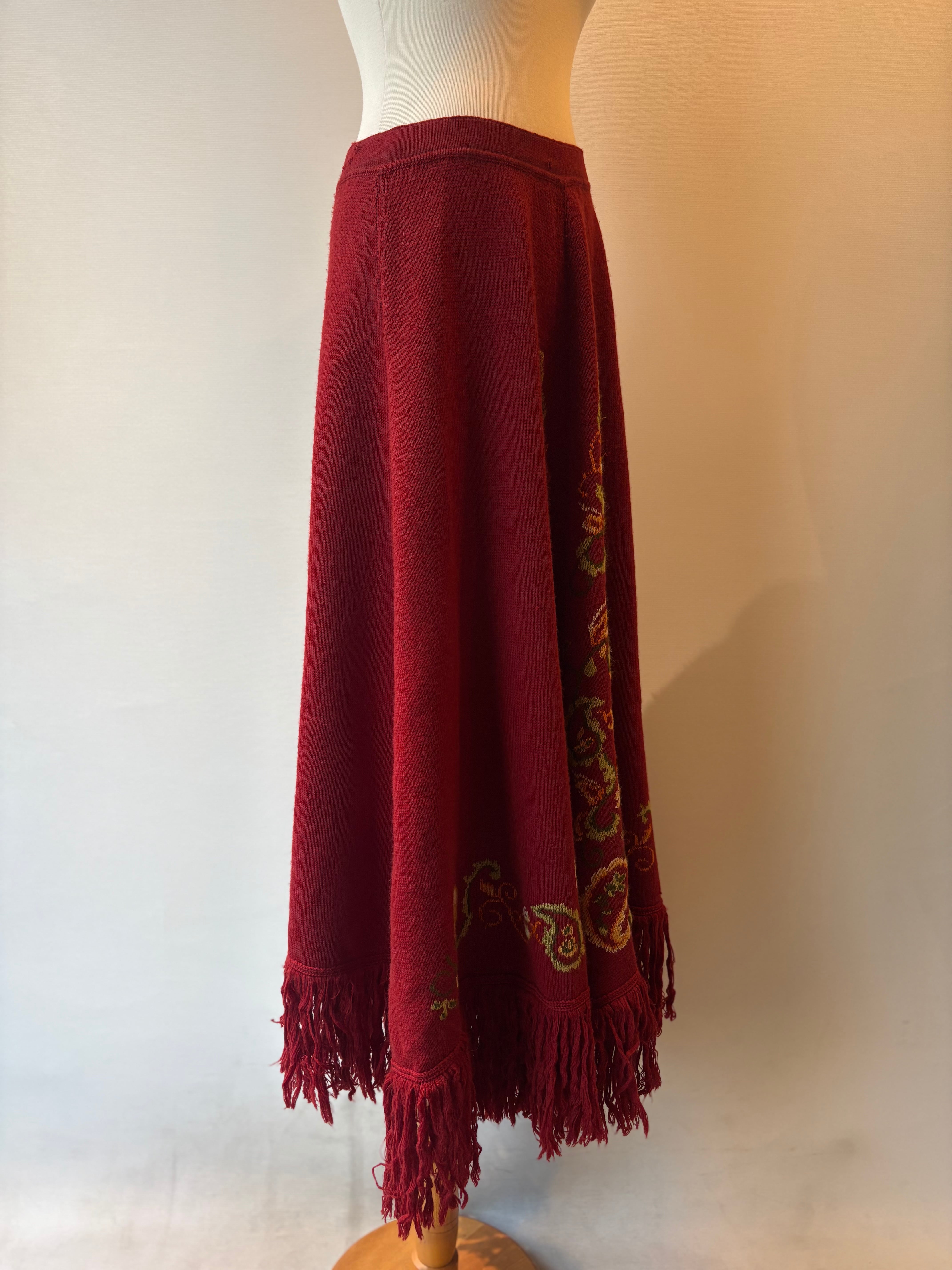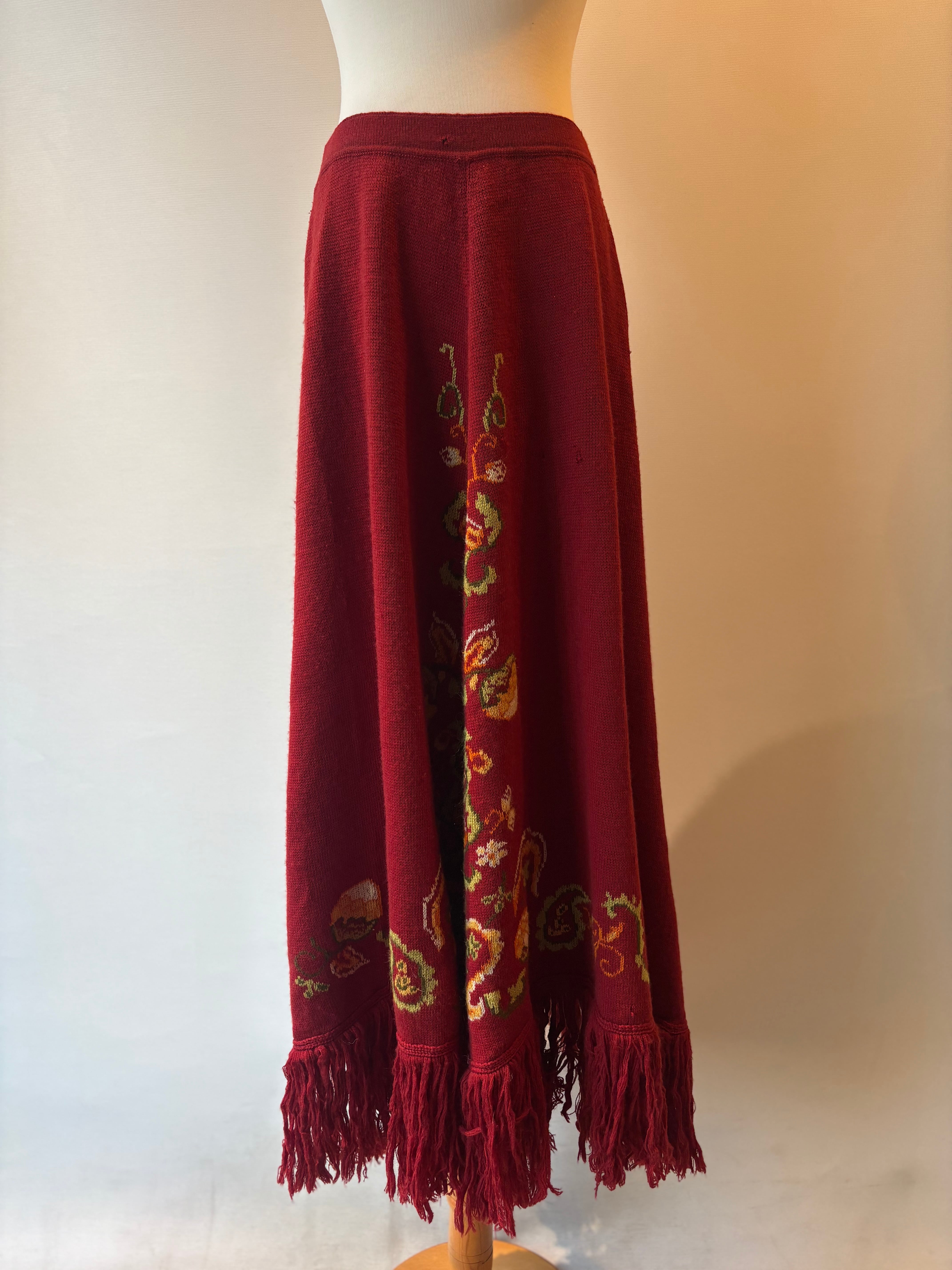 タペストリー柄が存在感のある、Aラインのニットスカート。