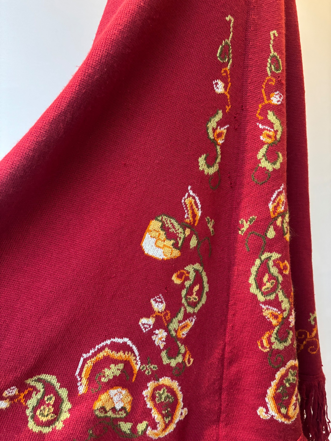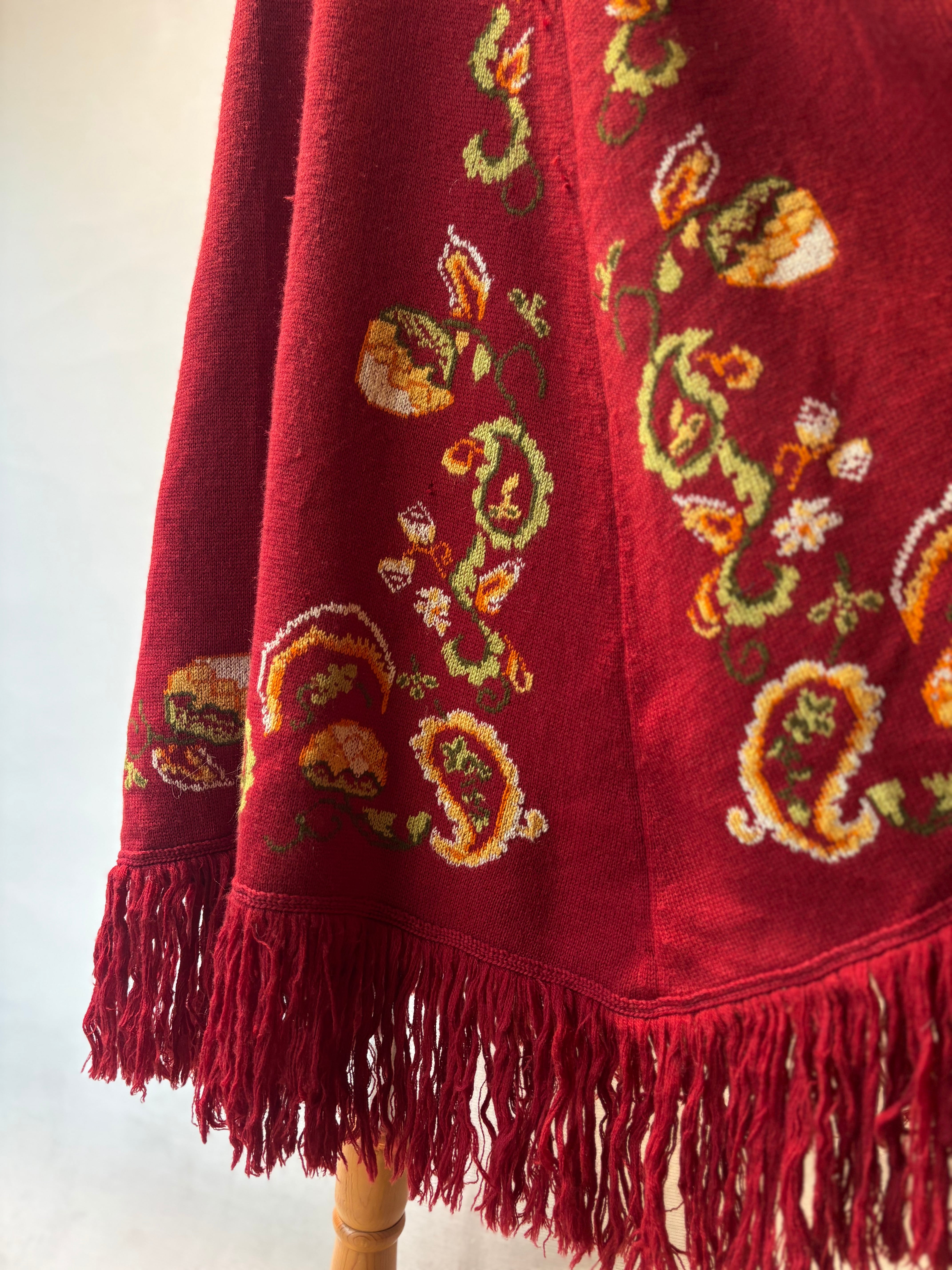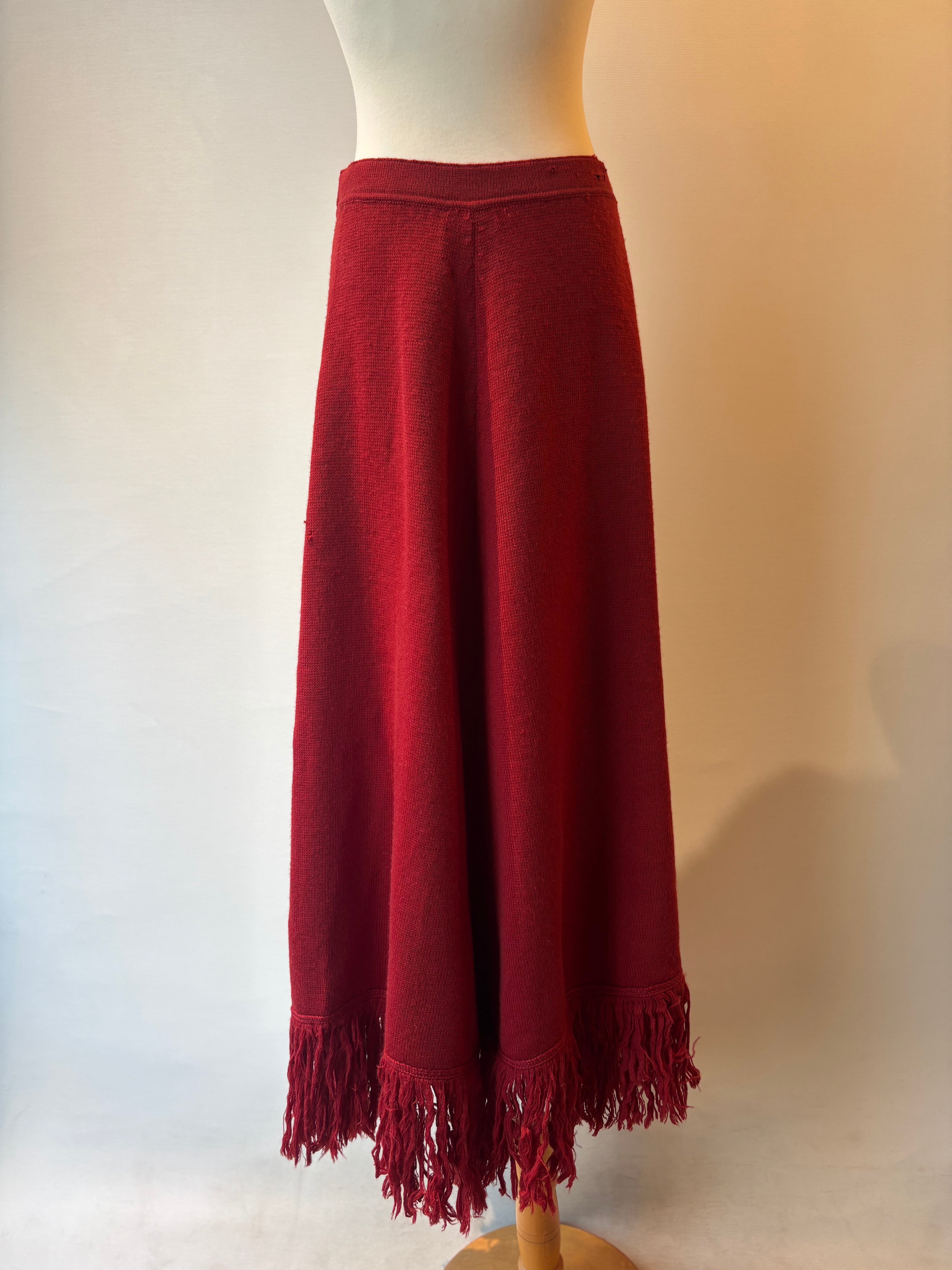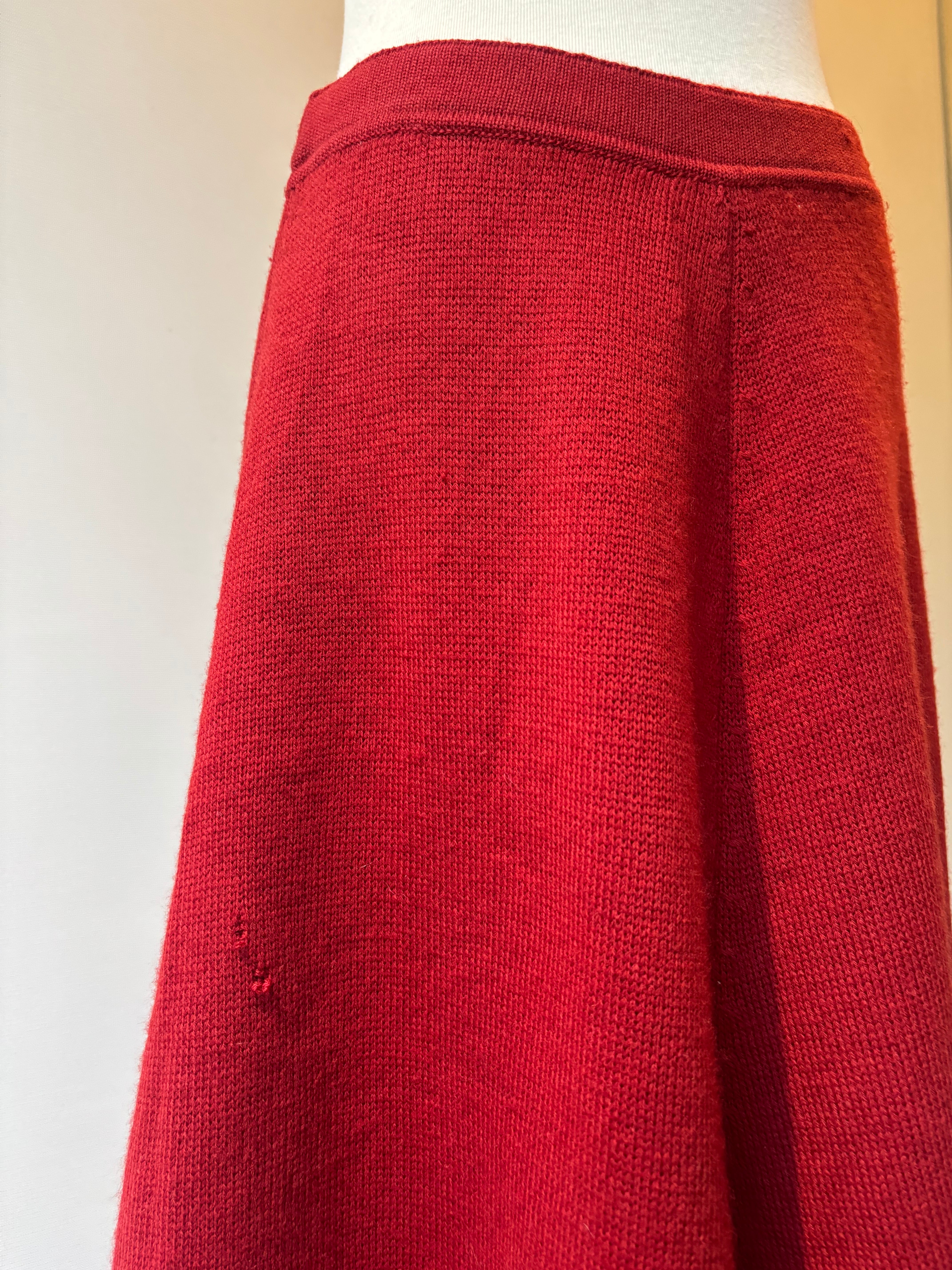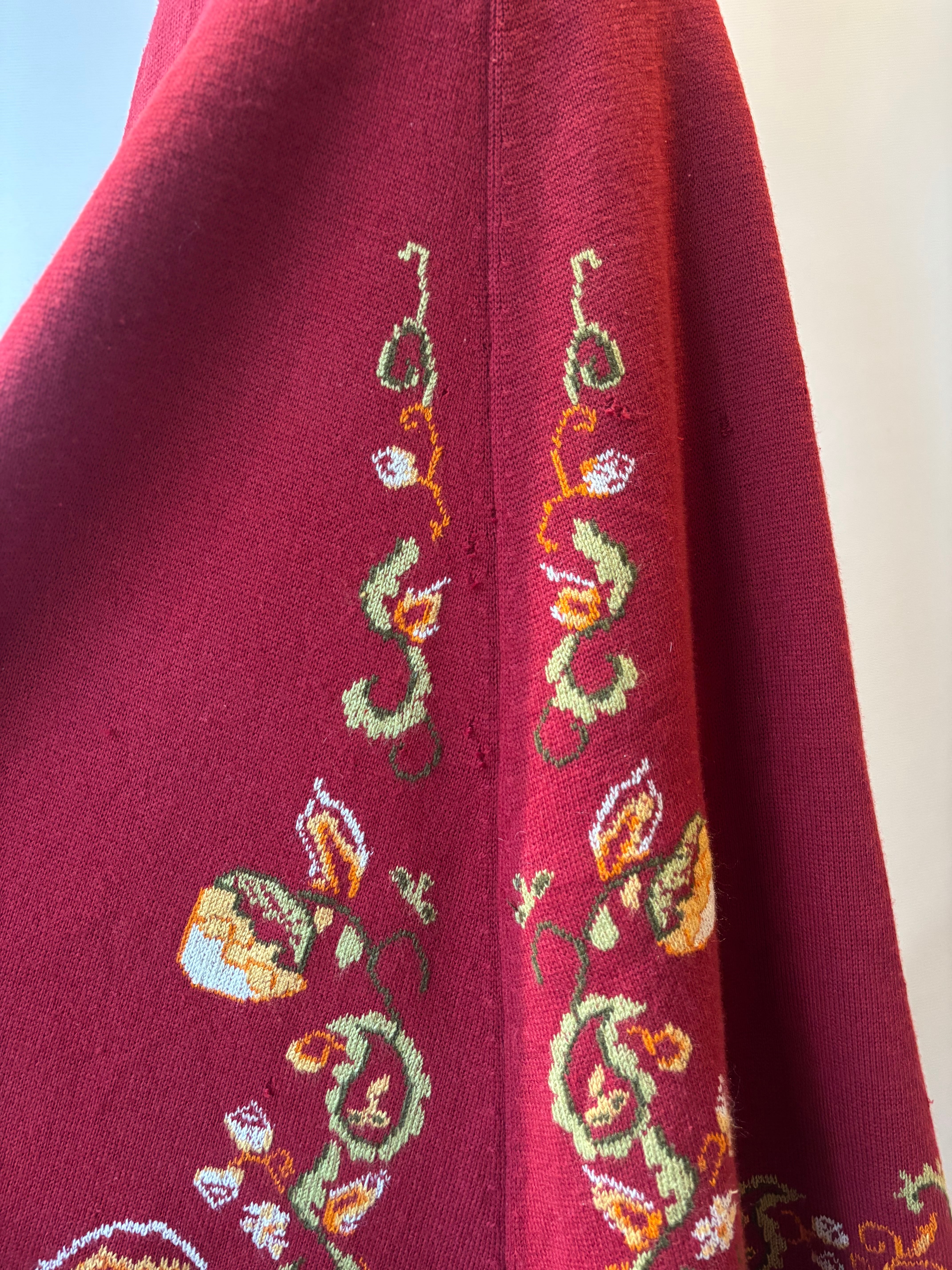 タペストリー柄が存在感のある、Aラインのニットスカート。