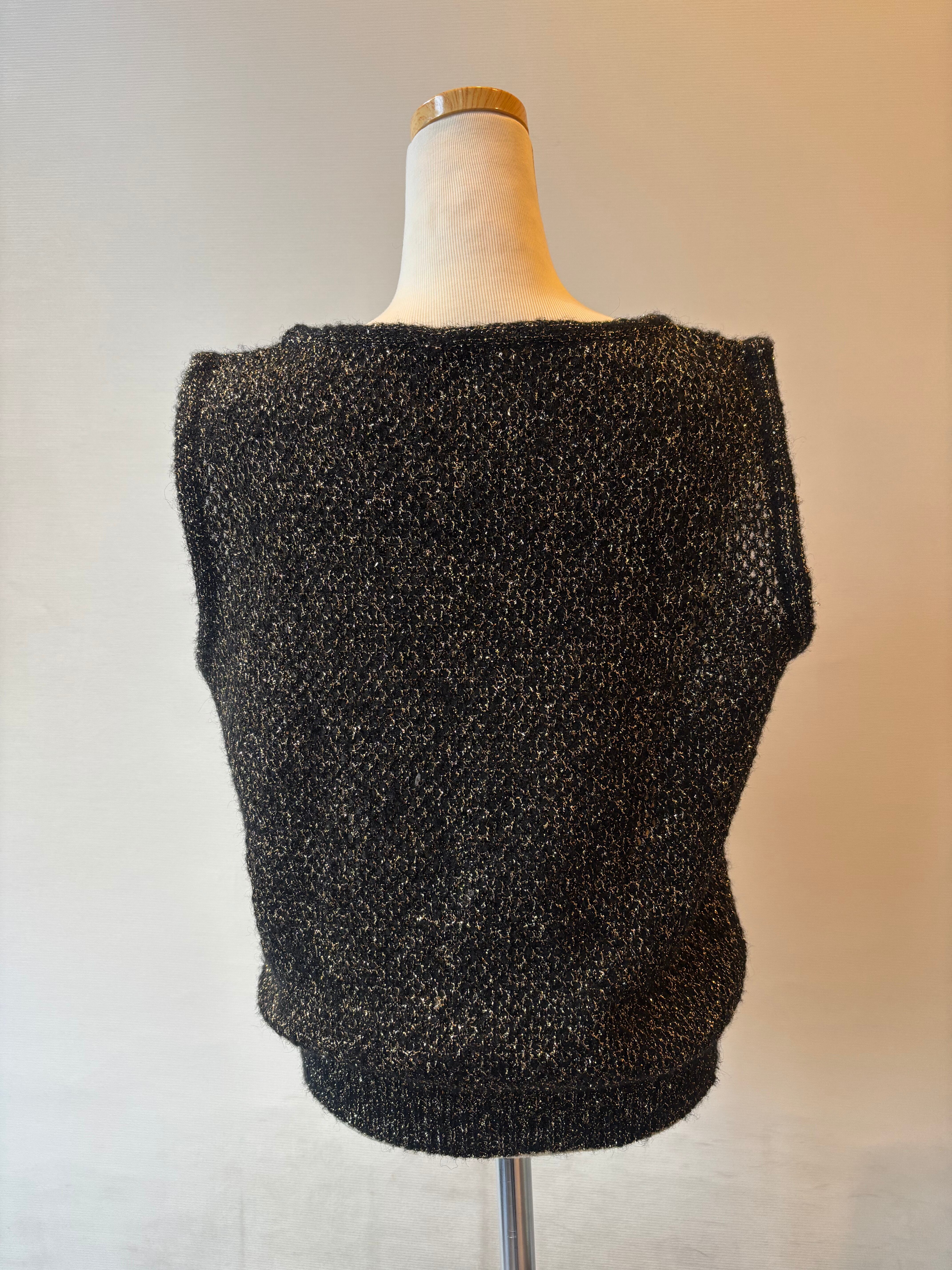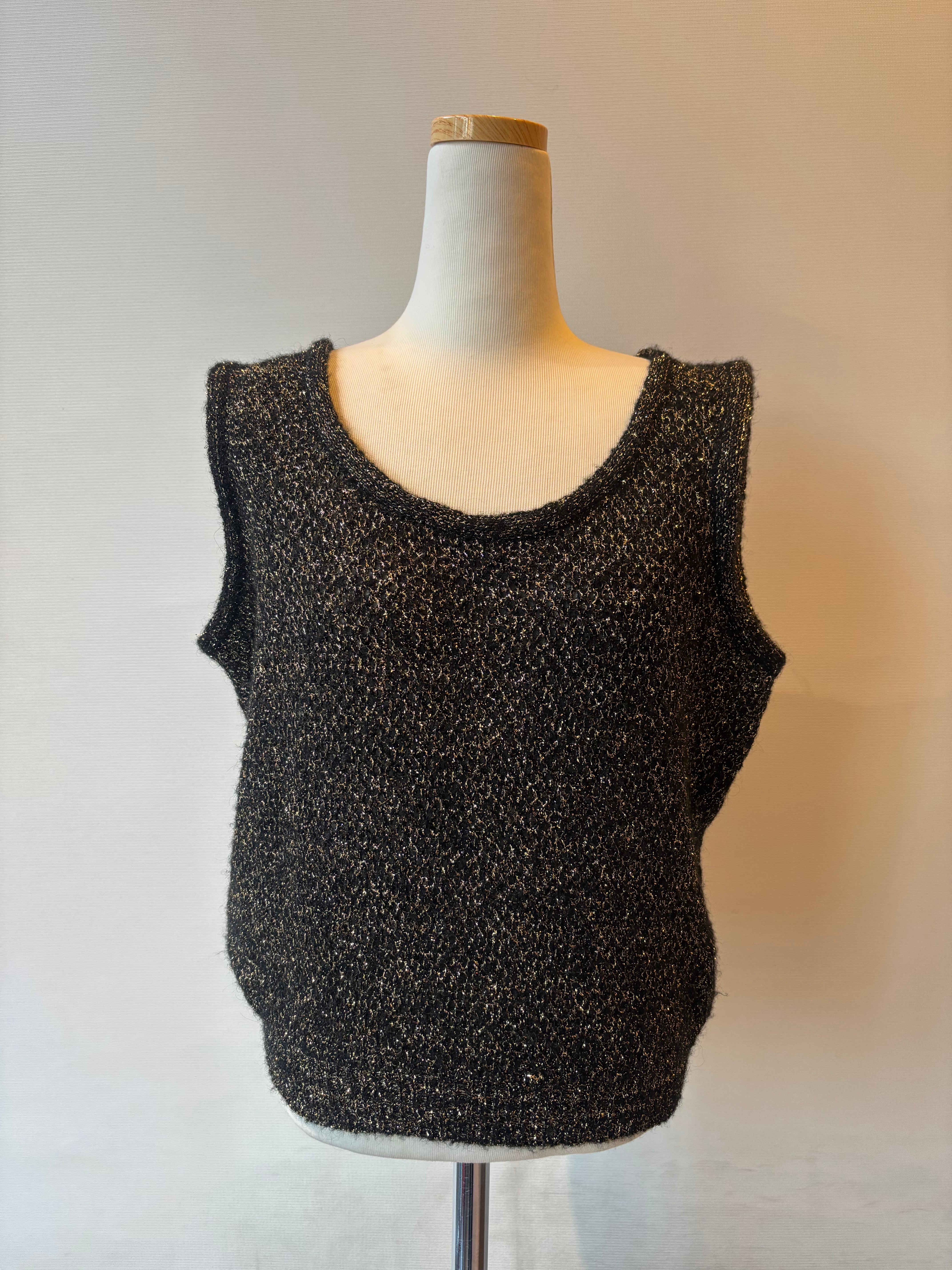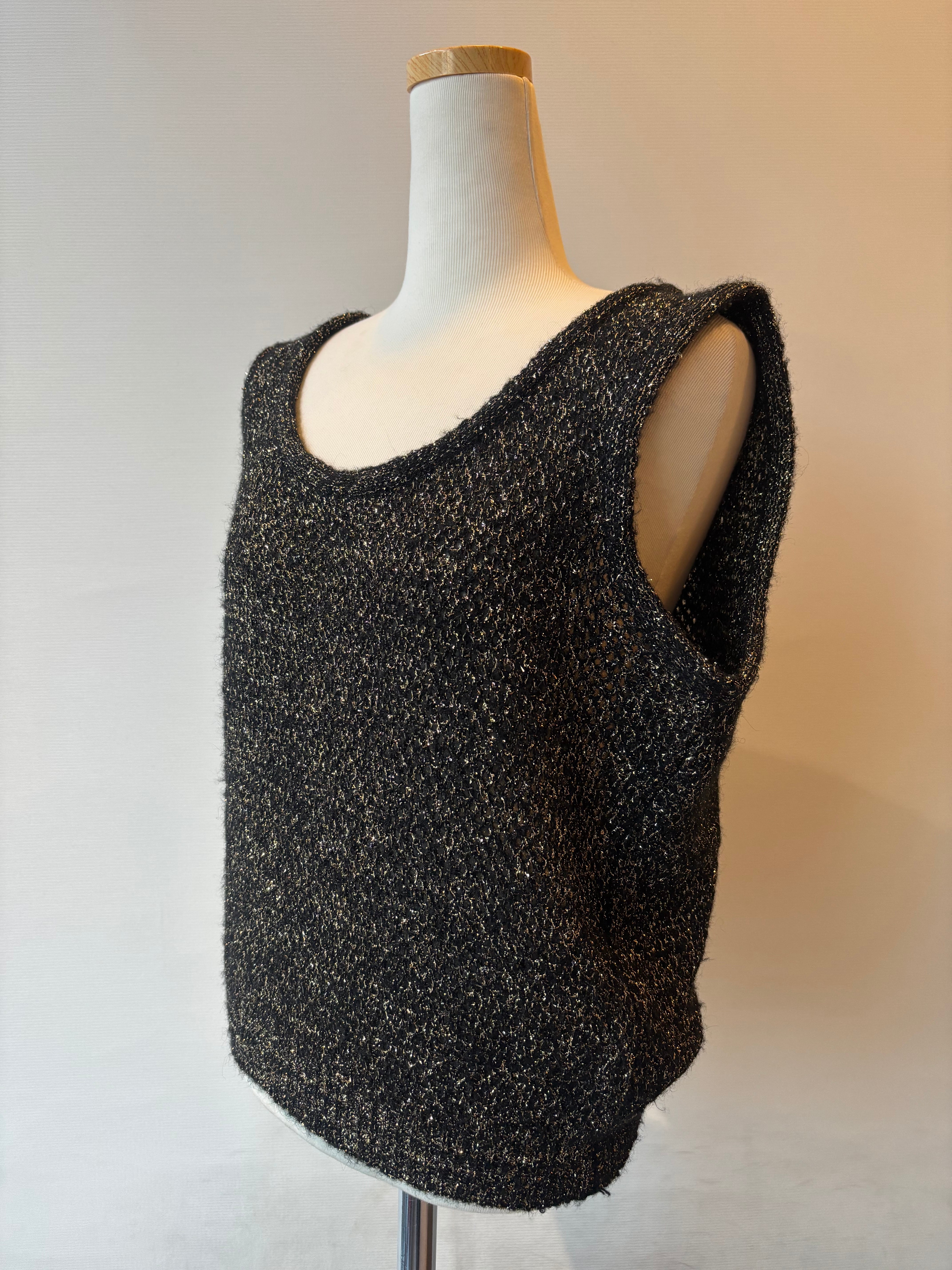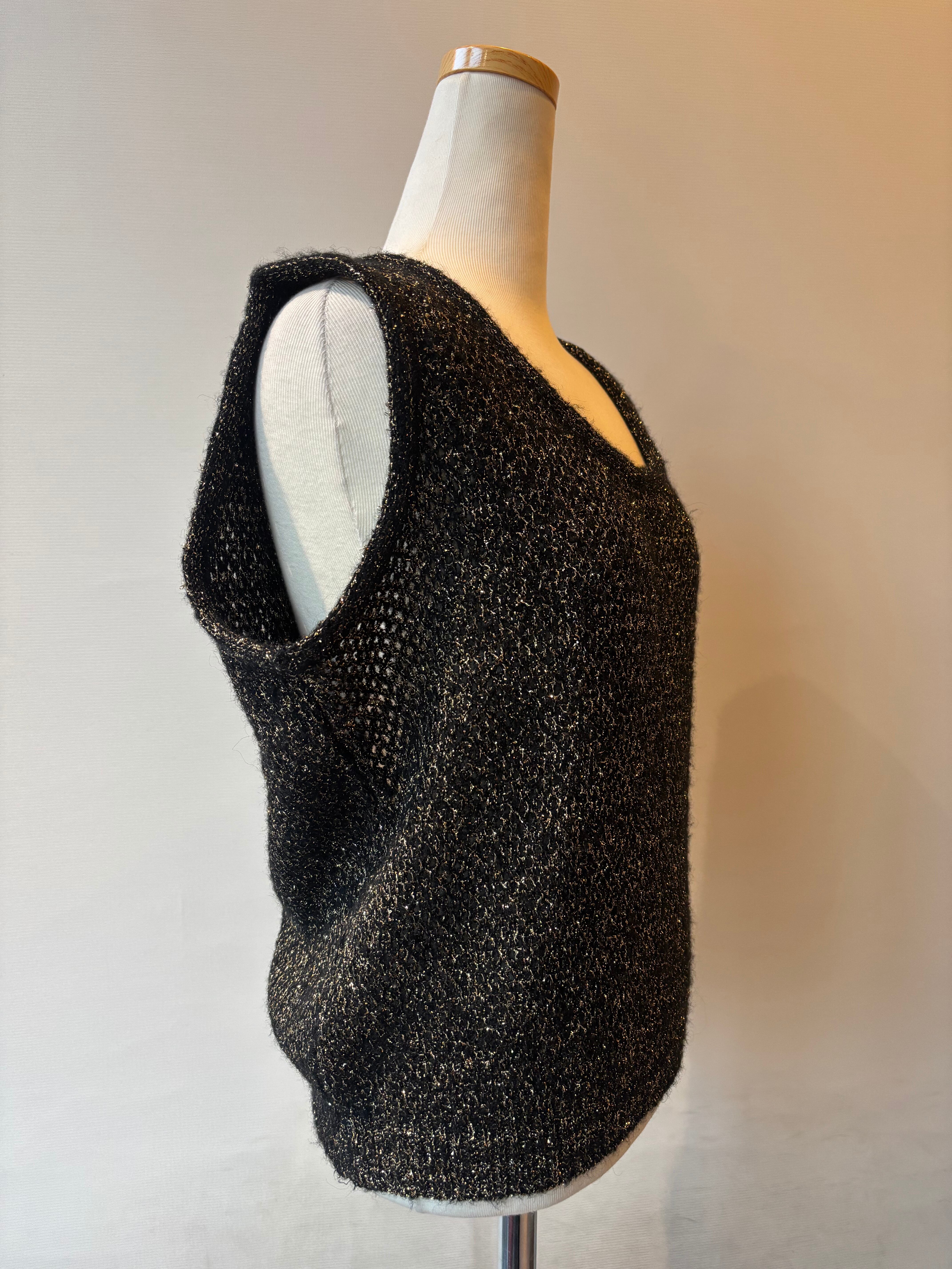 ゴールドラメがキラキラと輝くブラックベースのニットベスト。